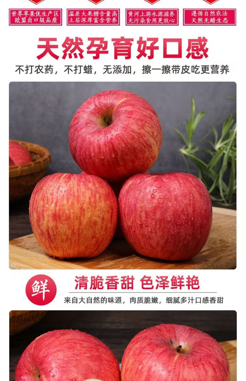 享佳恬山西红富士苹果25年当季水果生鲜脆甜新鲜时令平安果产地直发整箱 8.5斤【单果65mm+】