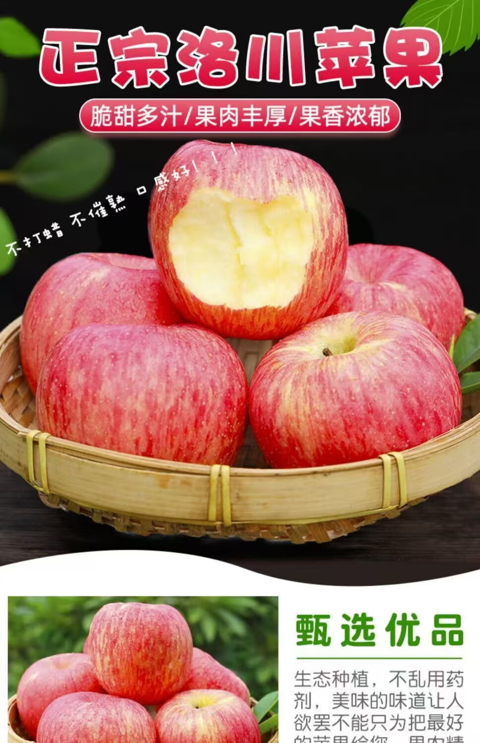 【现摘】正宗洛川苹果当季新鲜水果孕妇脆甜红富士苹果冰糖心水果 膜袋富士70mm+带箱9斤