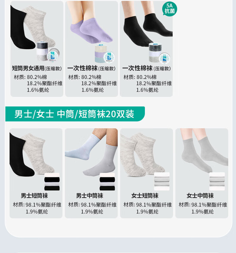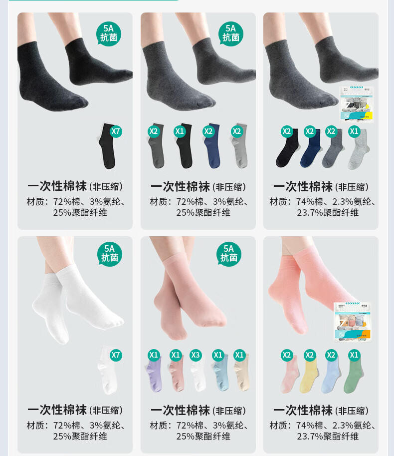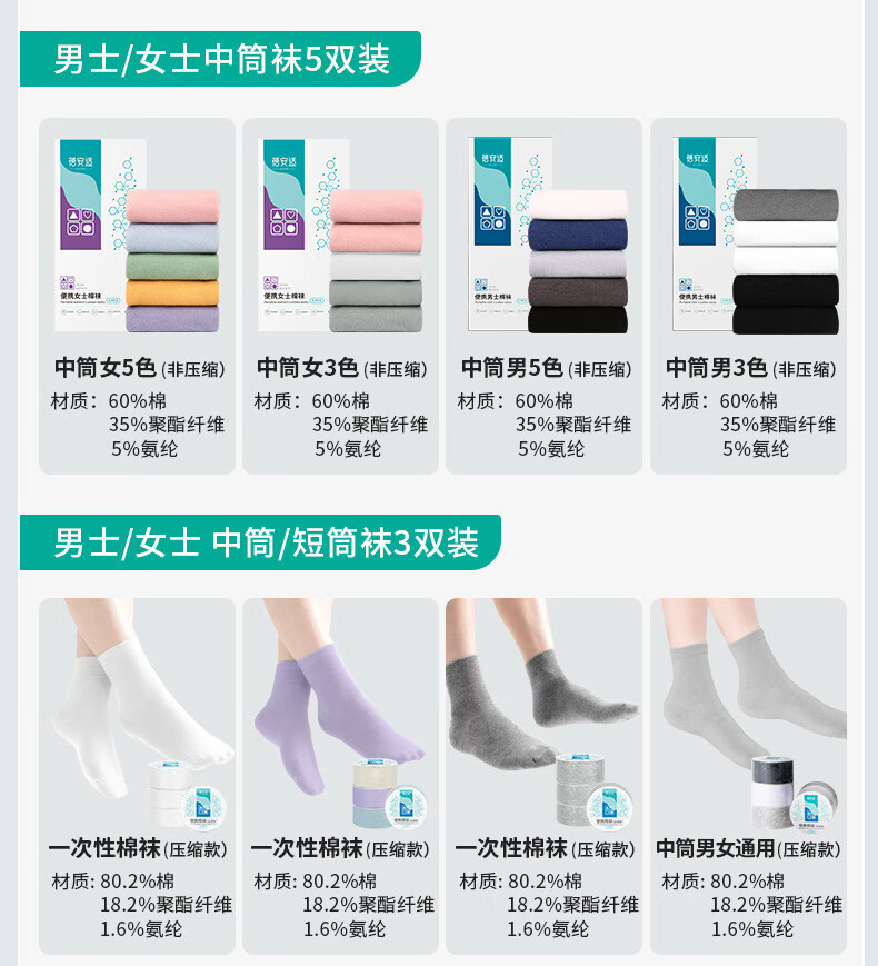 蓓安适一次性袜子男女短袜棉袜透气女士短袜初春中筒男女袜压缩袜 旗康超值款 旗康简装不含棉超值装*30双(男士混色