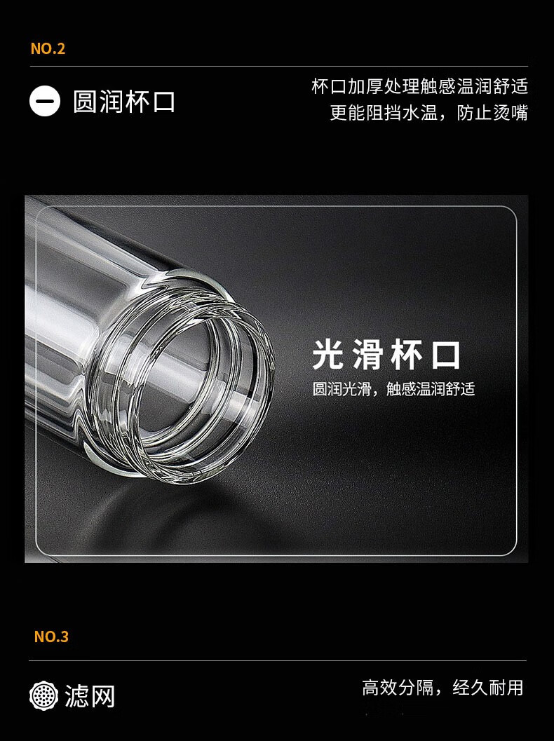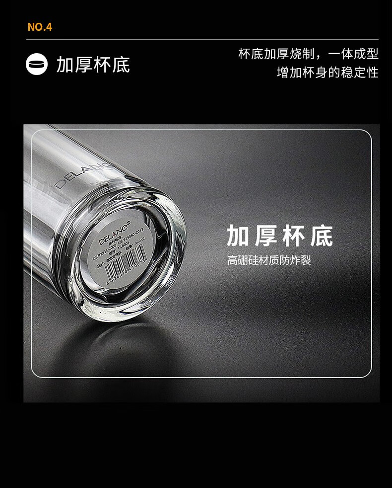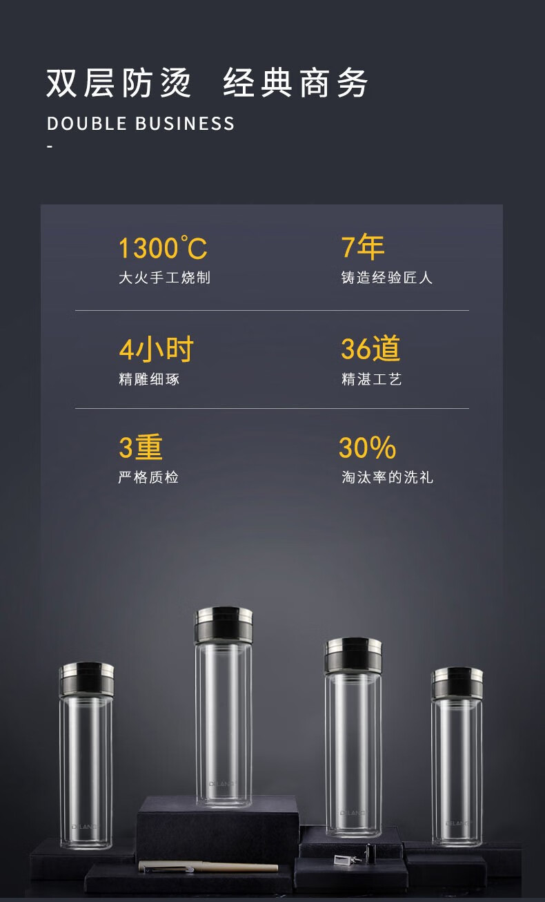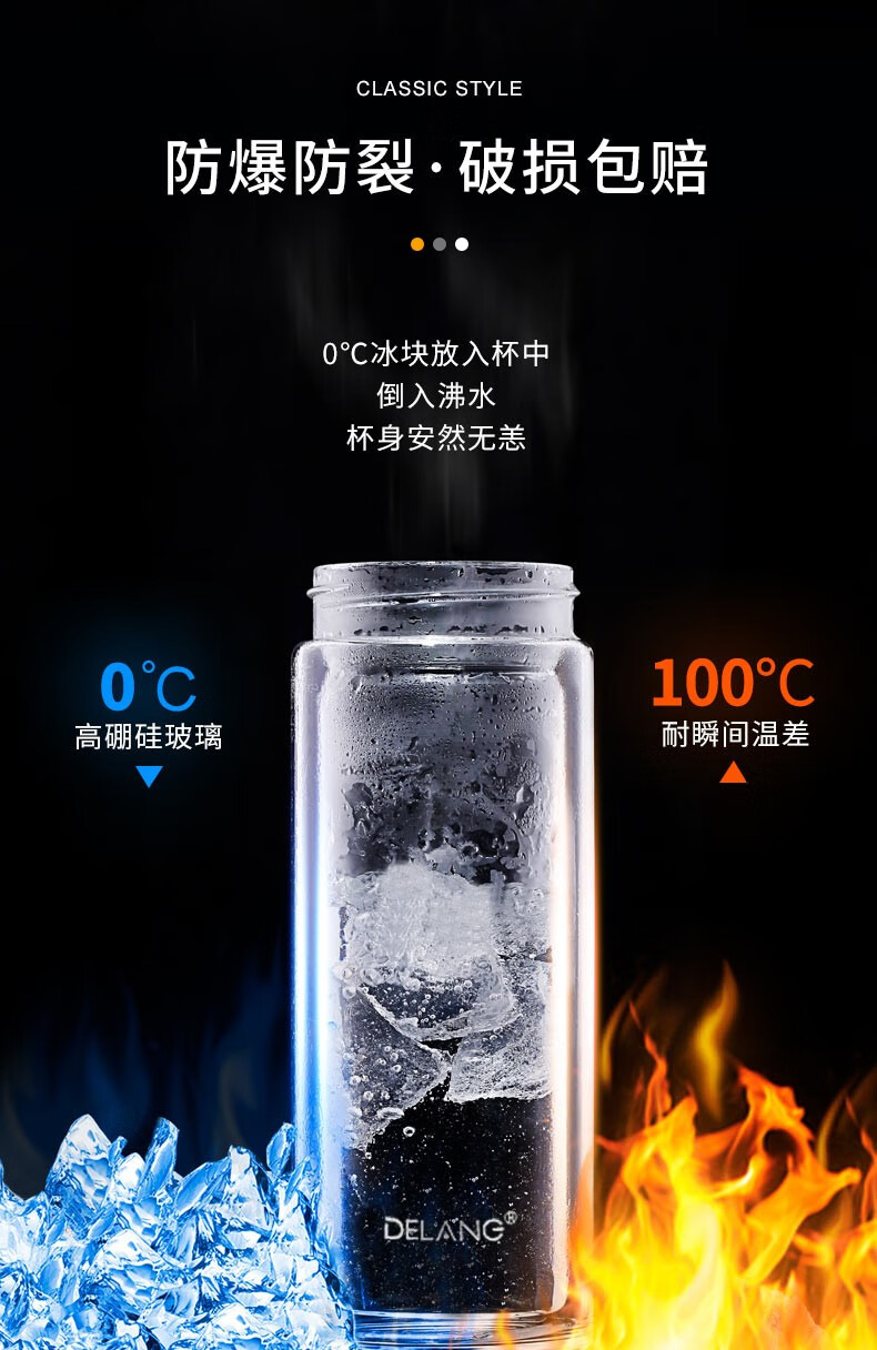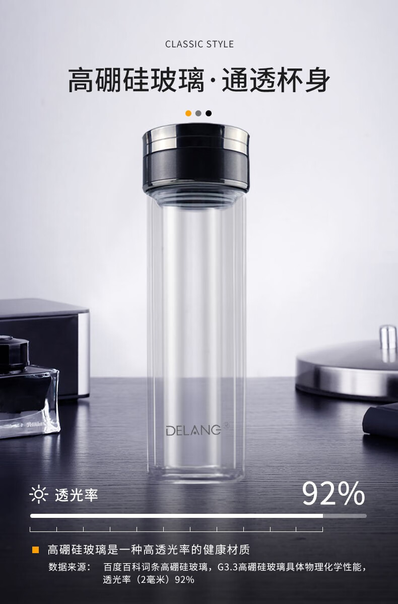 德琅(DELANG)德国品牌双层玻璃杯DL8005商务茶水分离杯320ml便携水杯车载茶隔 太空灰