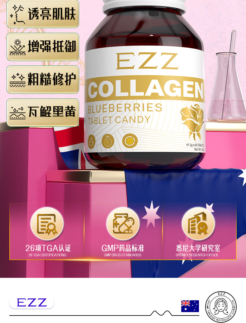 EZZ胶原蛋白片提亮烟酰胺片小分子肽内服可搭美白祛斑养颜送礼 拍3发7瓶【周期装】