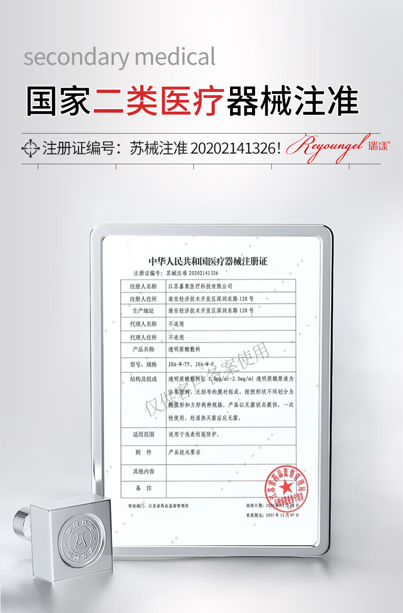 瑞漾 金装 透明质酸敷料 医用无菌辅料械字号面膜型冷敷贴医美术后 金装2盒【赠金装*4片】