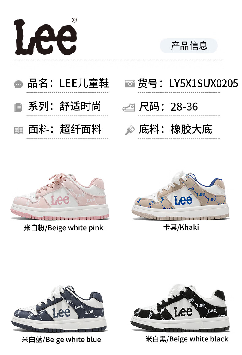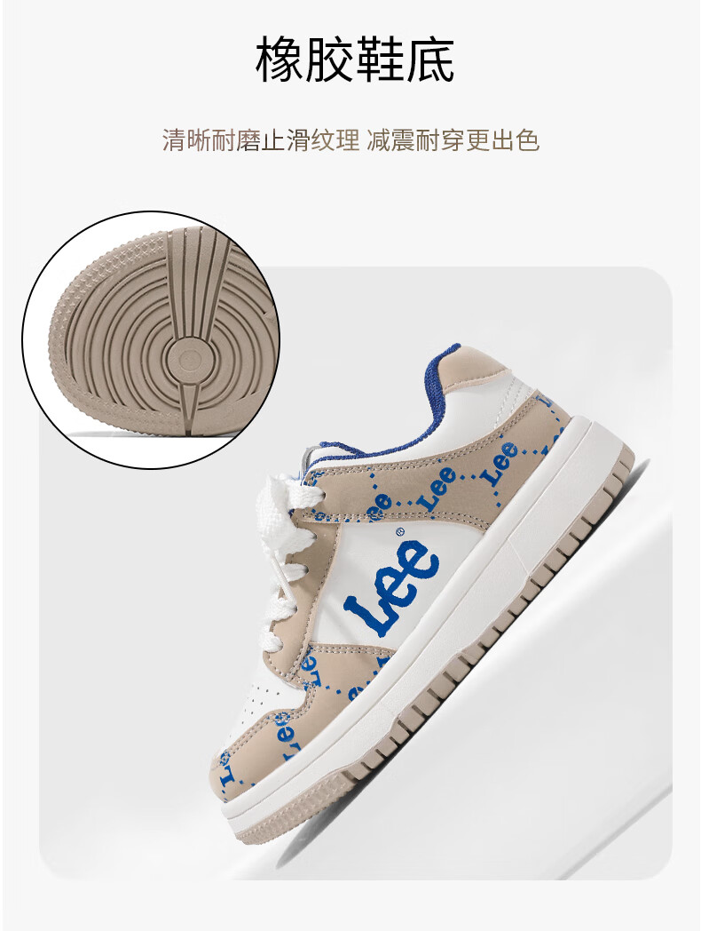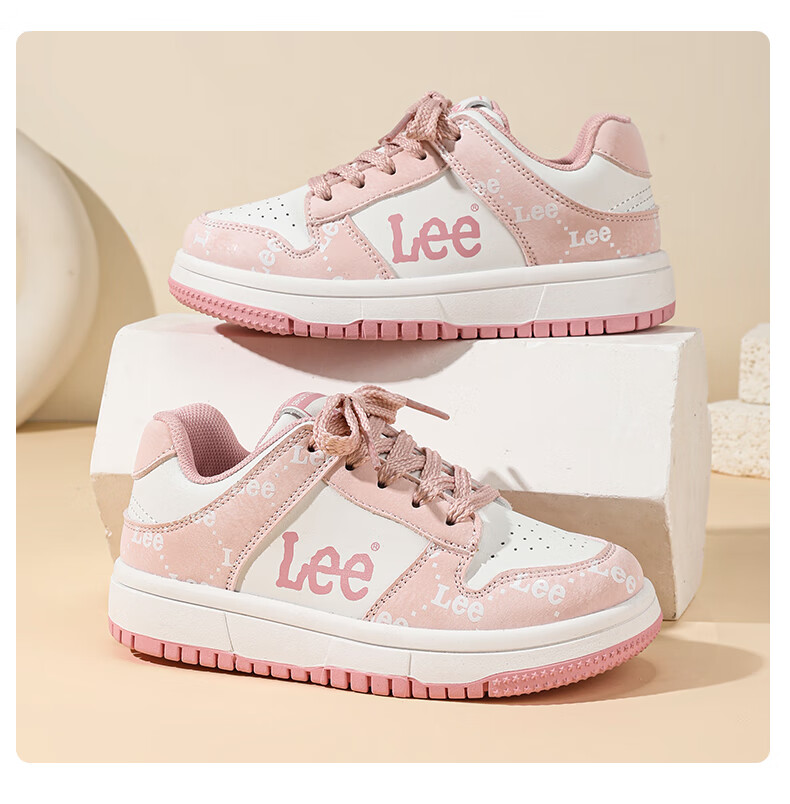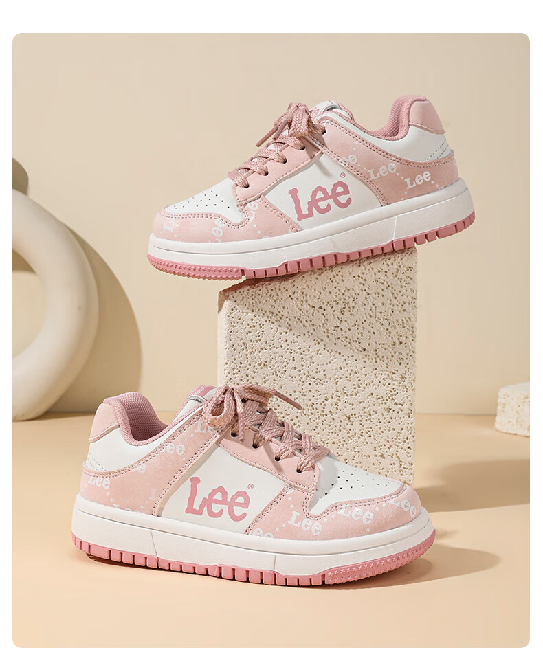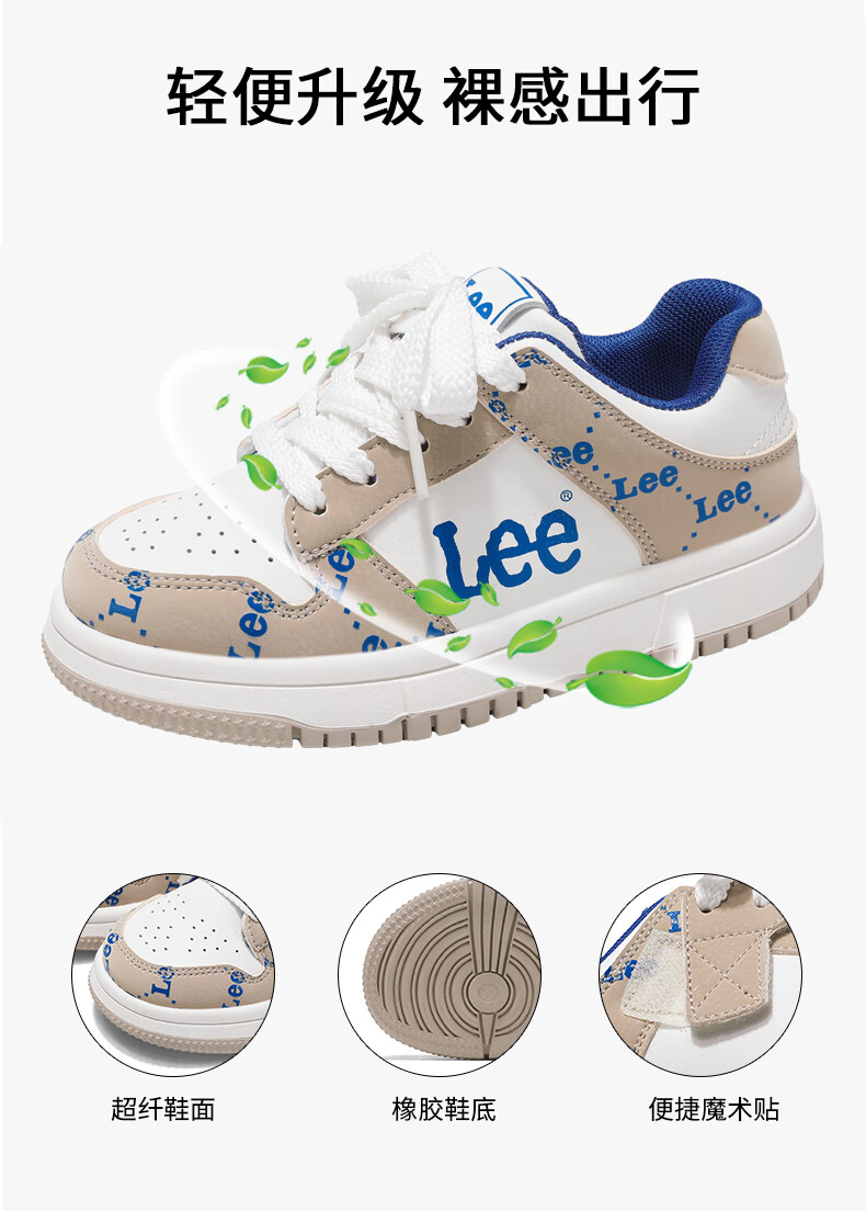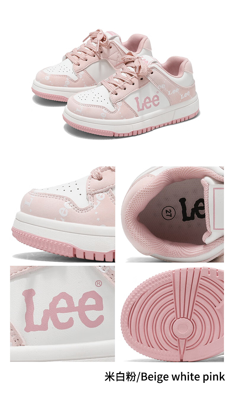 Lee儿童运动鞋春季新款透气百搭低帮板鞋魔术贴男女童鞋儿童休闲鞋 米白粉 29 【建议脚长178mm】