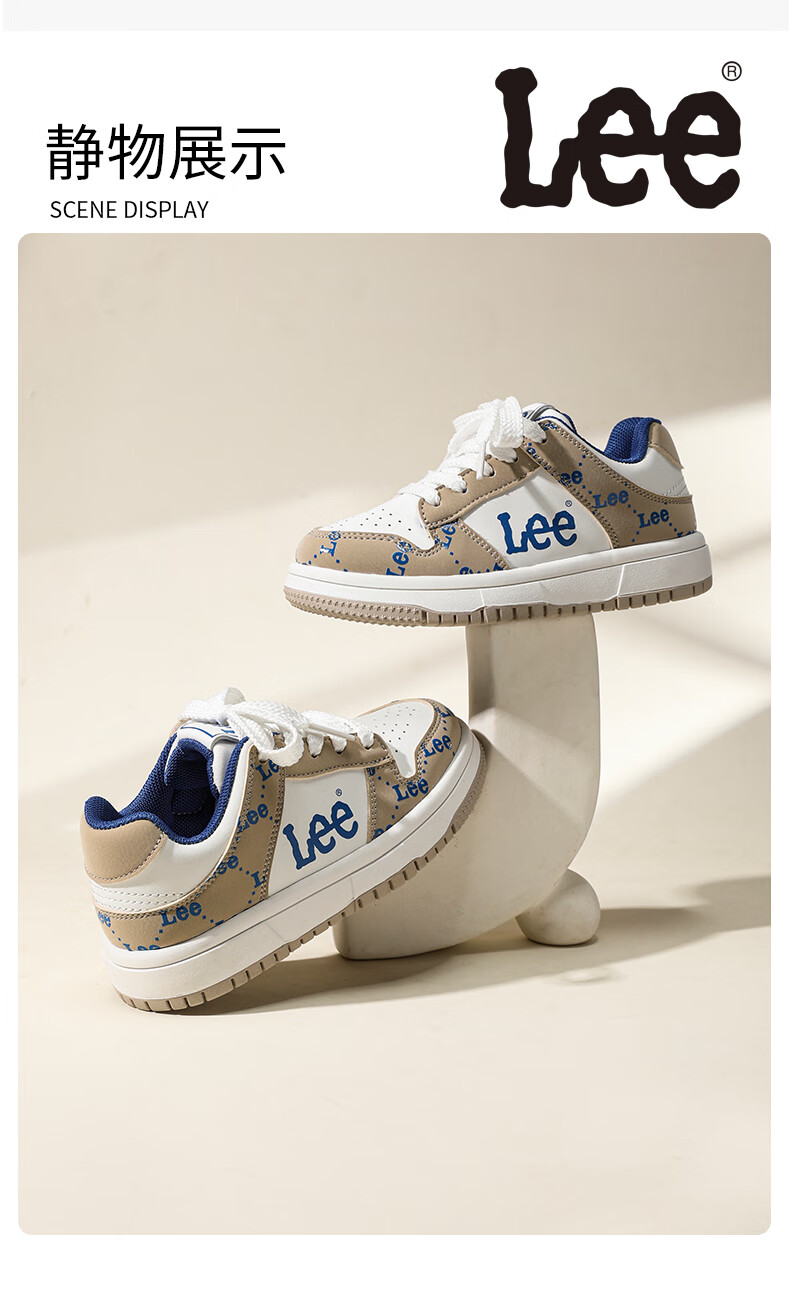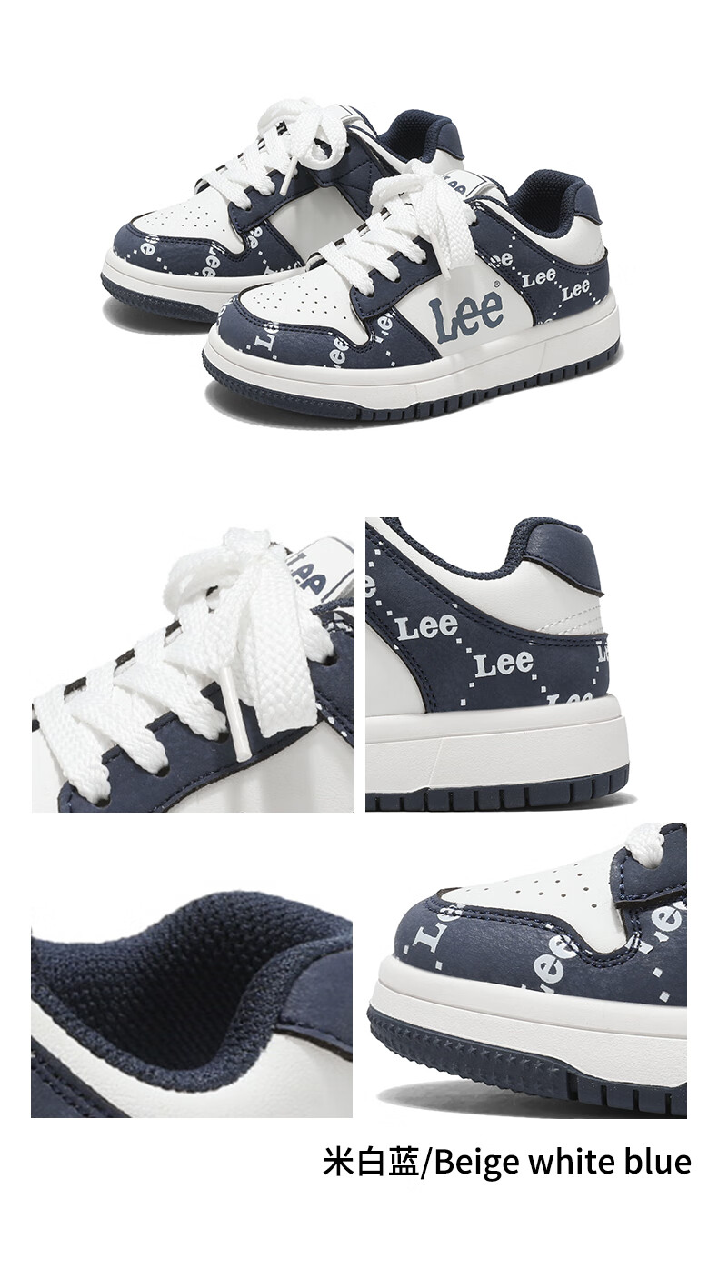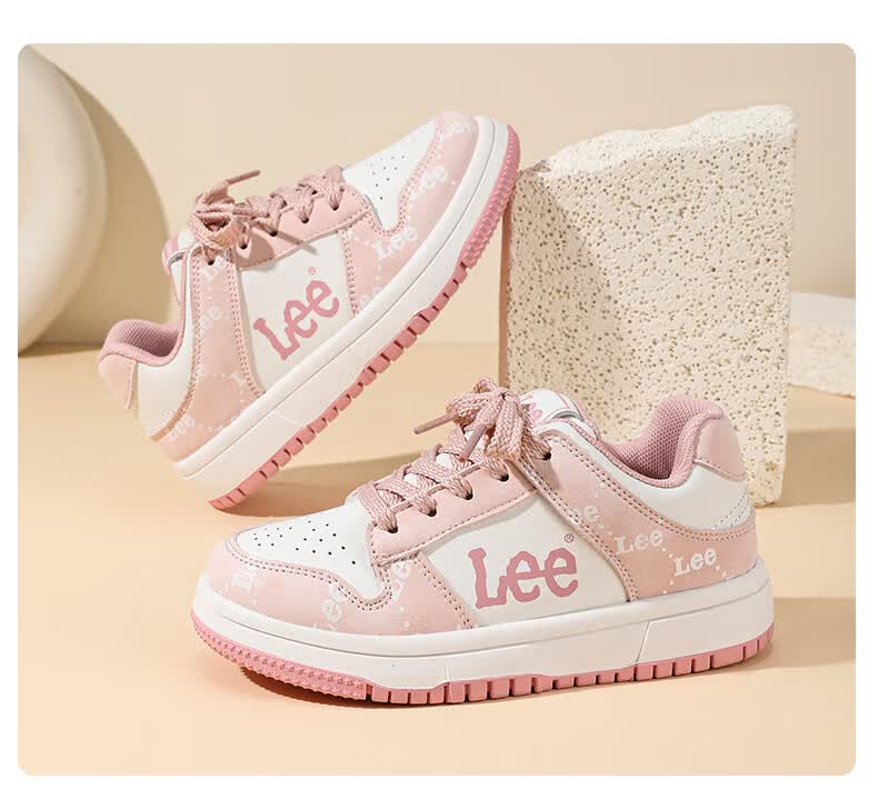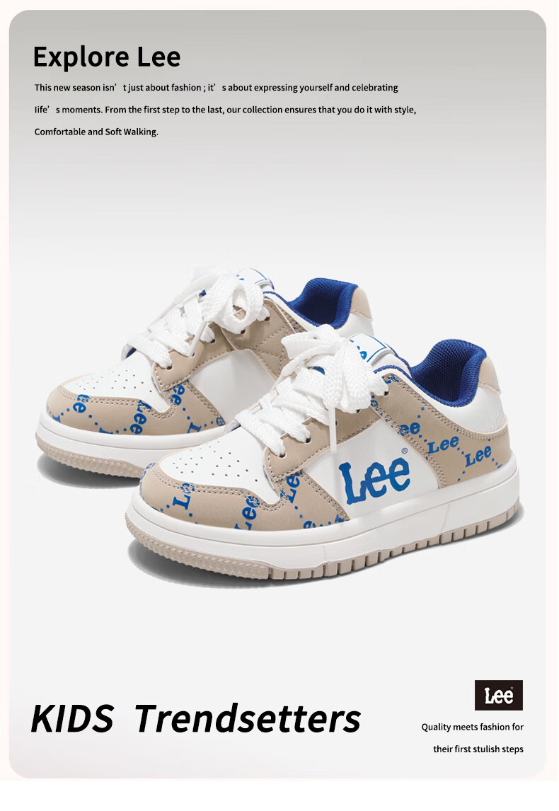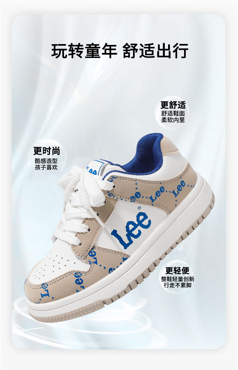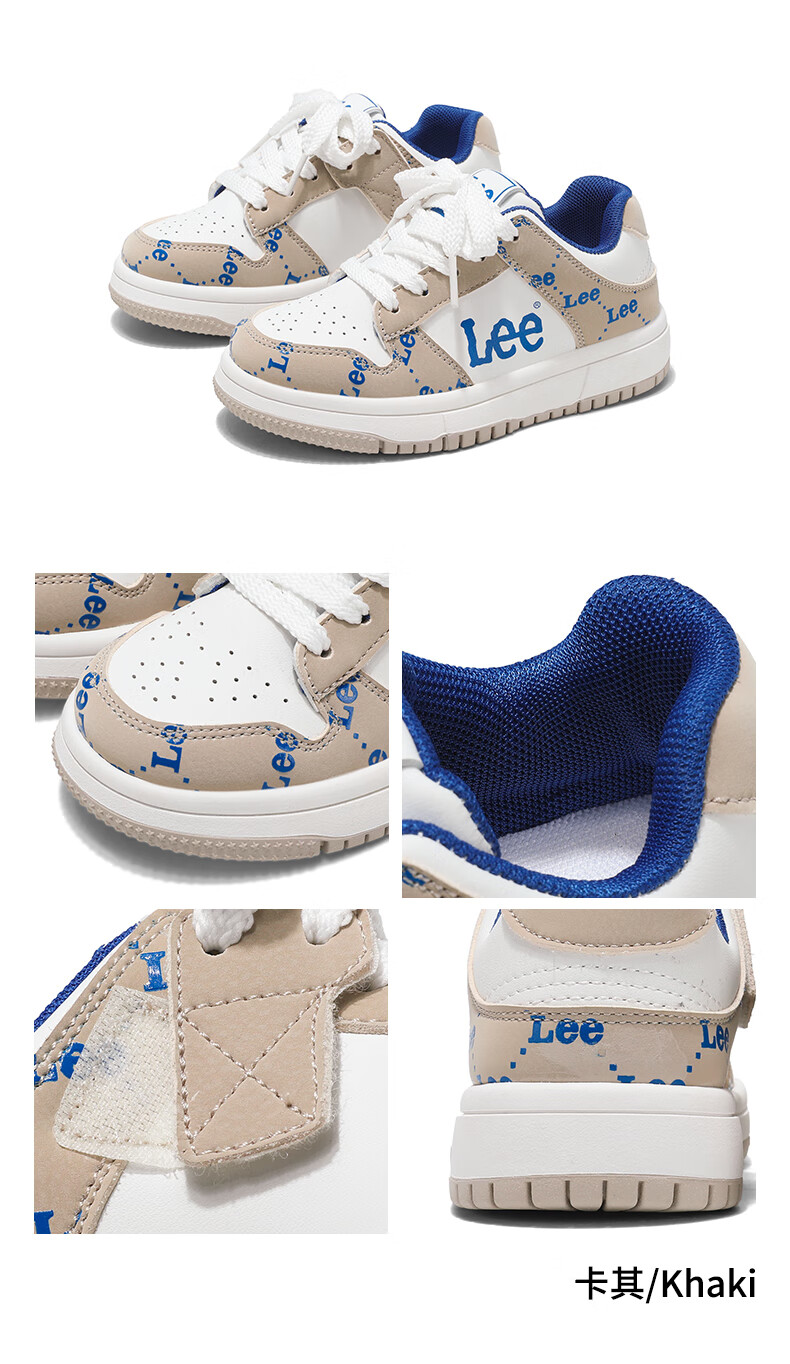 Lee儿童运动鞋春季新款透气百搭低帮板鞋魔术贴男女童鞋儿童休闲鞋 米白粉 29 【建议脚长178mm】