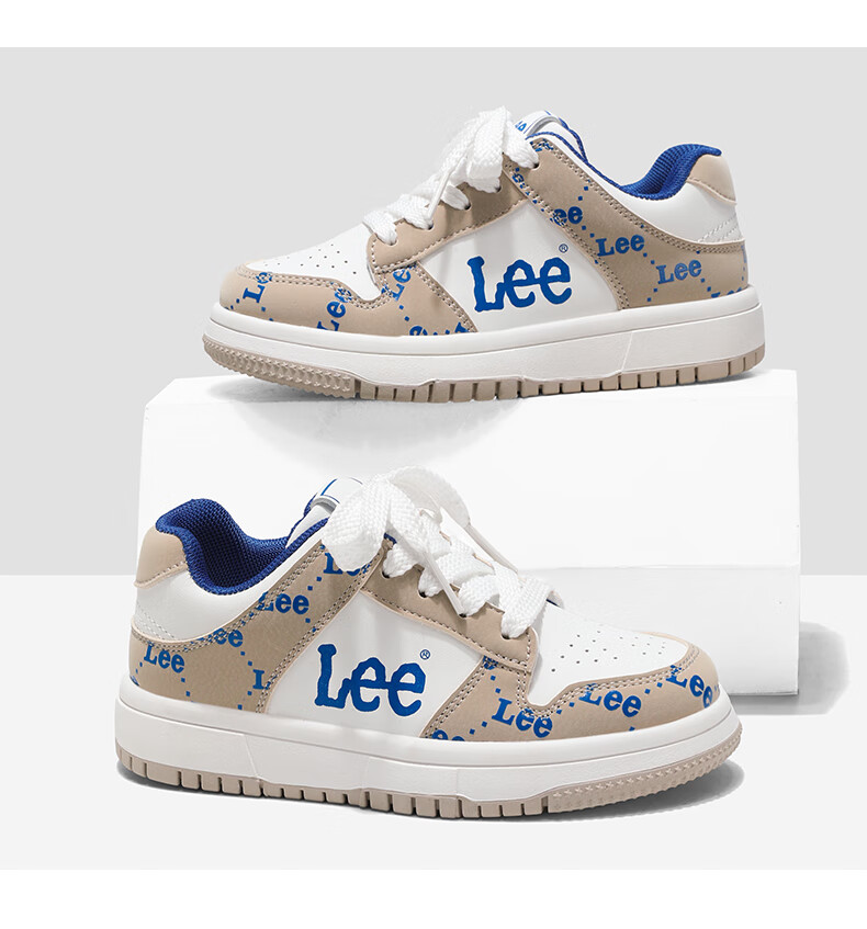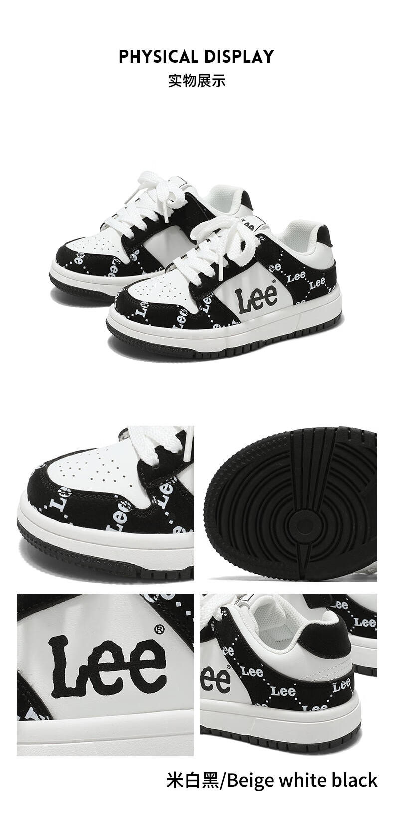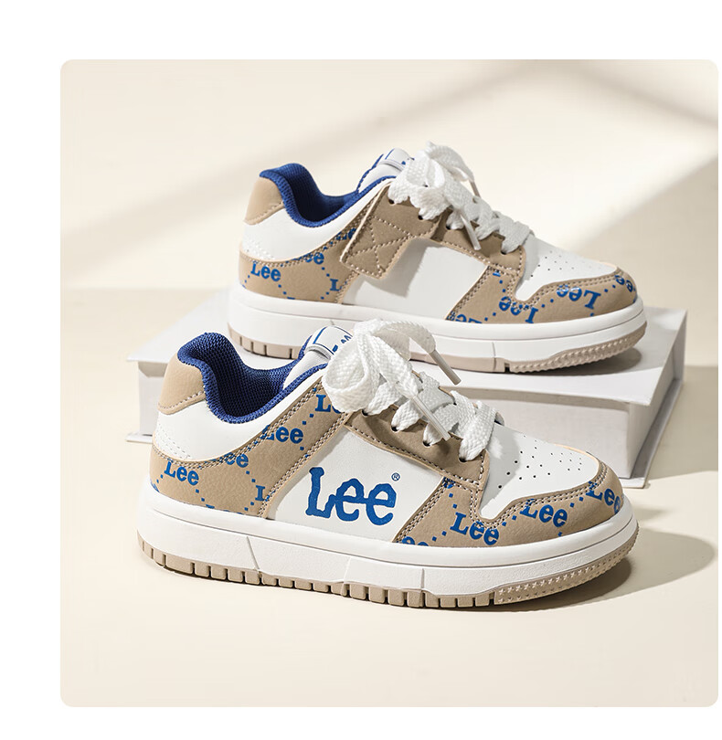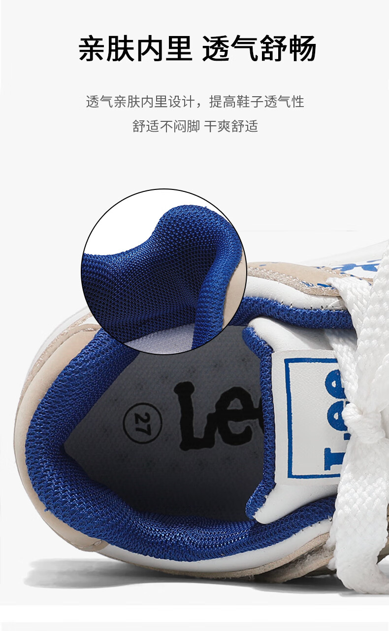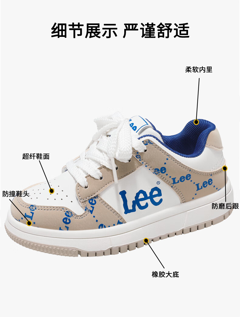 Lee儿童运动鞋春季新款透气百搭低帮板鞋魔术贴男女童鞋儿童休闲鞋 米白粉 29 【建议脚长178mm】