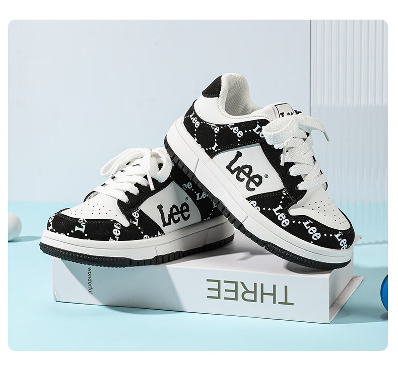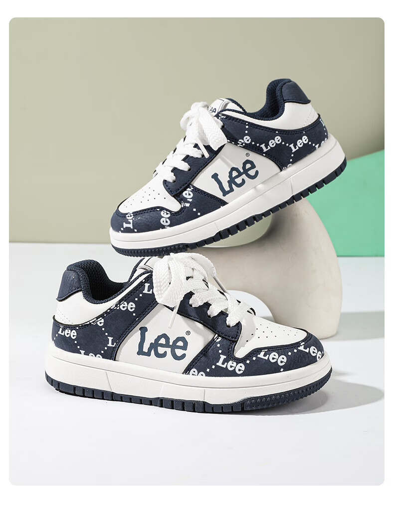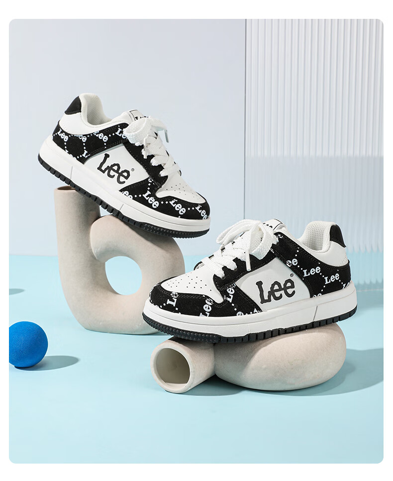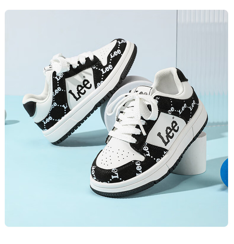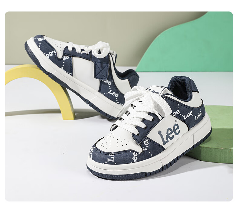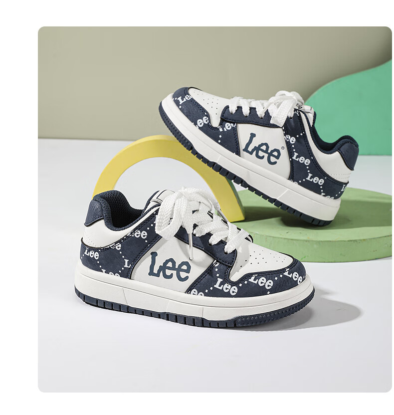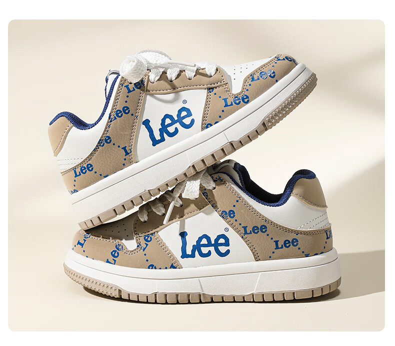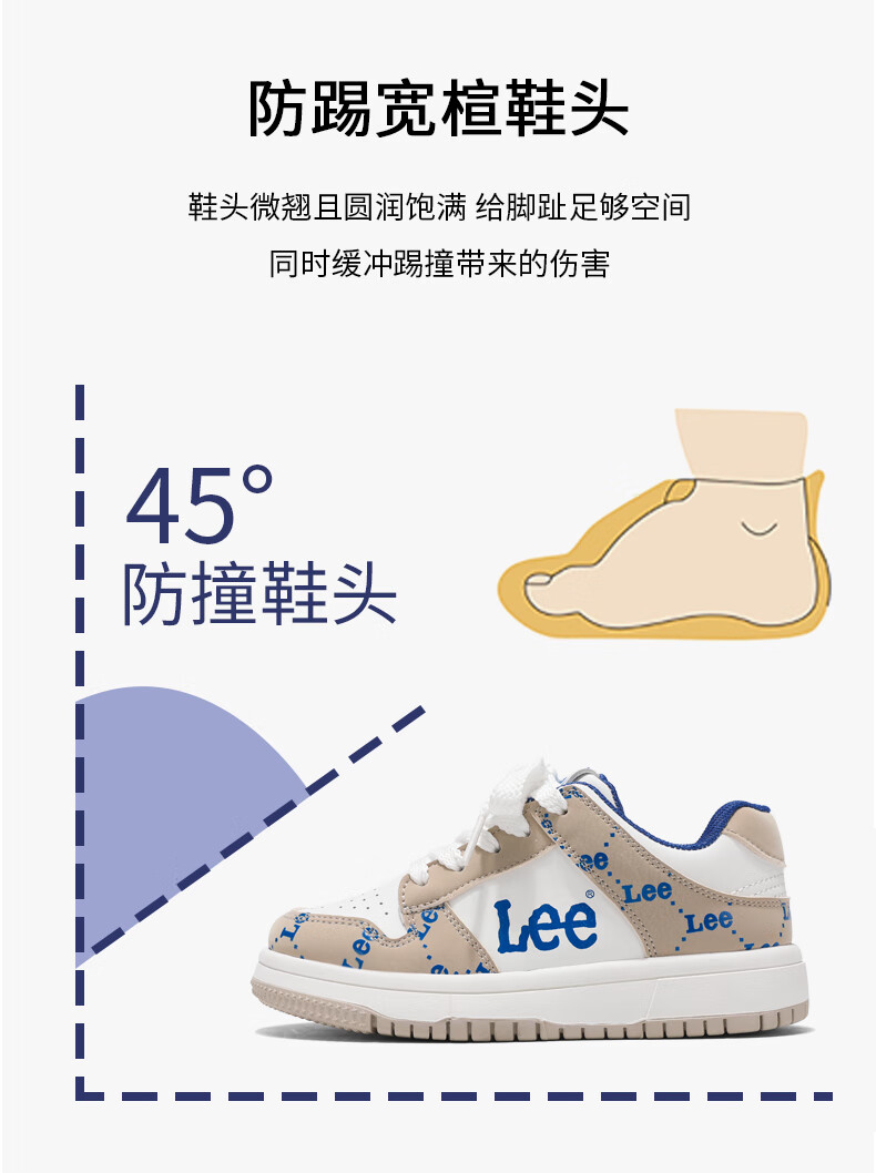 Lee儿童运动鞋春季新款透气百搭低帮板鞋魔术贴男女童鞋儿童休闲鞋 米白粉 29 【建议脚长178mm】