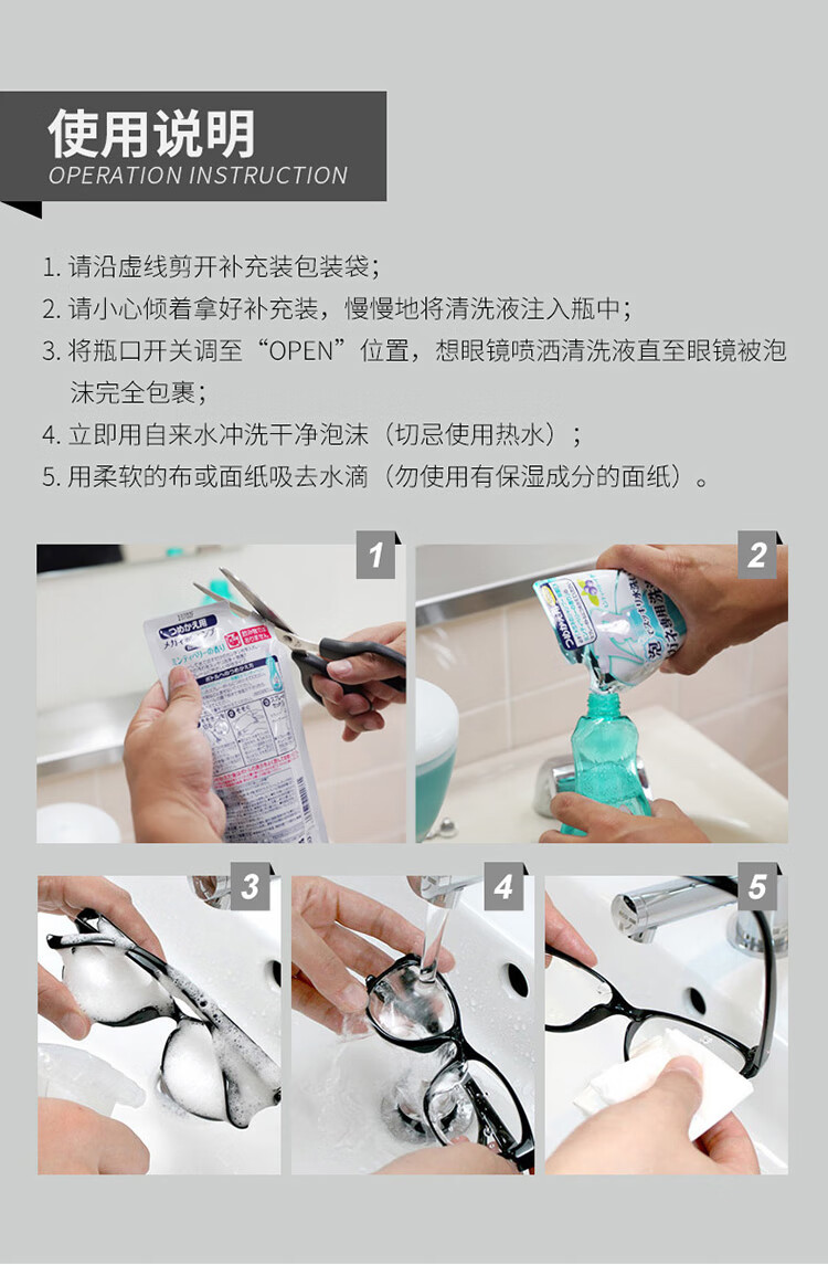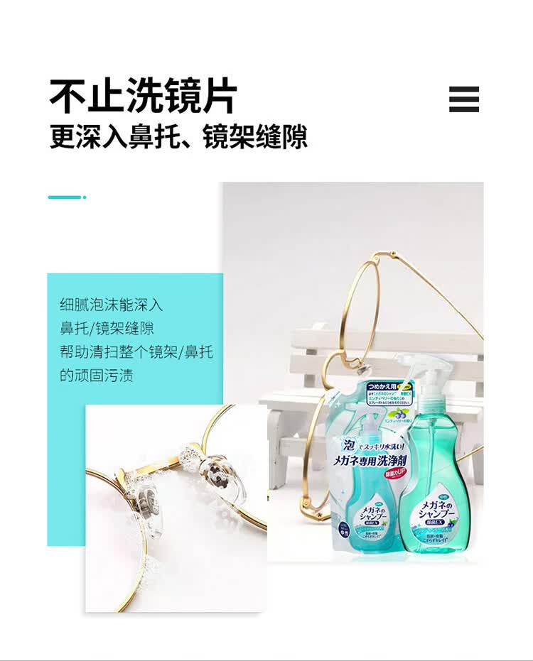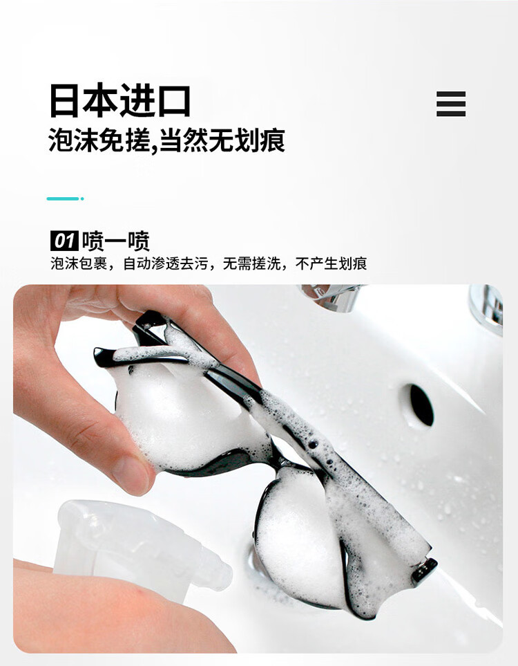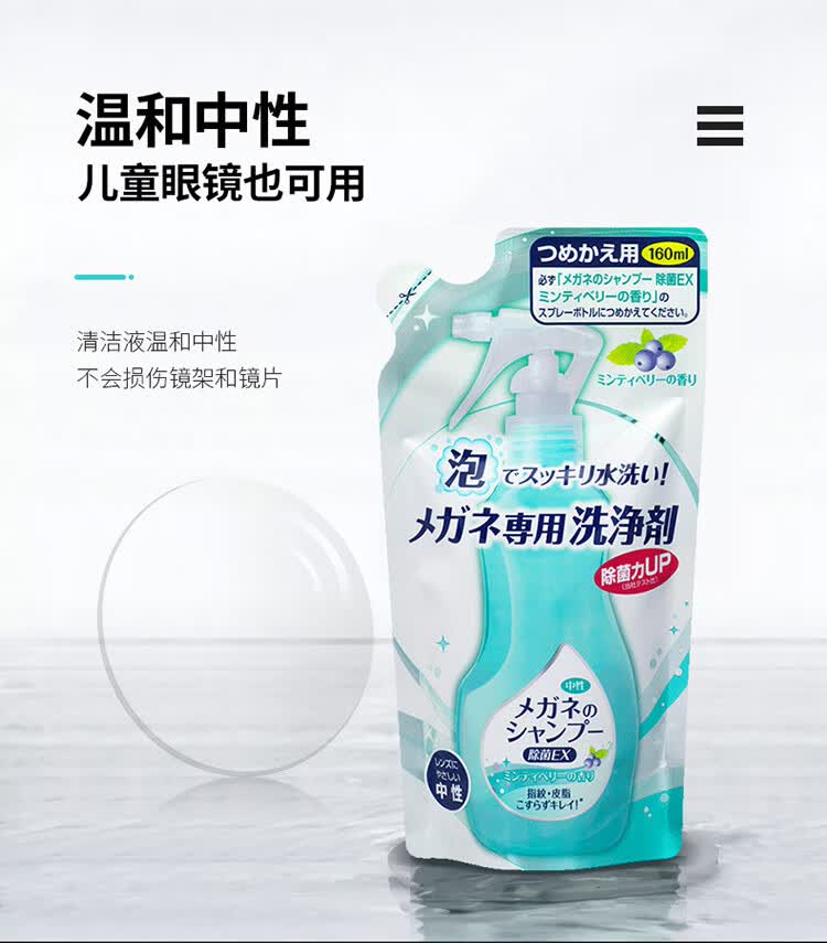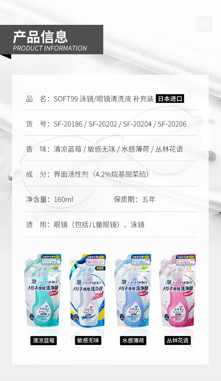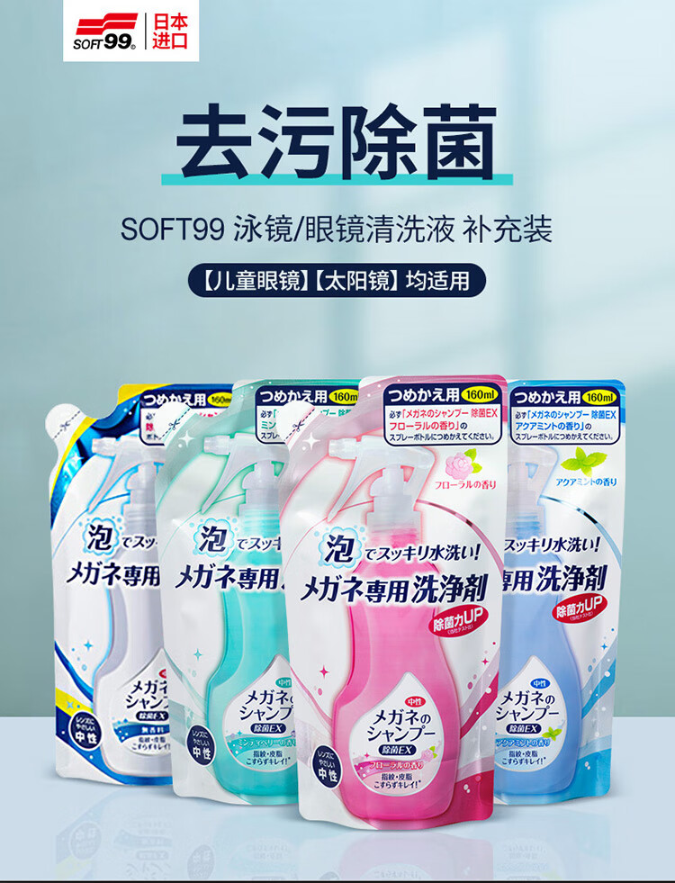 SOFT99原装进口眼镜清洗液镜片清洁剂 洗眼镜水近视镜太阳镜泡沫清洁液 敏感无味 补充装160ml
