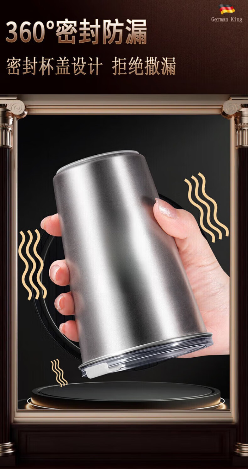 皇家洛克 ROYALLOCKE保温杯316不锈钢大容量男女水杯学生车载户外杯子 【不带显温】粉银320ml