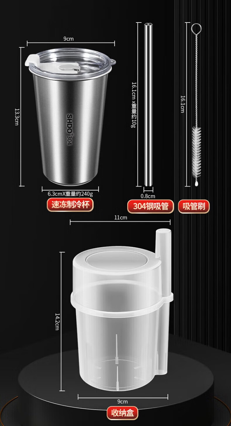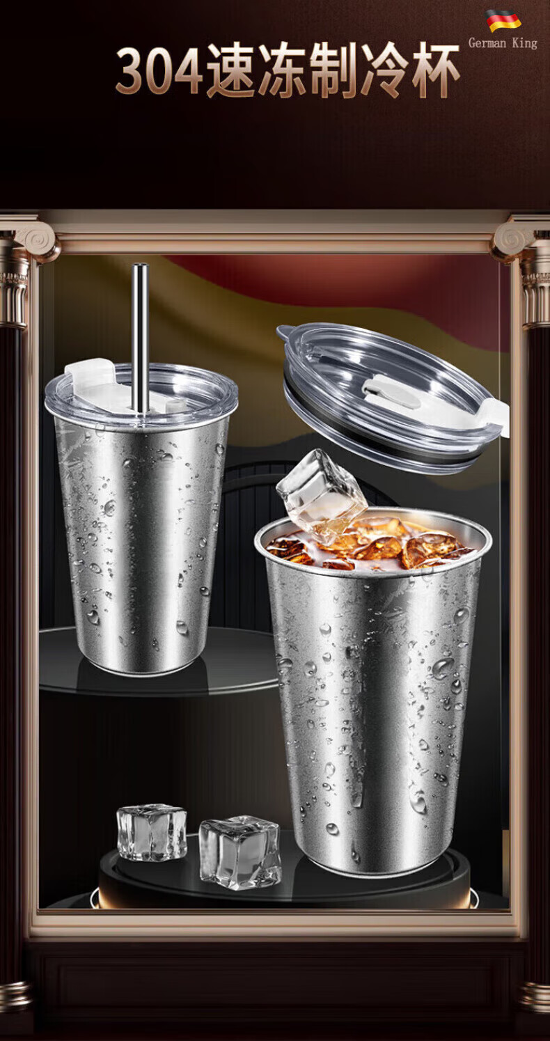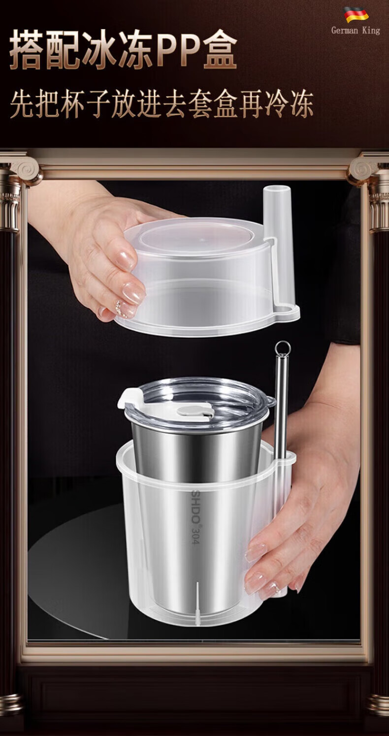 DEATKN德国304不锈钢冰霸杯制冷杯冰镇杯冰杯速冷杯吸管杯保冷杯 304速冻制冷杯+吸管400ml
