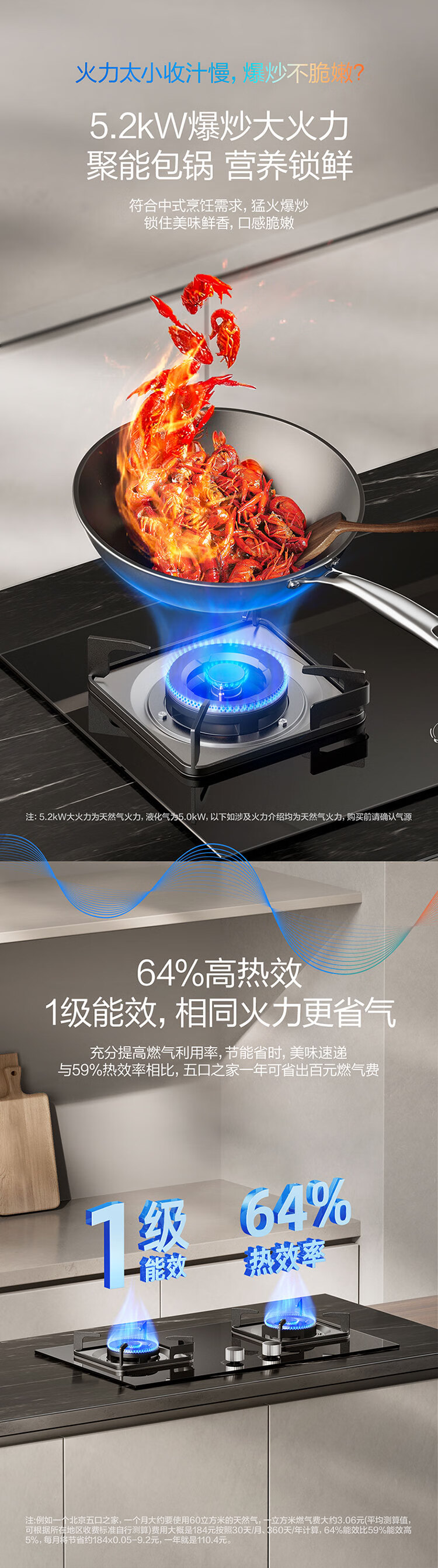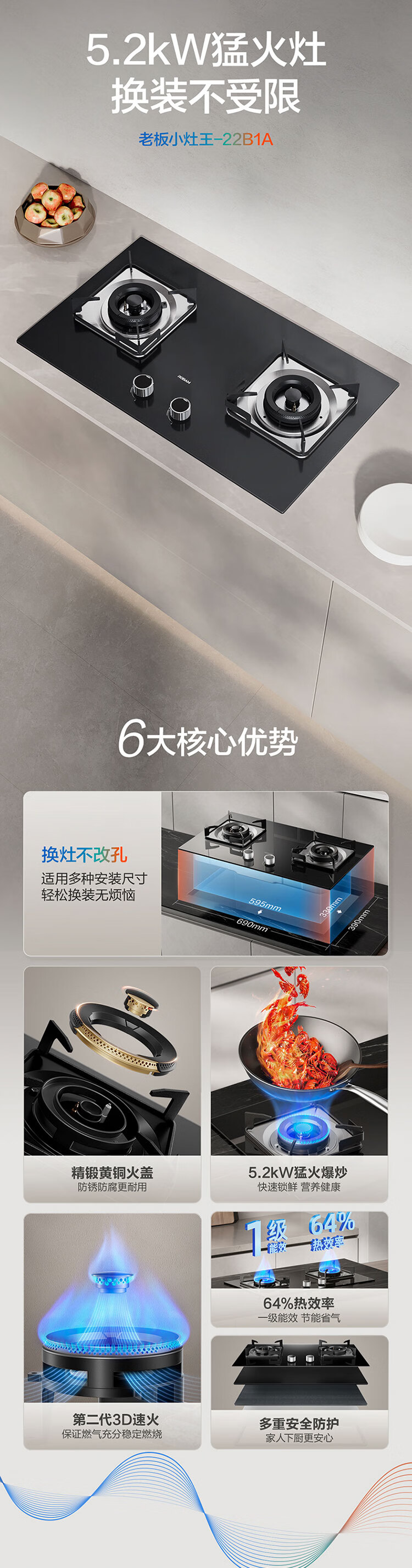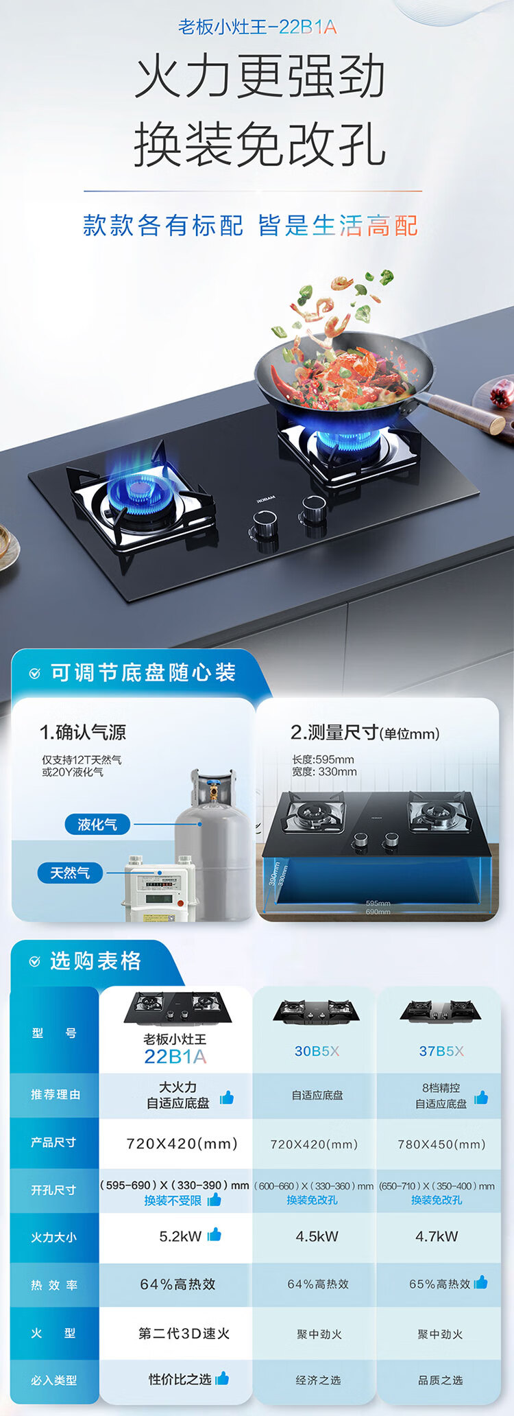 老板(Robam)【小灶王】E1L天然气灶具22B1A嵌入式大火力可调节5.2kW火力 猛火灶 政府补贴20% 一级能效