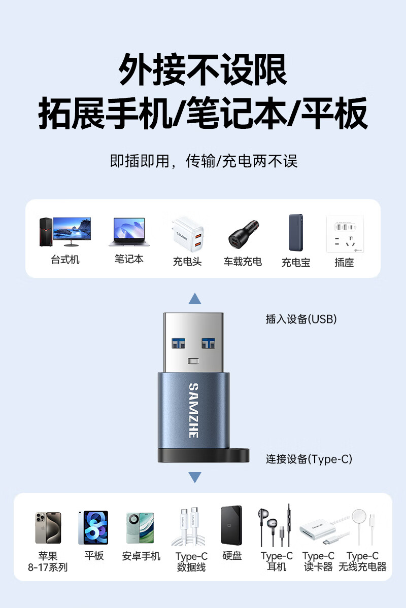 山泽USB3.2转换Type-C接头苹果15/16/17安卓手机OTG数据转换头线接U盘ipad耳机键鼠车载充电连接器UT30