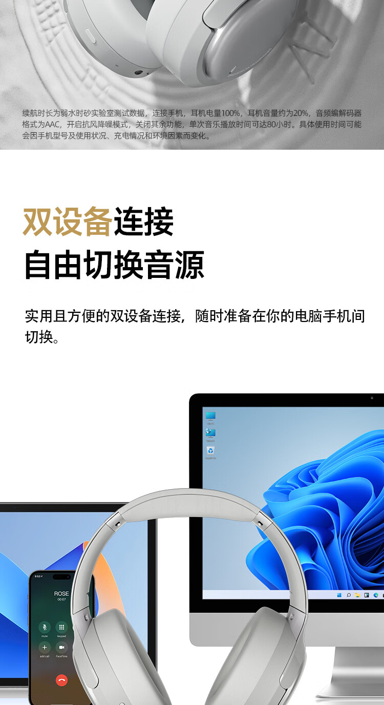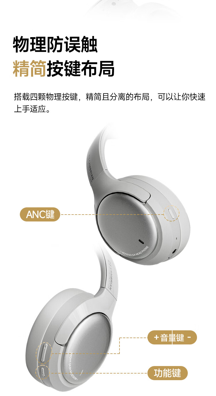 漫步者(EDIFIER)【重磅旗舰新品|蓝牙V6.0】Fit900NB小金标真无线主动降噪头戴式蓝牙耳机长续航游戏音乐耳麦礼物 云岩白+QQ音乐