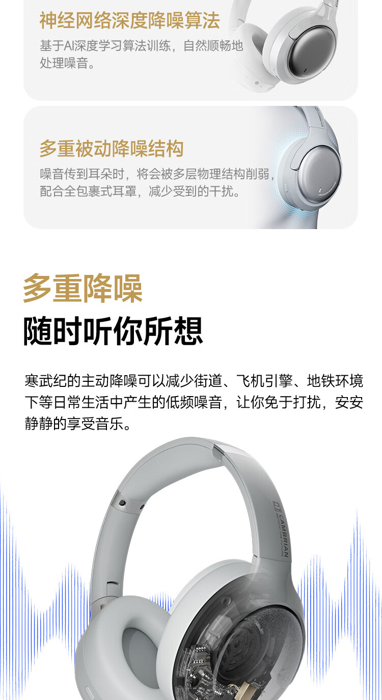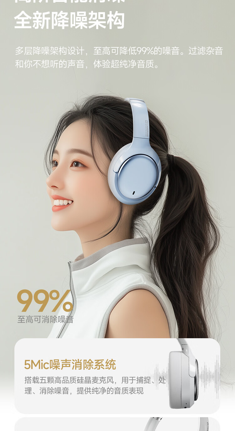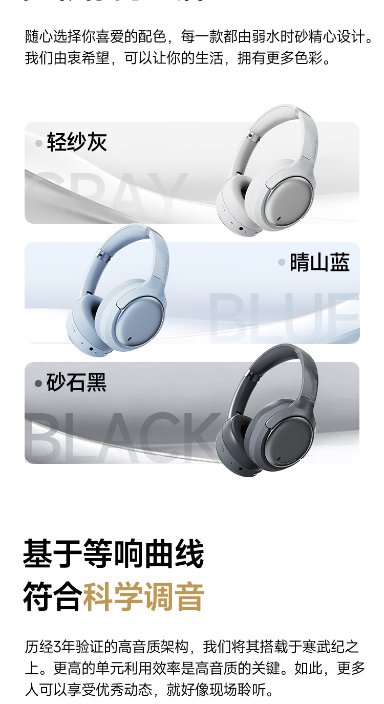 弱水时砂【2025新款】寒武纪头戴式耳机蓝牙无线降噪耳机手机电脑游戏低延迟超长续航送男女友学生 【旗舰版】晴山蓝|IMAX级沉浸声