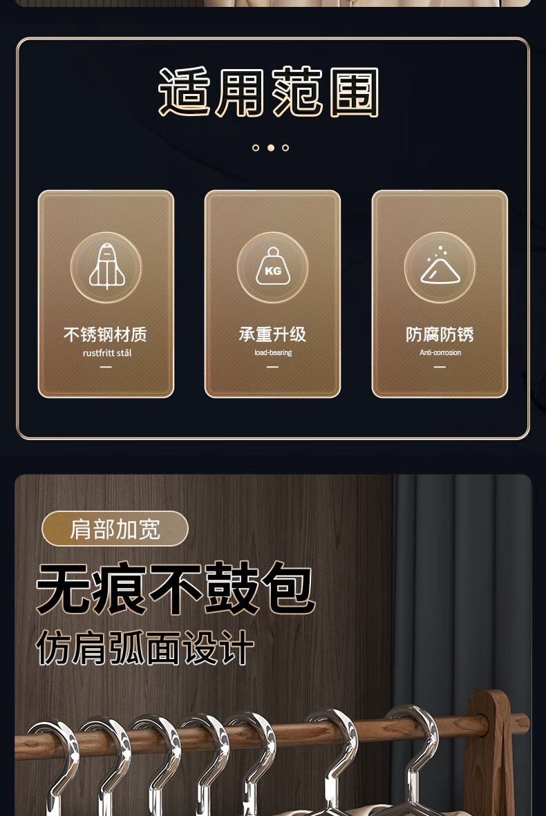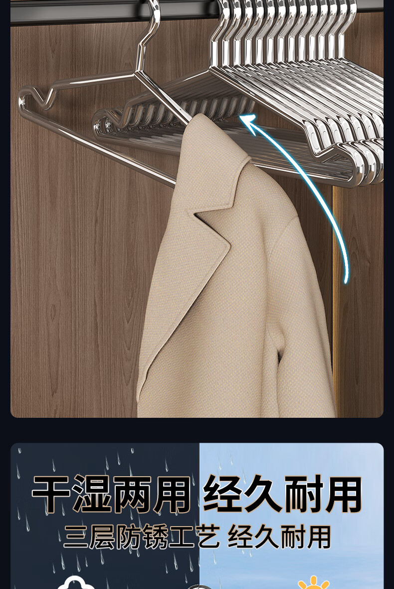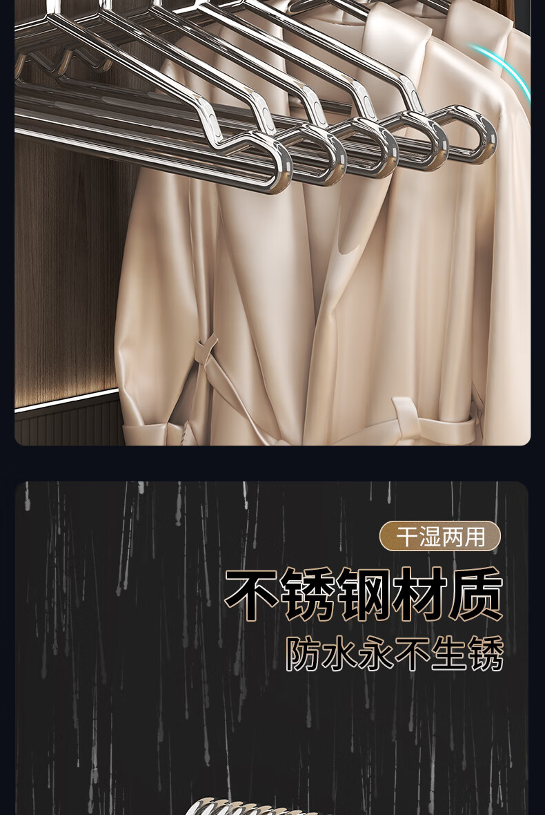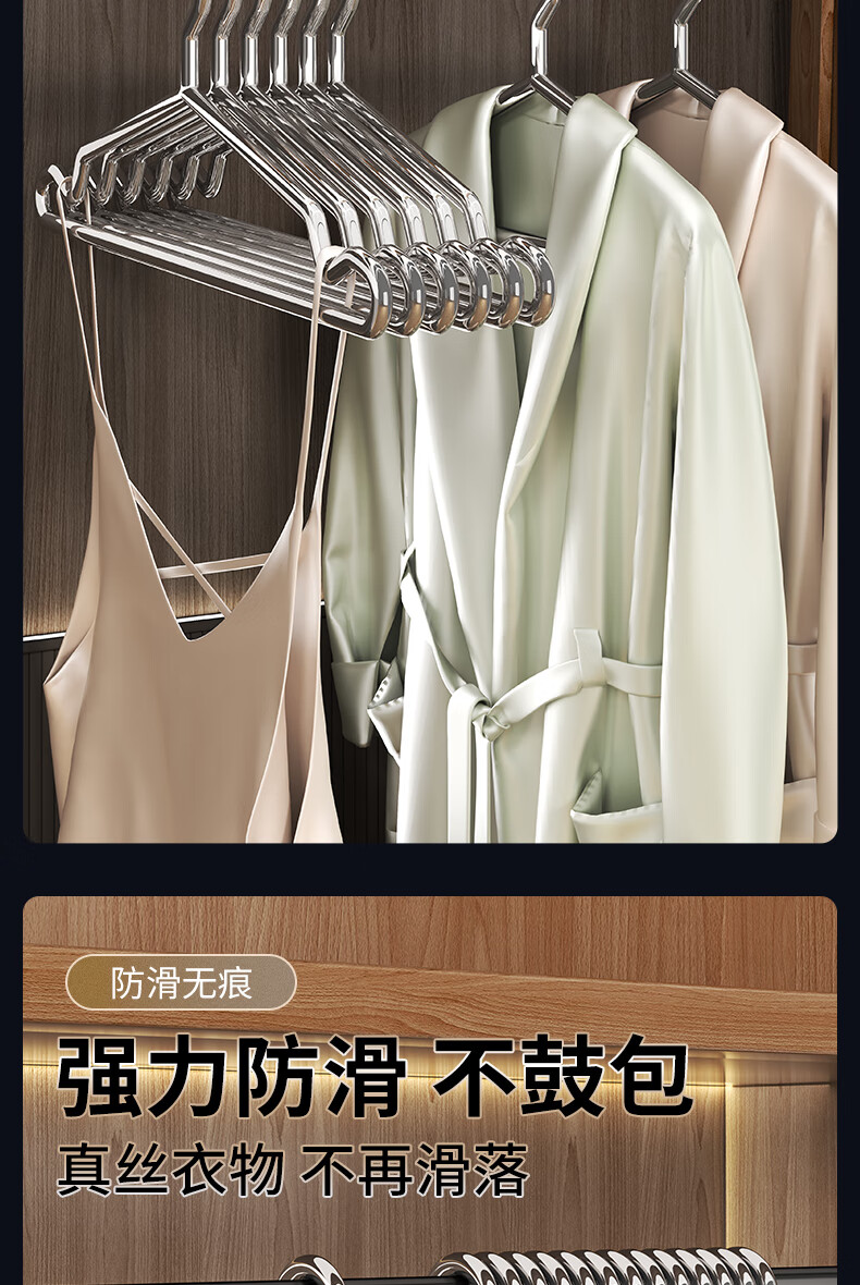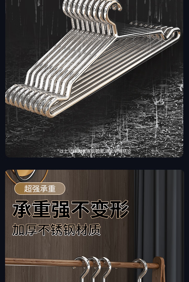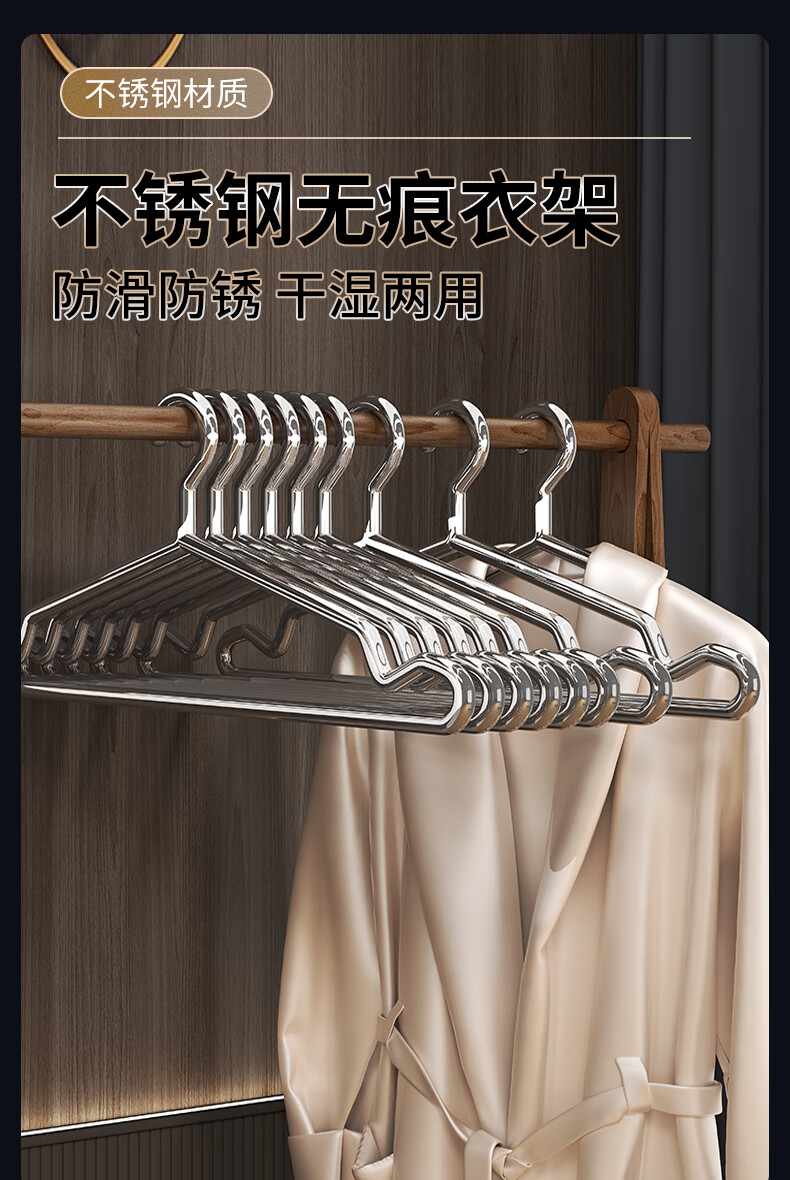 洁百纳不锈钢衣架家用无痕实芯挂衣架子加粗加厚晾衣撑子晒衣挂衣服挂钩 40cm成人标准款【特粗款不锈钢】 10个