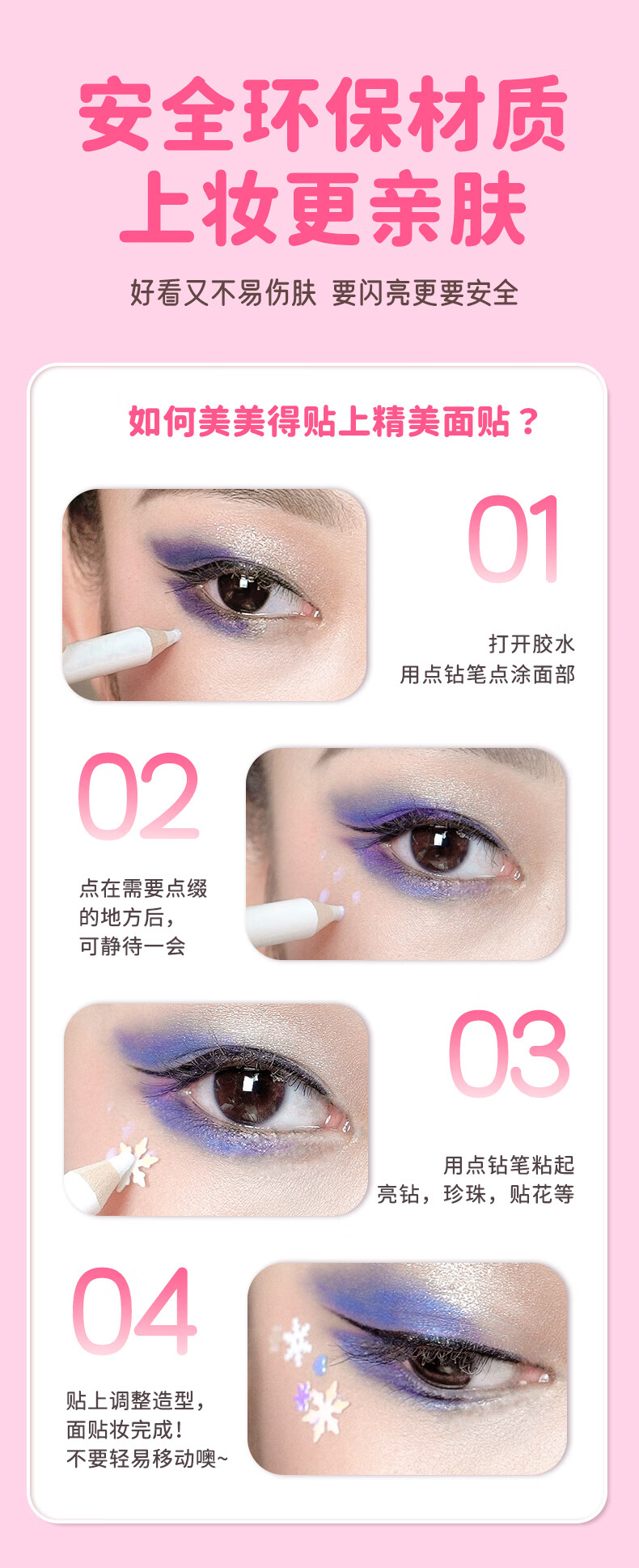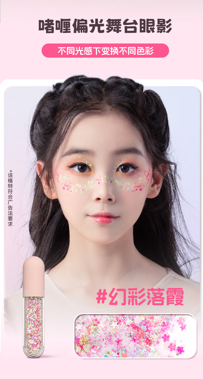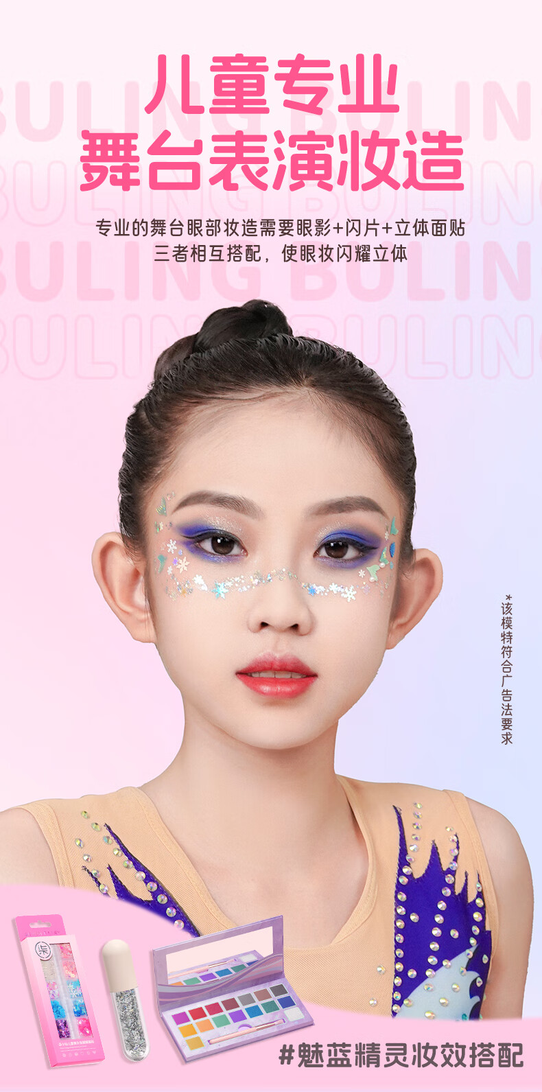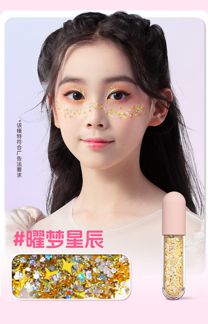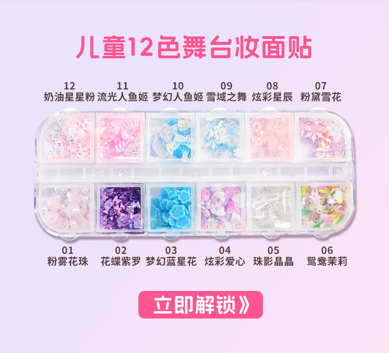 柒小仙 儿童亮片眼影面贴 青少年学生舞台妆演出珠光闪粉钻石金葱亮 12色闪彩蝴蝶面贴(实付满199顺丰包邮)