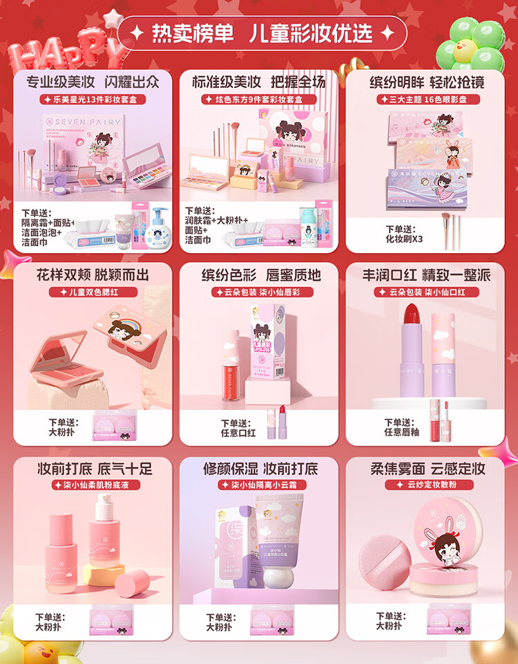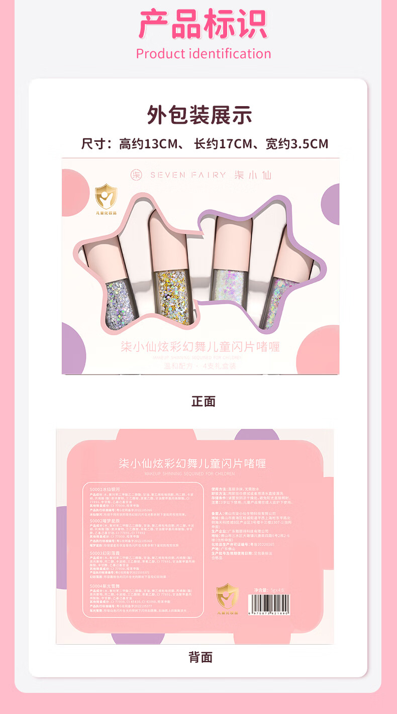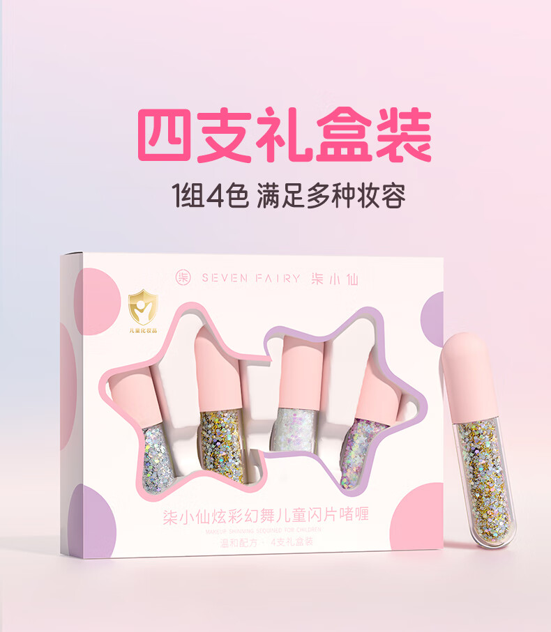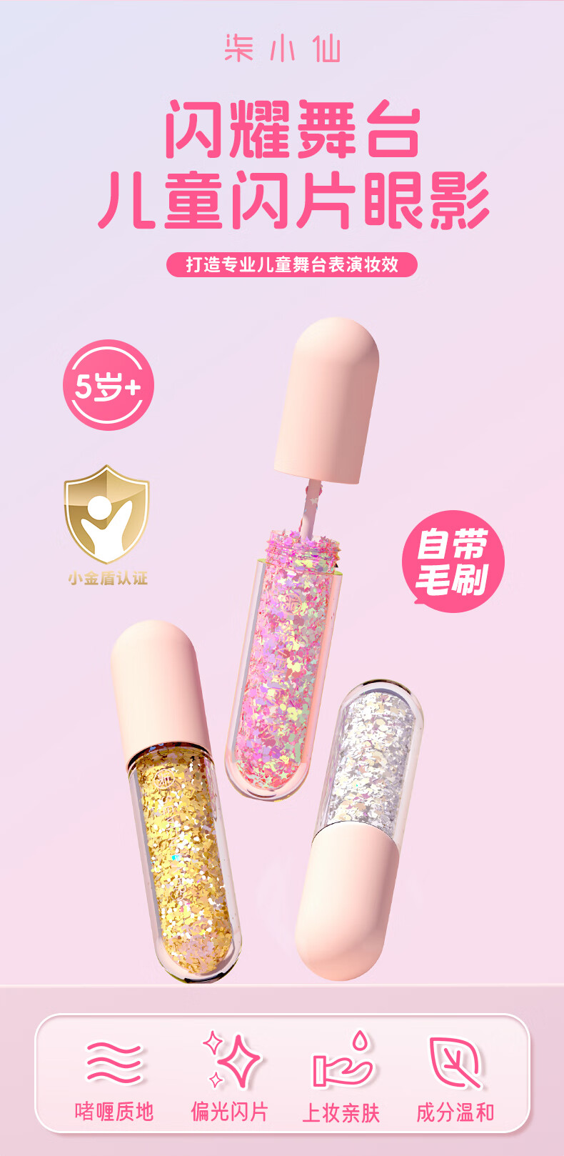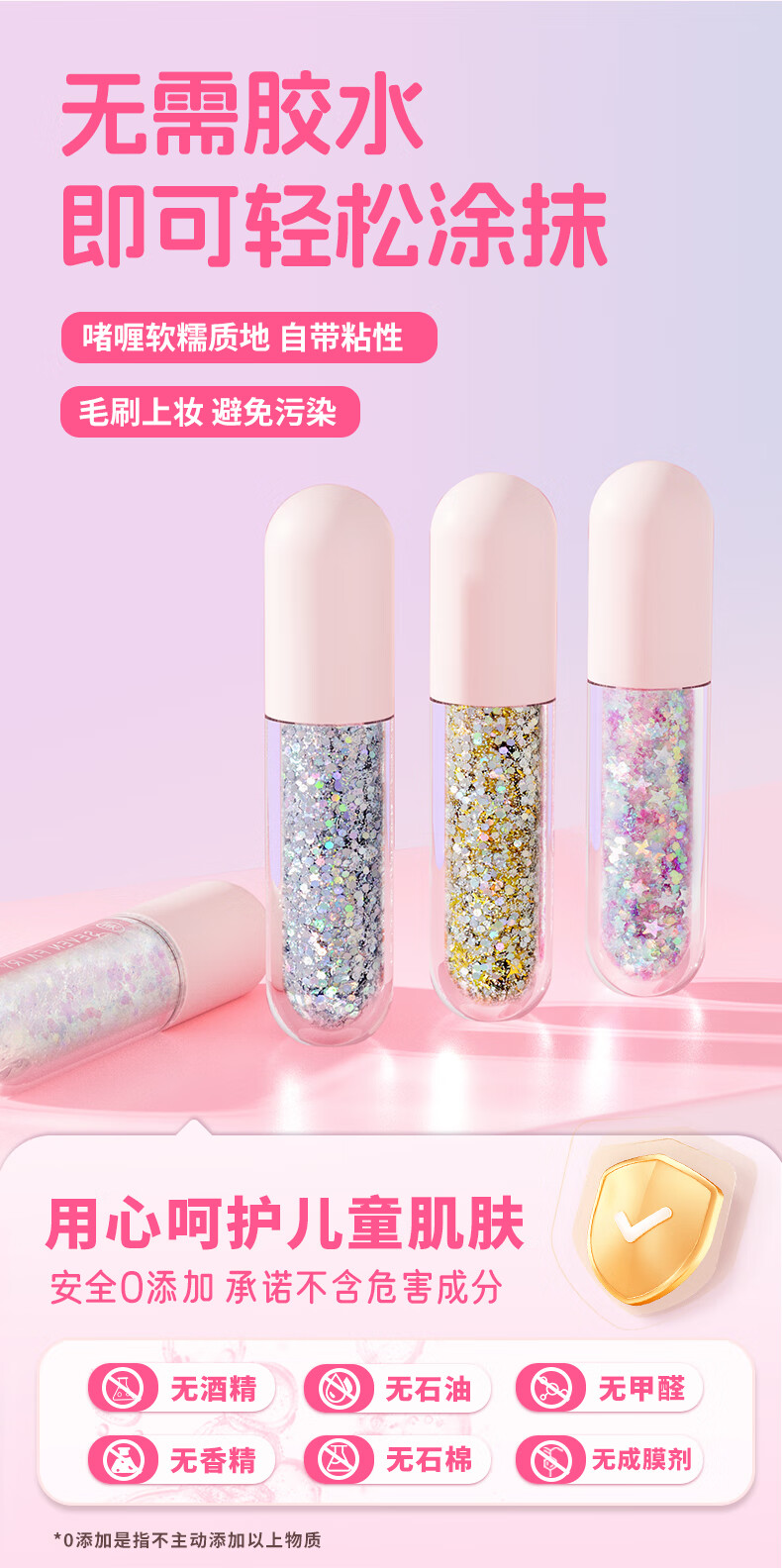 柒小仙 儿童亮片眼影面贴 青少年学生舞台妆演出珠光闪粉钻石金葱亮 12色闪彩蝴蝶面贴(实付满199顺丰包邮)