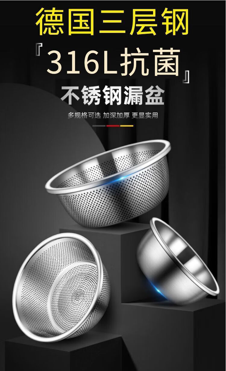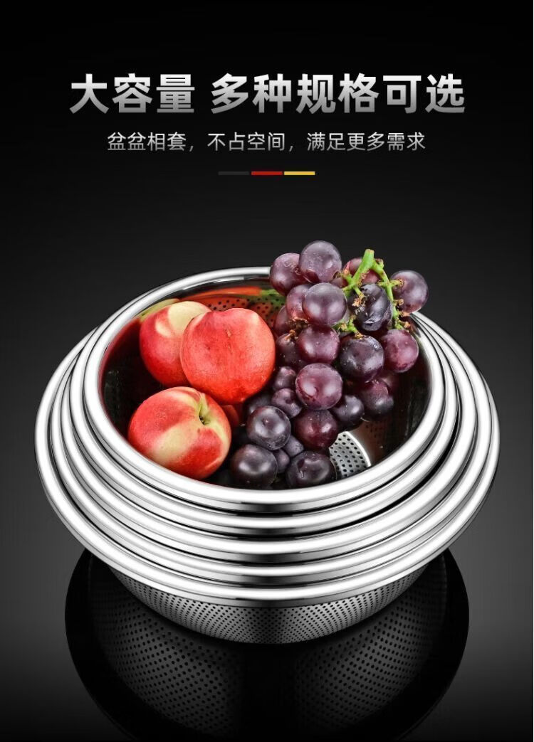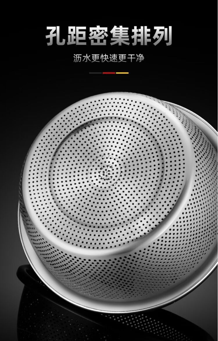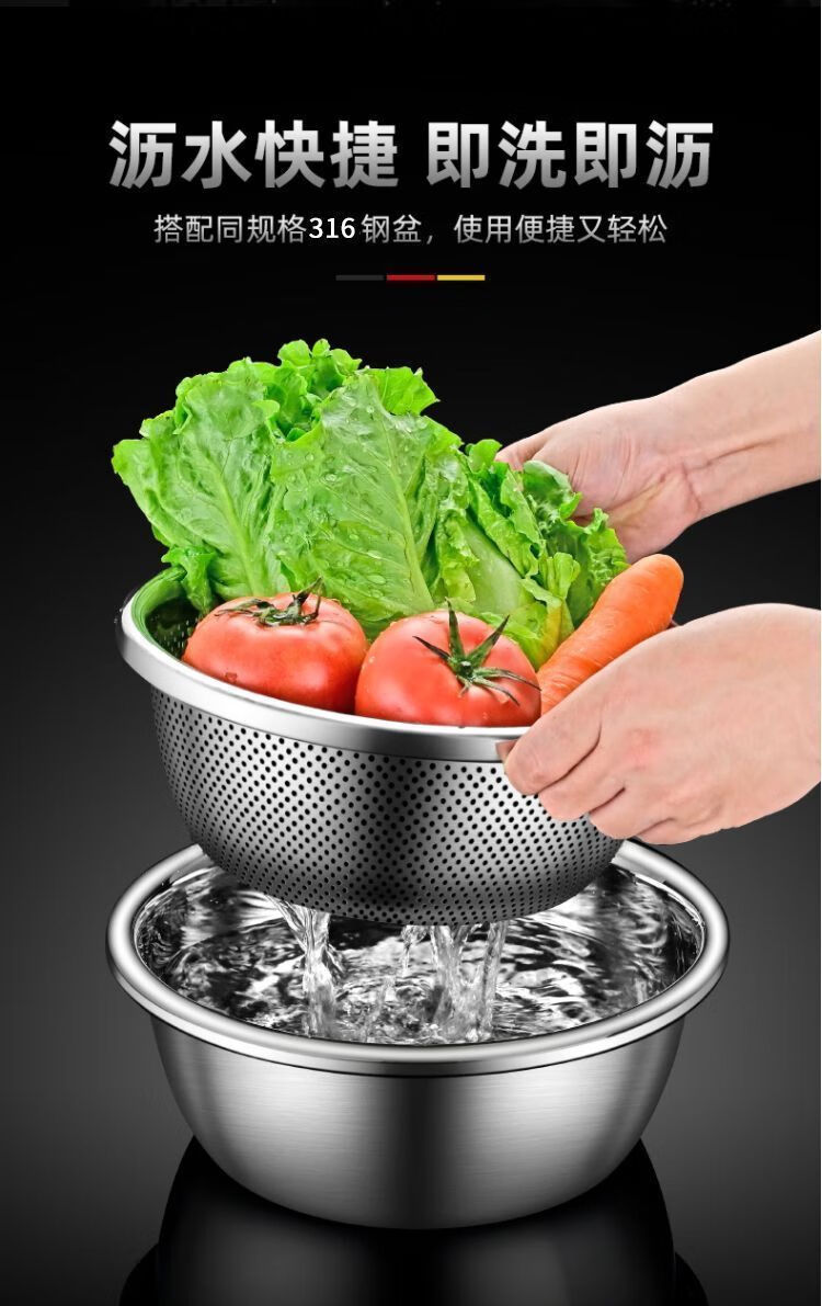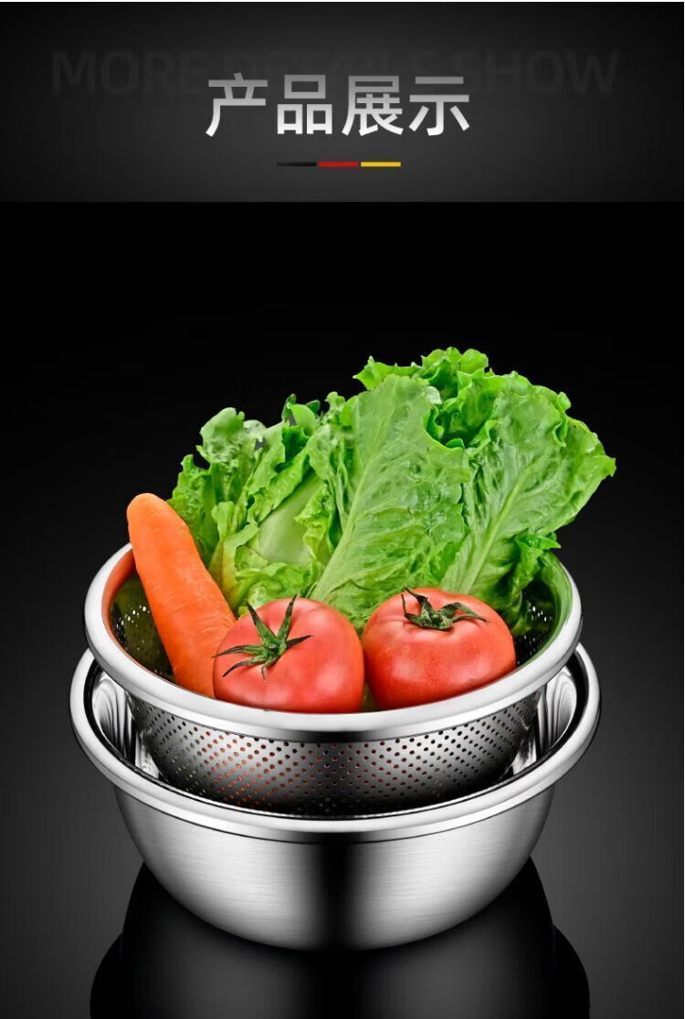 LZJV不锈钢沥水篮洗菜盆厨房家用洗水果洗菜篮淘米盆筛 实盆送漏盆 20cm加厚不锈钢