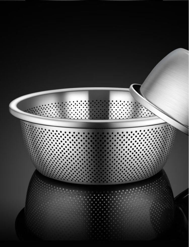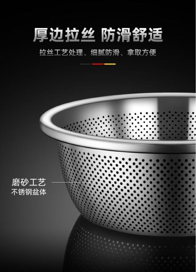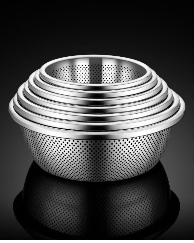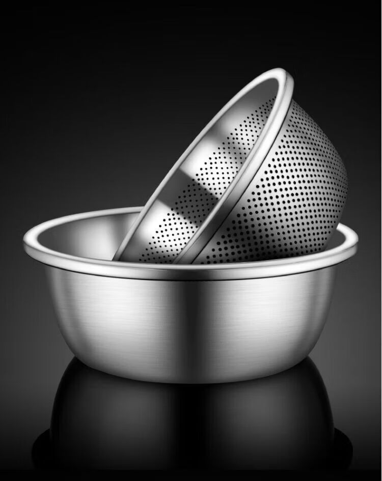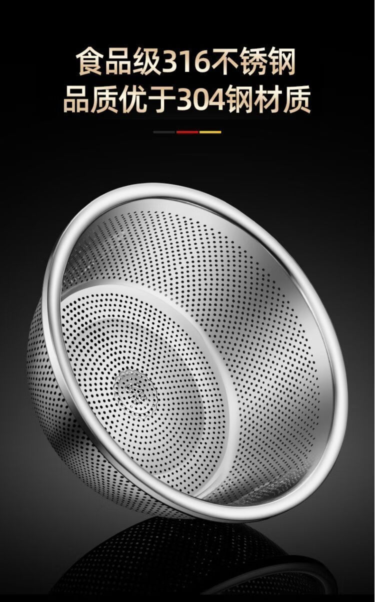LZJV不锈钢沥水篮洗菜盆厨房家用洗水果洗菜篮淘米盆筛 实盆送漏盆 20cm加厚不锈钢