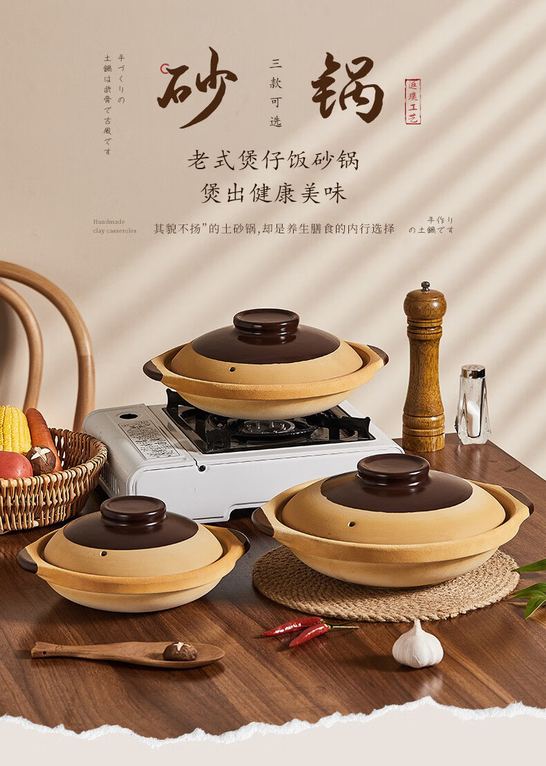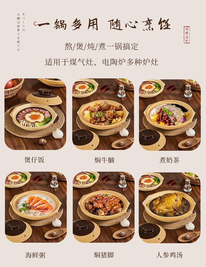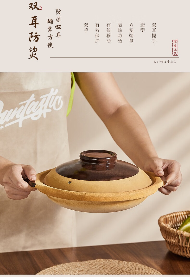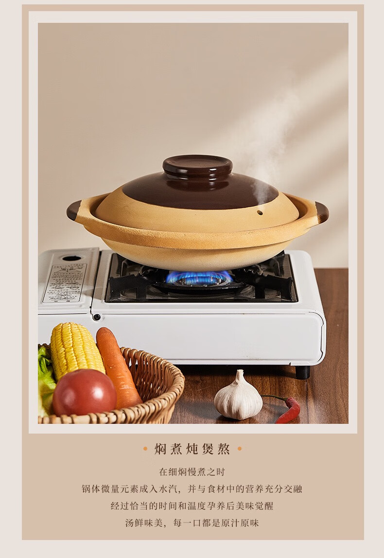 雅城荥窑正宗砂锅家用耐高温老式无釉平底燃气灶3-4人煲汤宽口煲仔饭沙锅 深煲丨古拙无釉 6人 3L