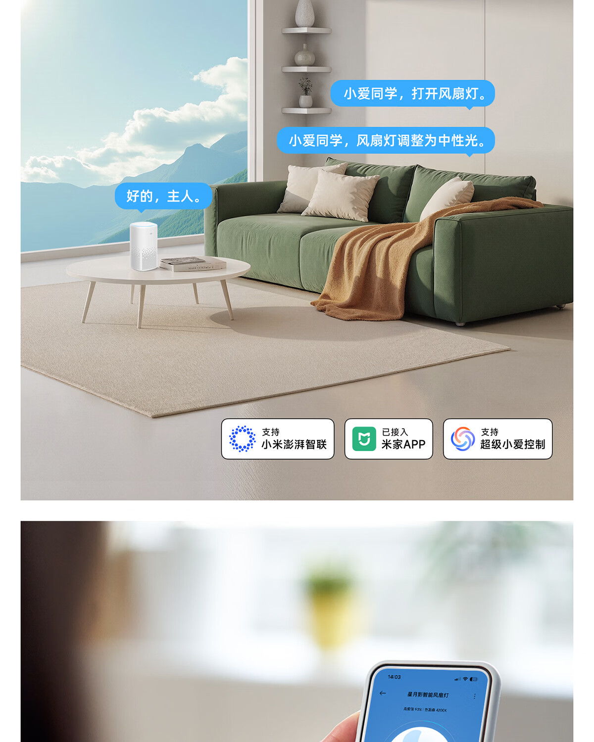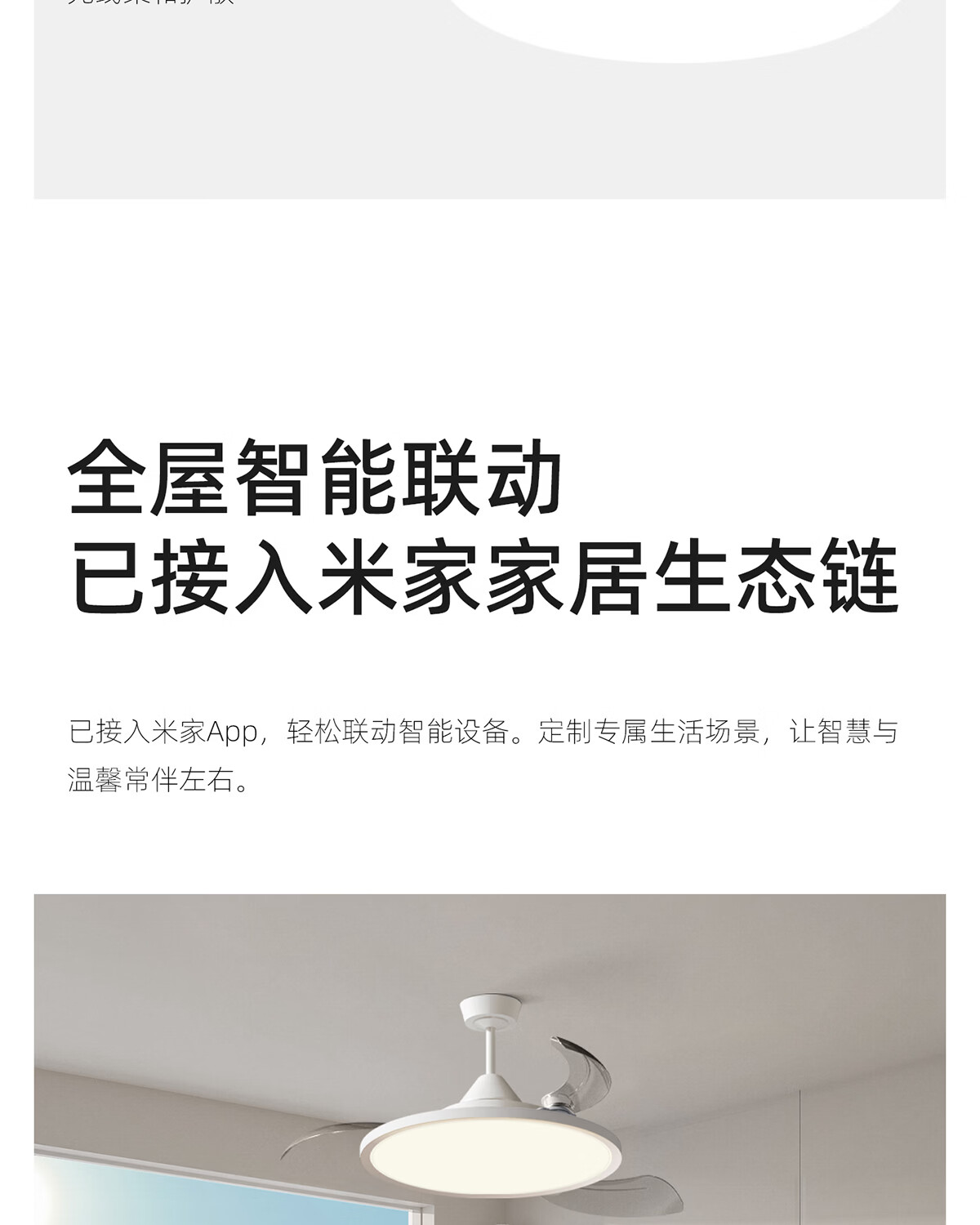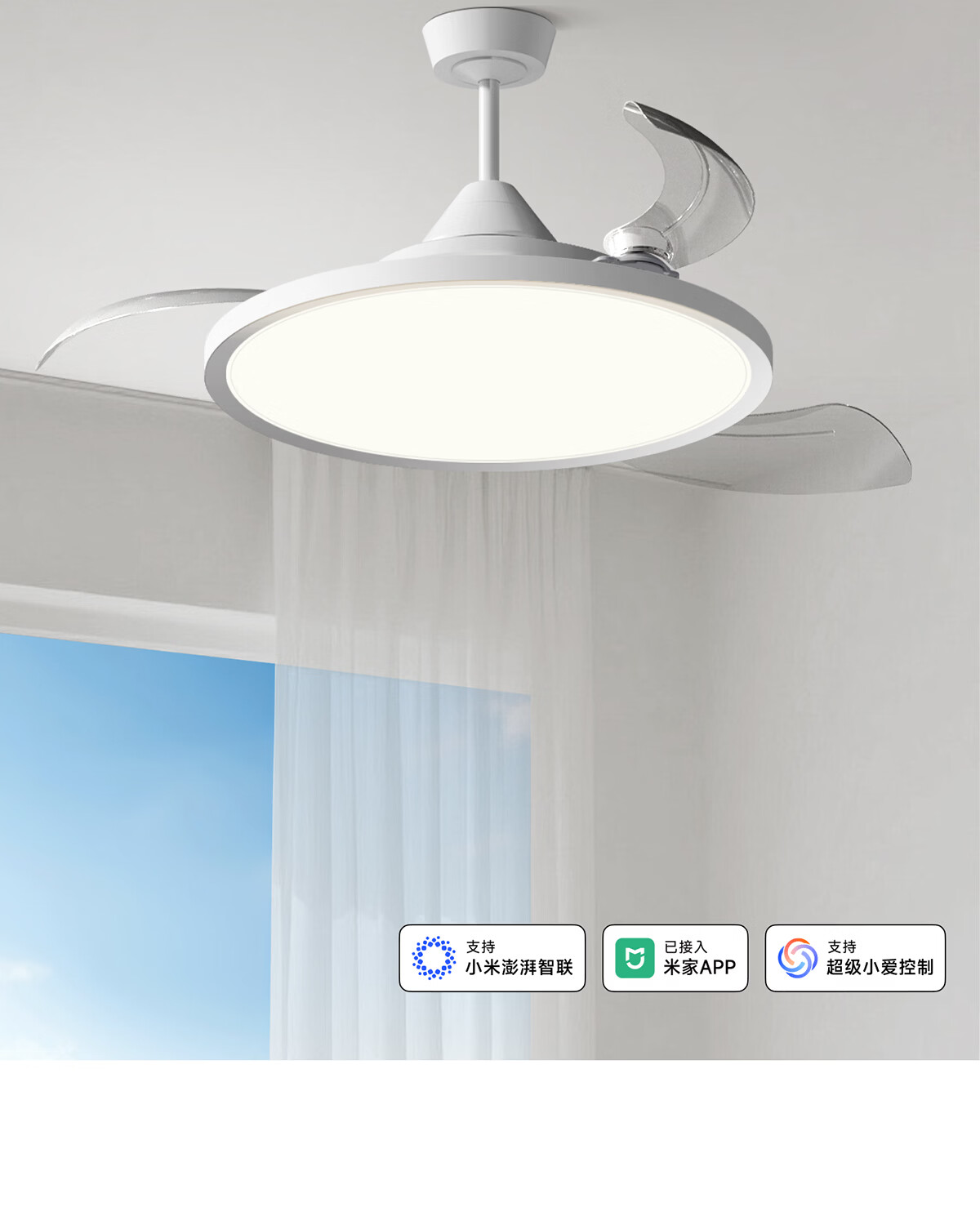 星月影Zen3超薄隐形风扇灯已接入米家APP现代简约护眼餐厅卧室吊扇灯 Zen3智能超薄隐形风扇灯42寸-哑白色【包安装】