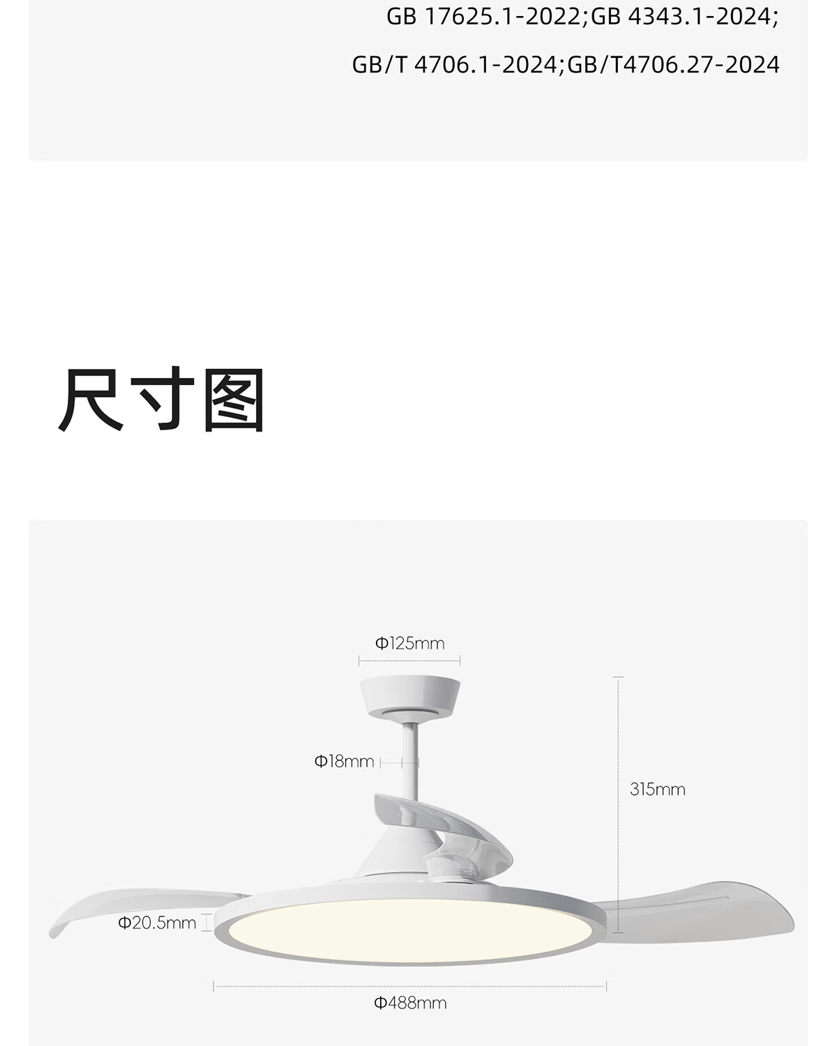 佑家儿童房间风扇灯小尺寸餐厅吊扇灯卧室阳台电扇灯 A款哑光白 18WLED单灯 变频六档