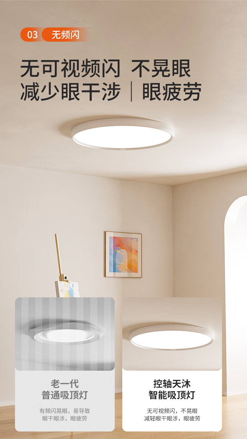 大满贯天沐灯全光谱控轴护眼灯卧室客厅吸顶灯米家智联超薄无缝不压层高 控轴吸顶灯-方120瓦