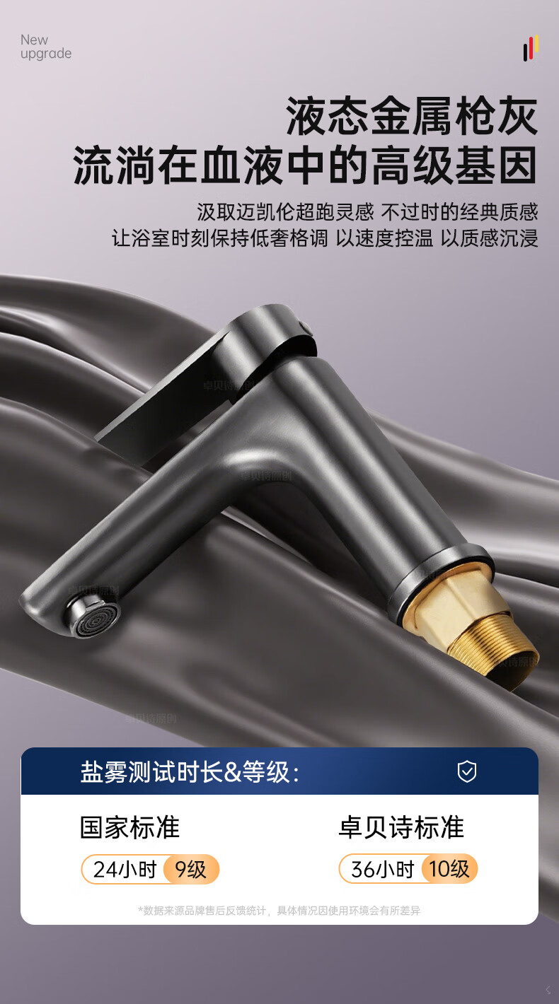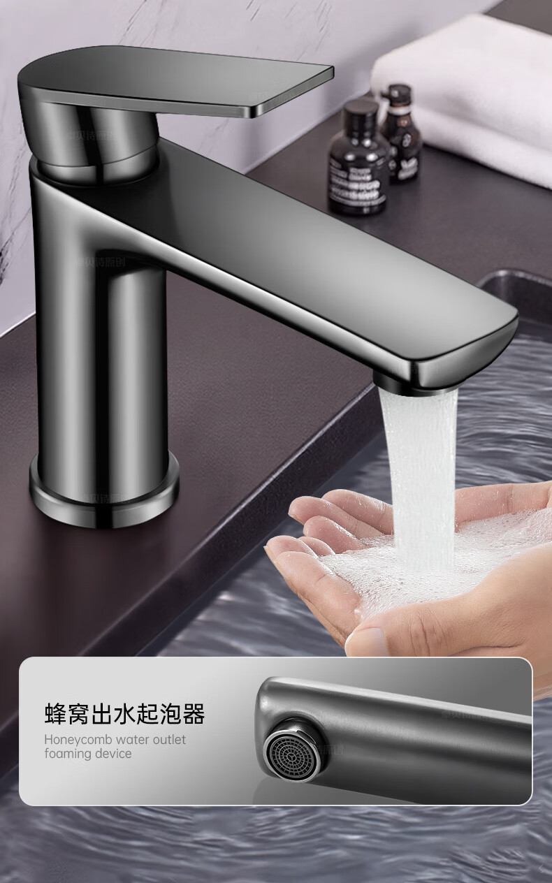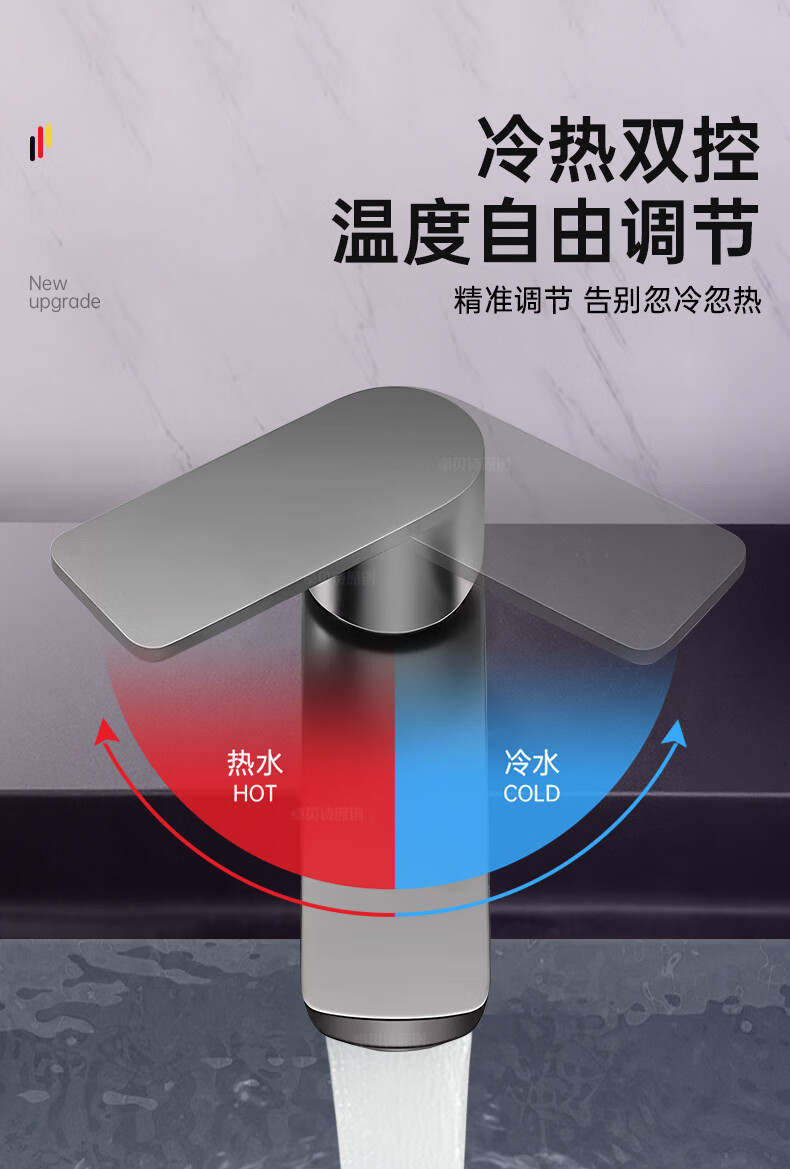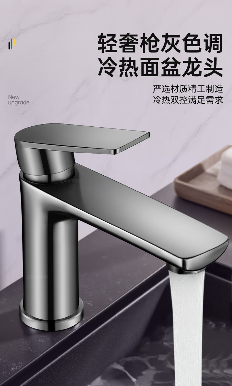 卓贝诗 德国面盆水龙头洗脸盆洗手池台盆卫生间洗漱台防溅单冷热水龙头 枪灰【加重精铜主体-细腻出水】 冷热款丨配80cm进水软管*2