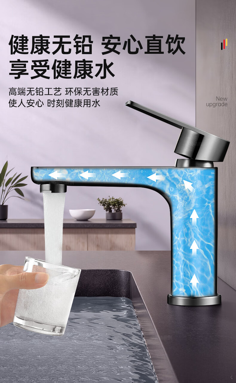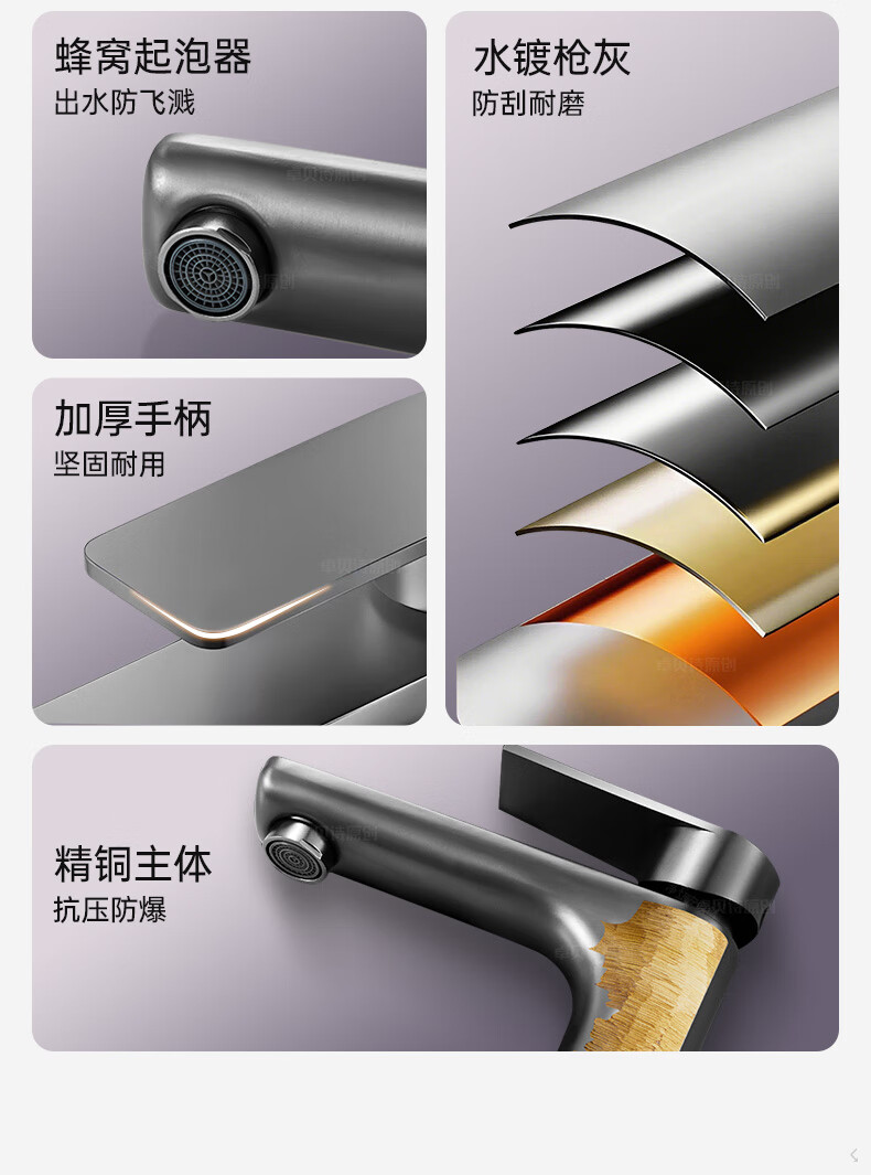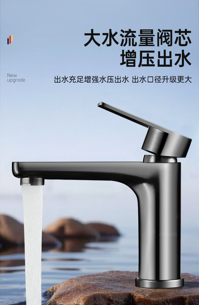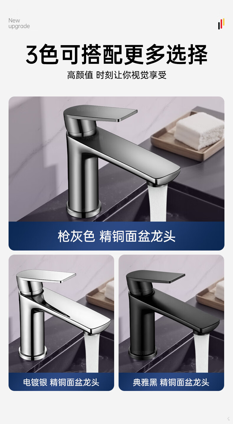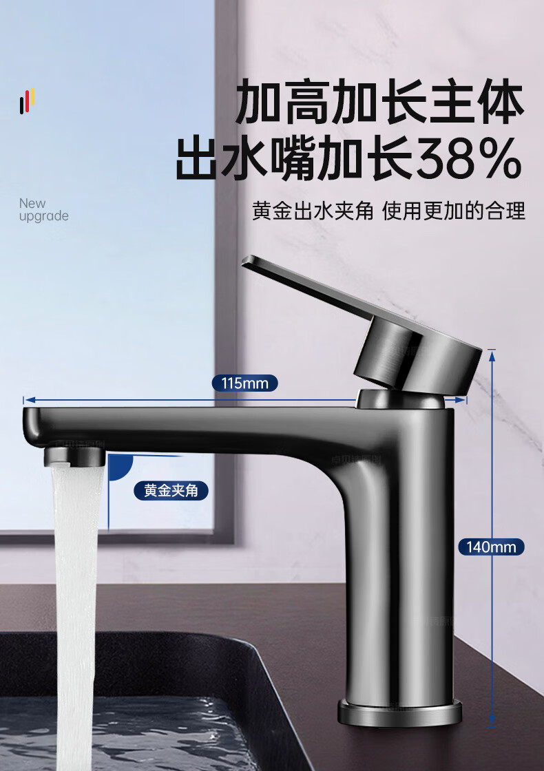 卓贝诗 德国面盆水龙头洗脸盆洗手池台盆卫生间洗漱台防溅单冷热水龙头 枪灰【加重精铜主体-细腻出水】 冷热款丨配80cm进水软管*2