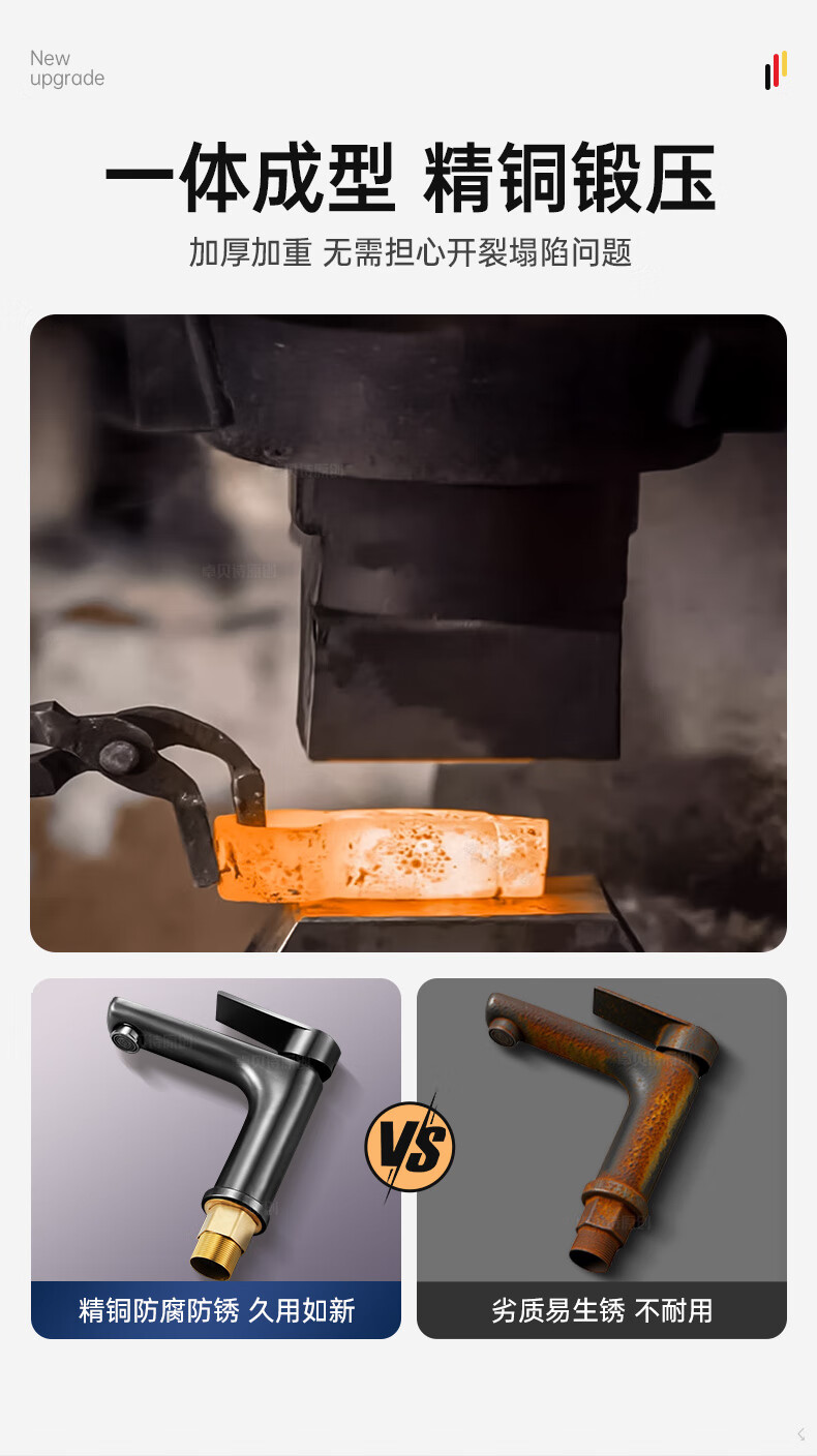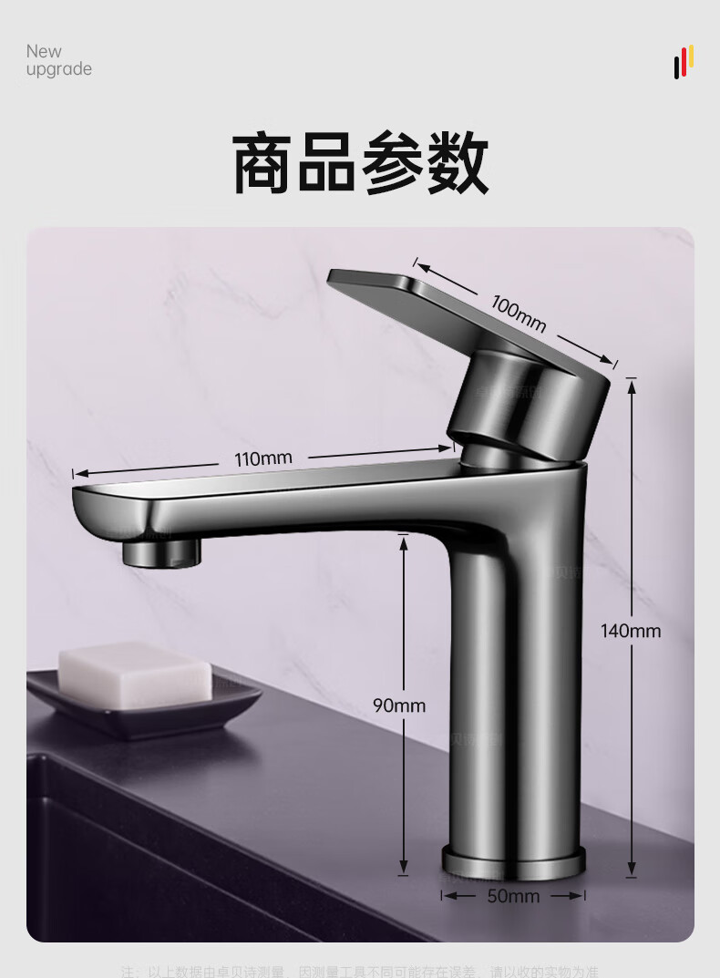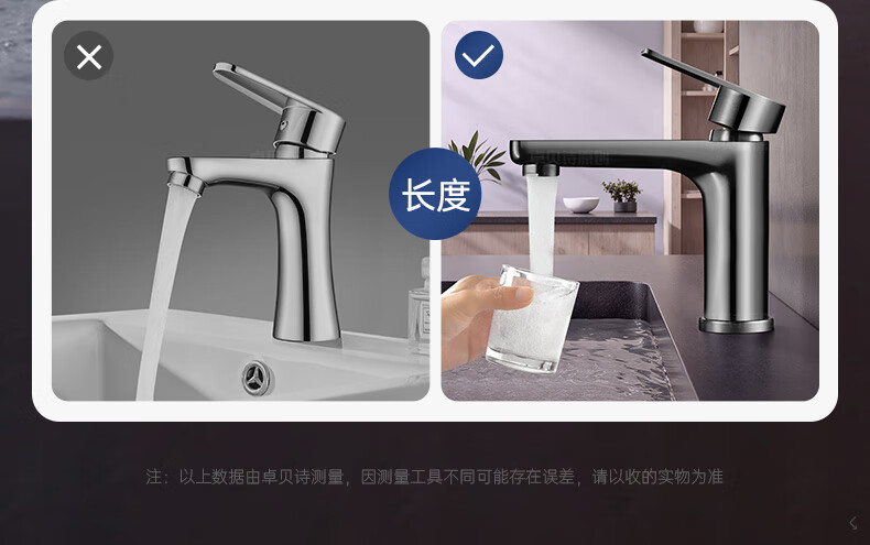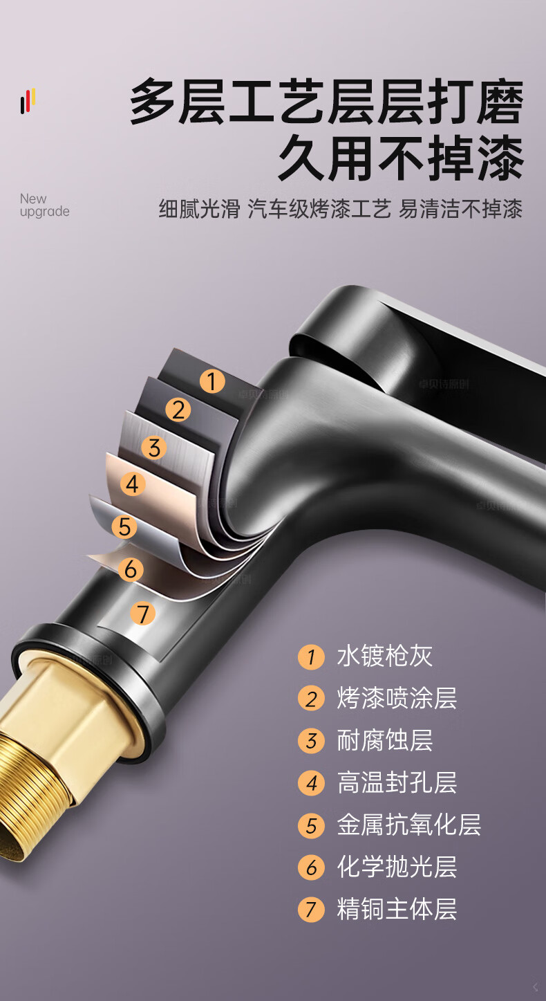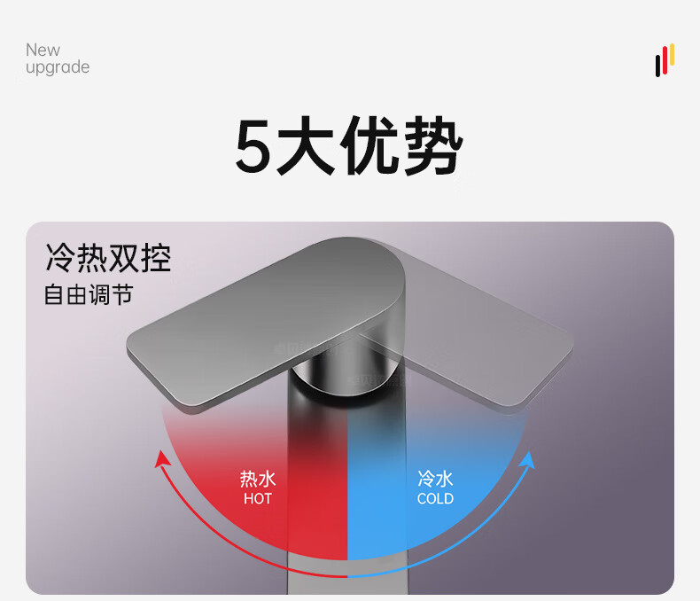 卓贝诗 德国面盆水龙头洗脸盆洗手池台盆卫生间洗漱台防溅单冷热水龙头 枪灰【加重精铜主体-细腻出水】 冷热款丨配80cm进水软管*2