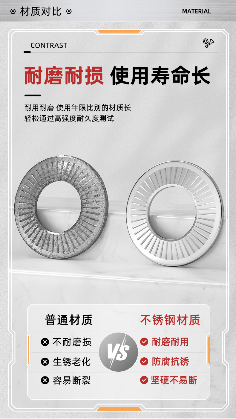 天卓五金锁紧垫片304不锈钢蝶形/鞍形单面防滑花齿垫圈防滑碟型M3M4M5M6M8 ---内径*外径*厚度 单位毫米---