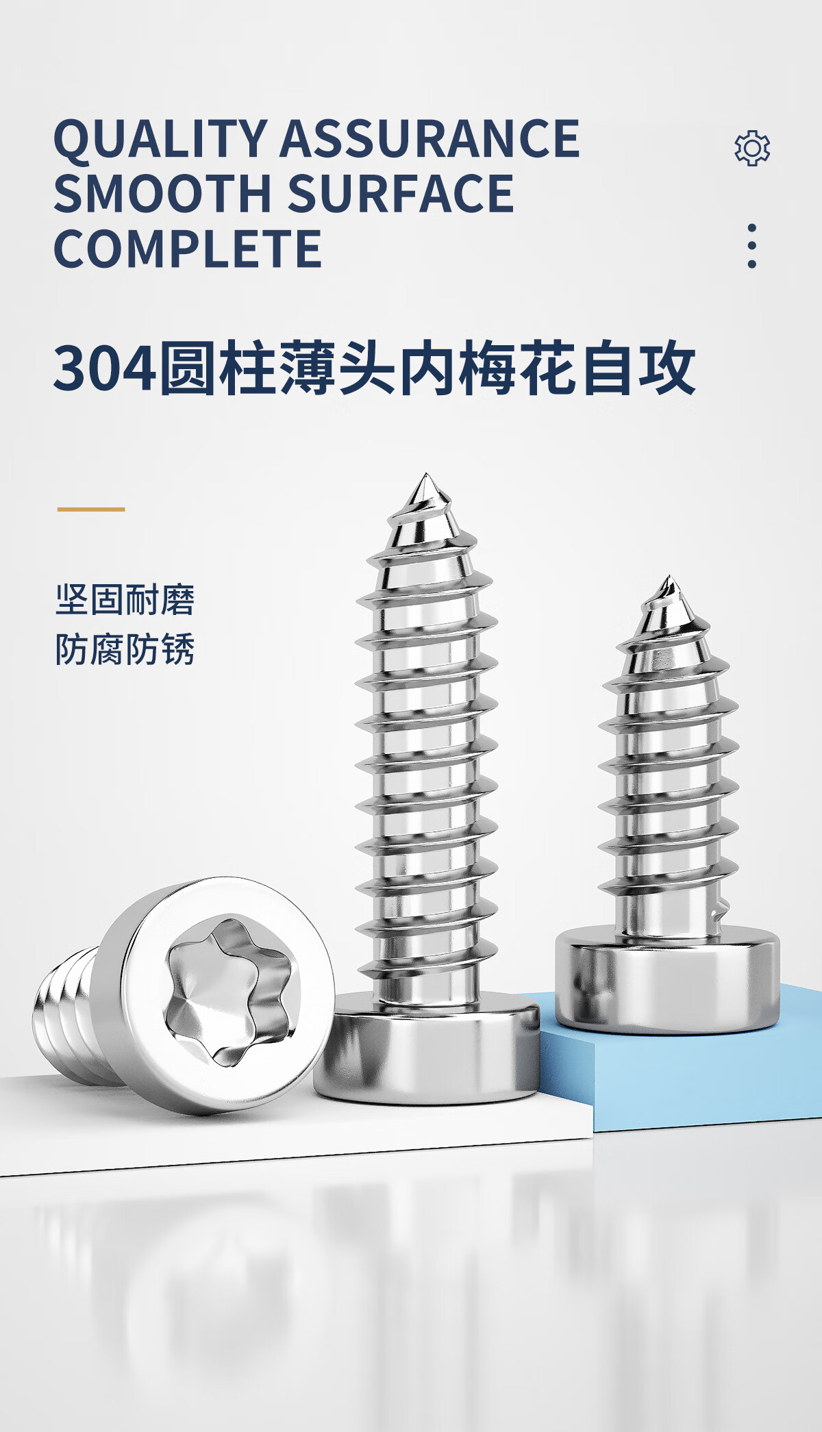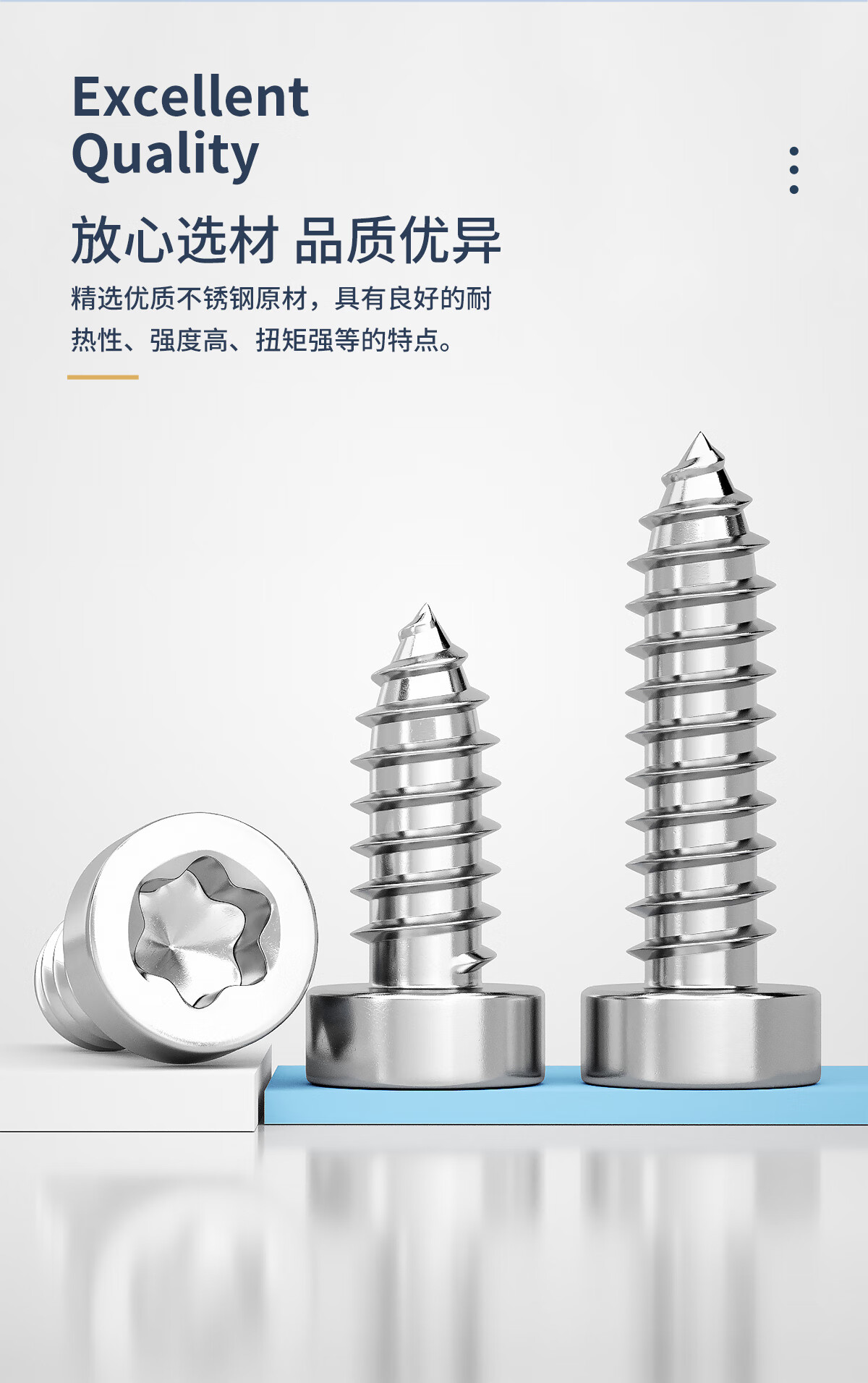 固万基(GUWANJI)304不锈钢薄圆柱头内梅花杯头自攻尖尾螺丝ST2M2.3M2.6M3M4M5M6mm M2x5[200只]