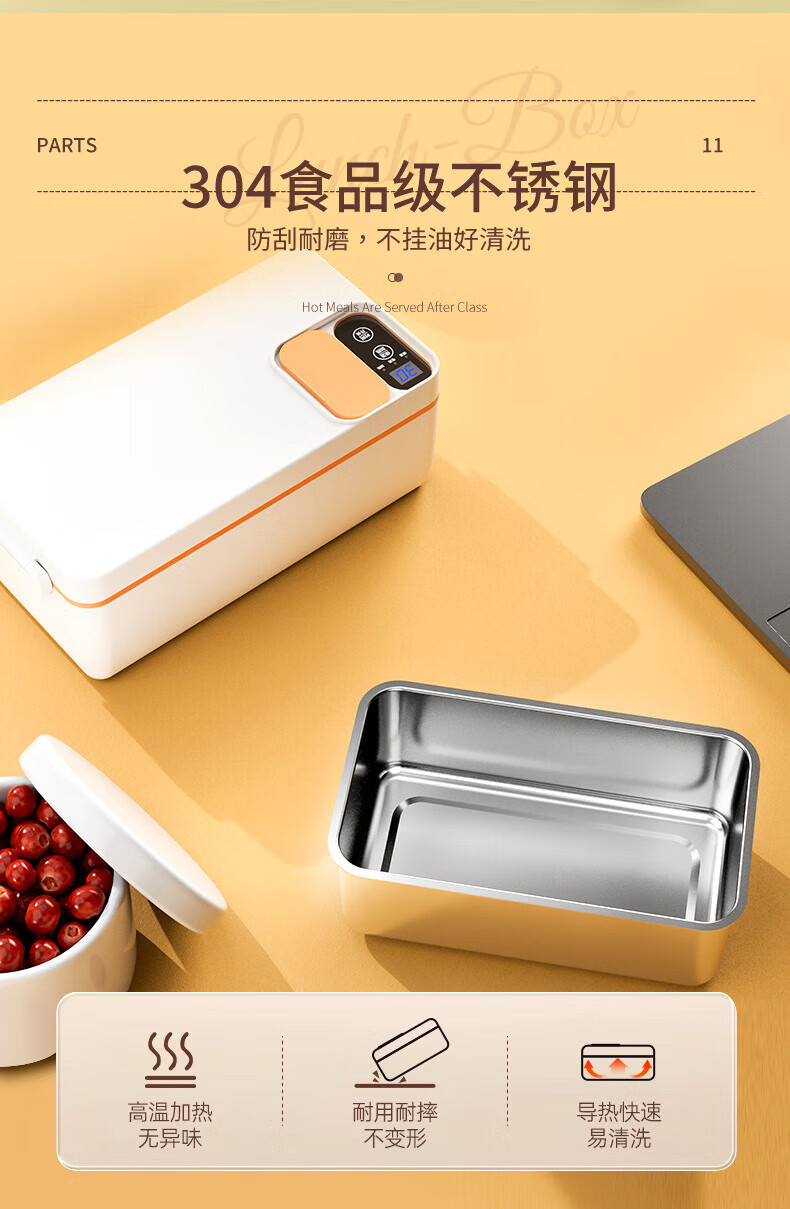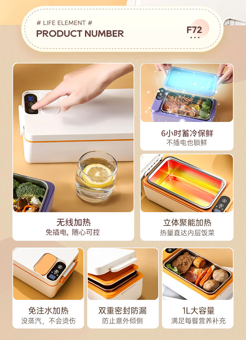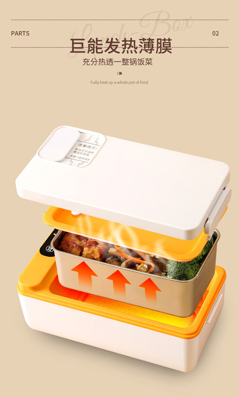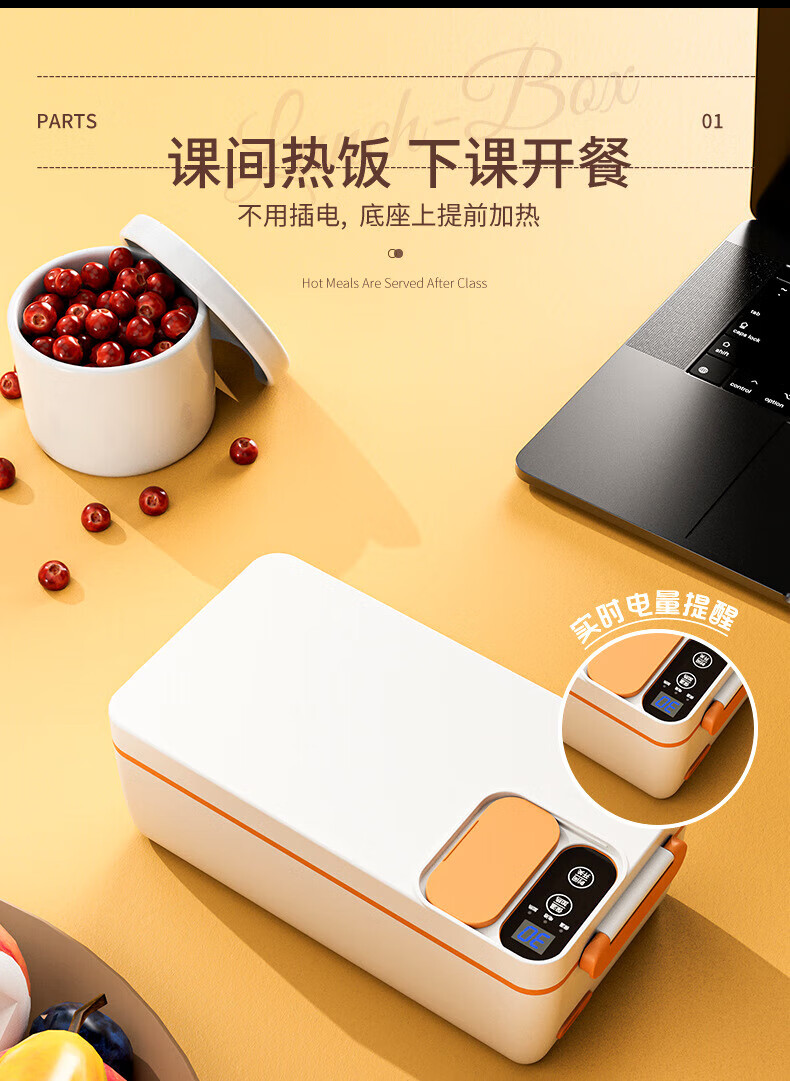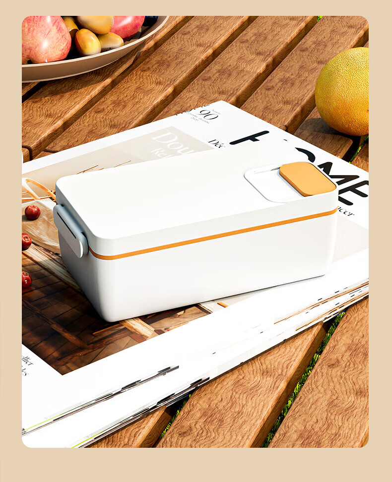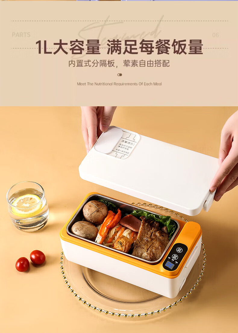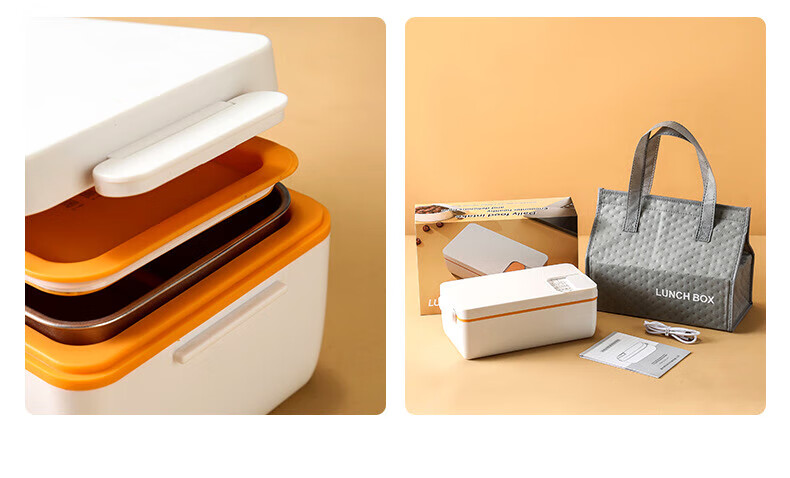 WFFPM德国品牌充电学生大容量电热保温饭盒304内胆家用上班族热饭热菜 白橙色 单层 1000ml 245×90×124mm