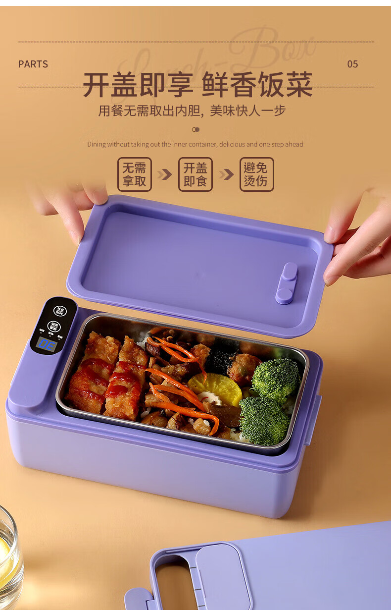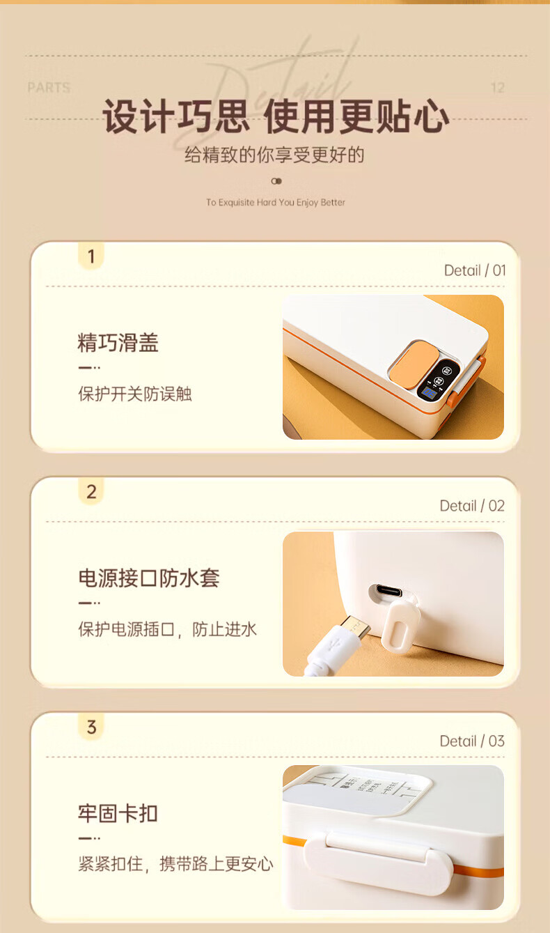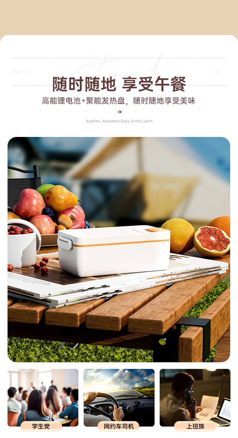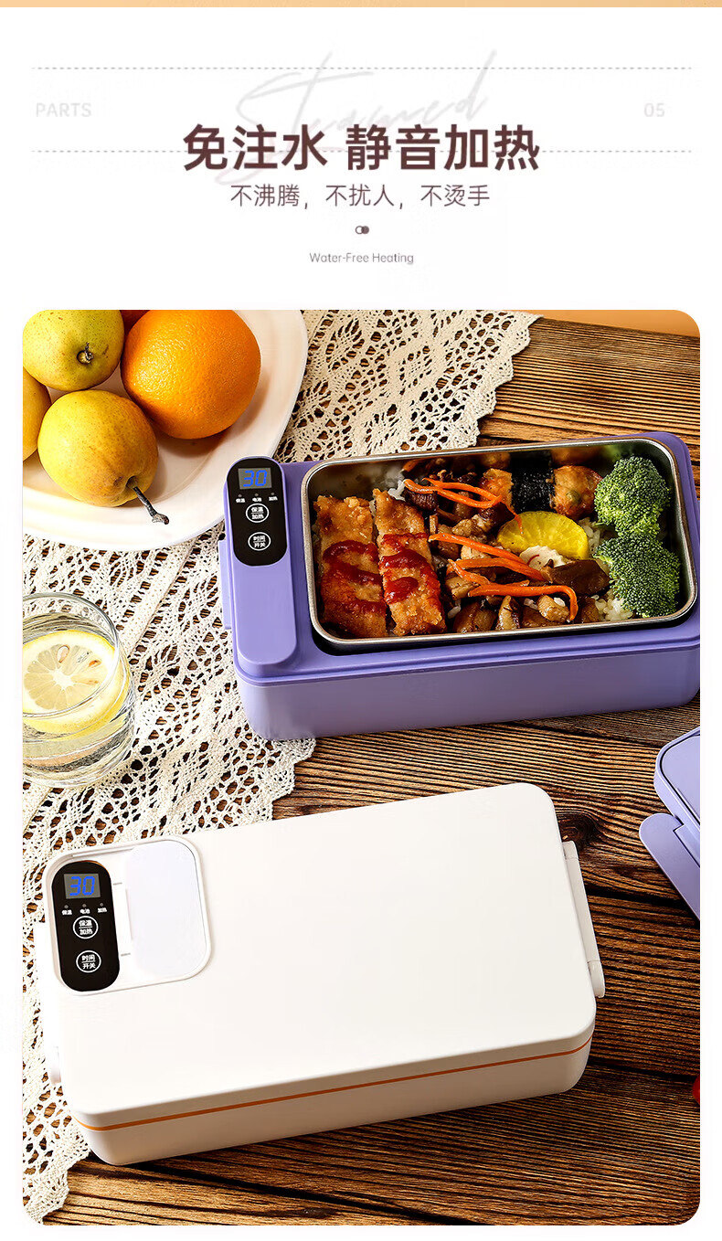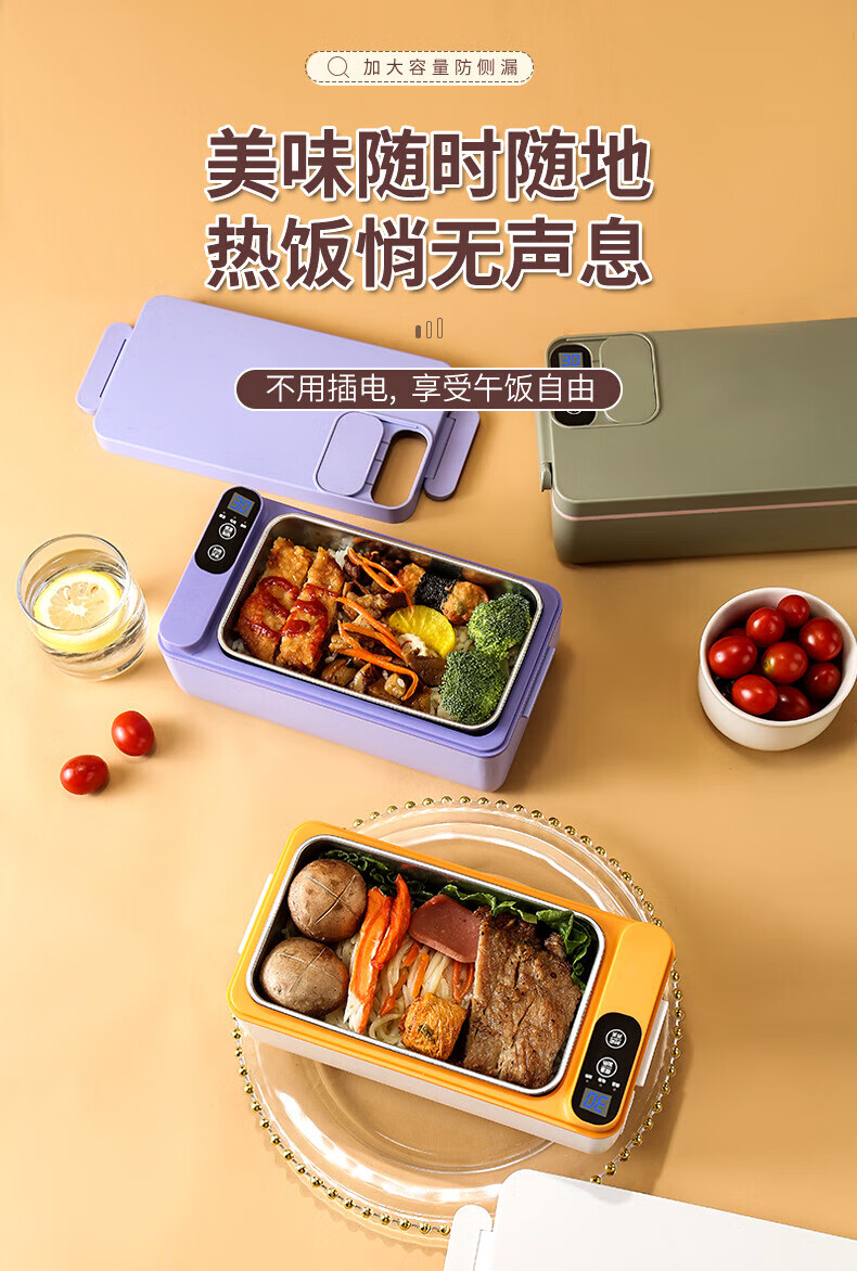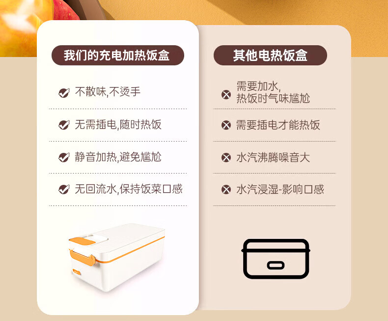 WFFPM德国品牌充电学生大容量电热保温饭盒304内胆家用上班族热饭热菜 白橙色 单层 1000ml 245×90×124mm