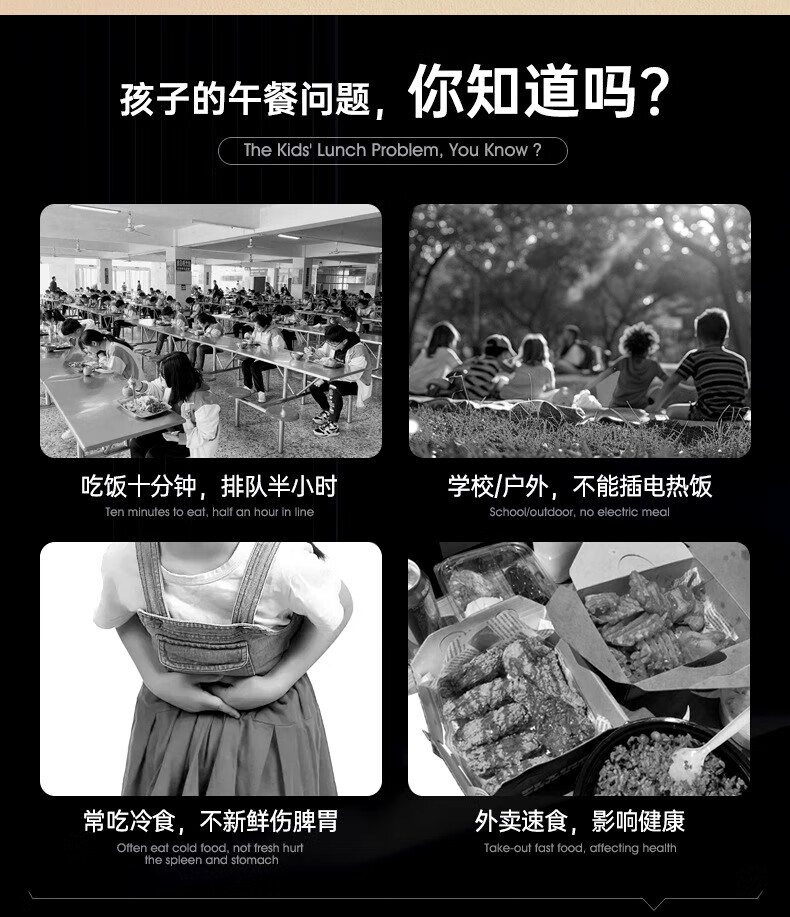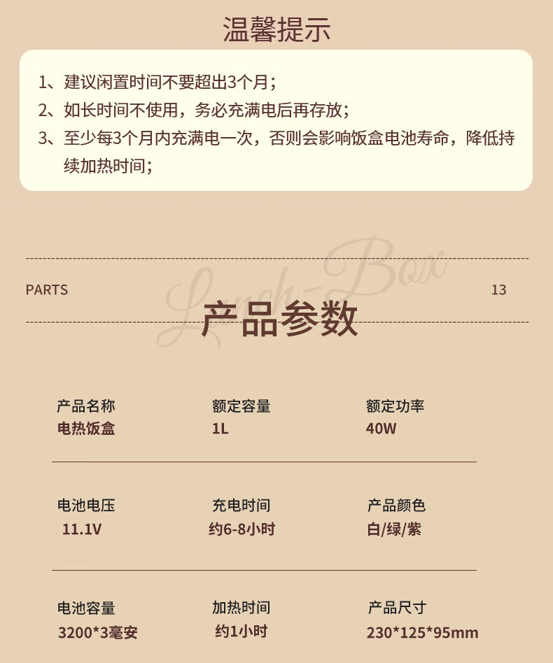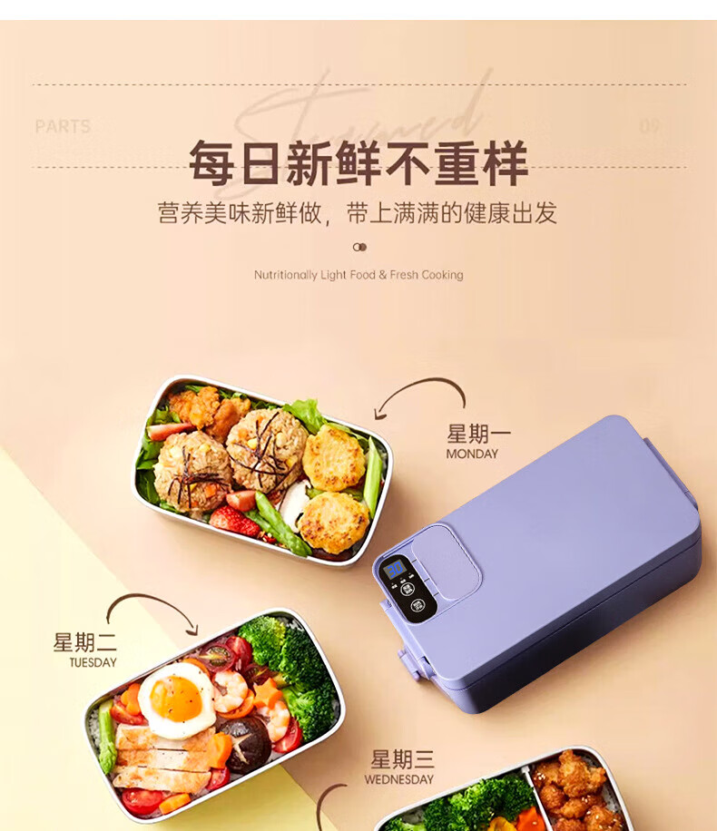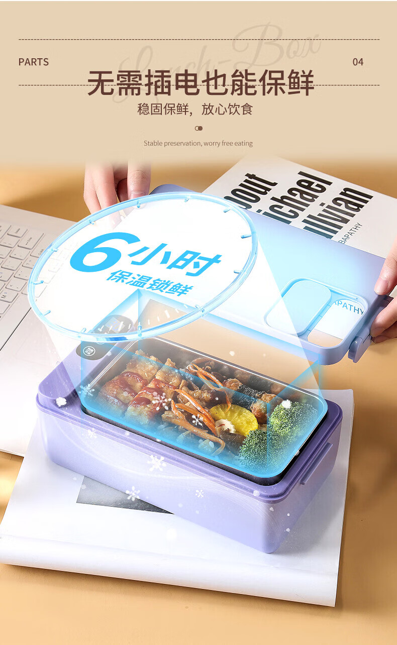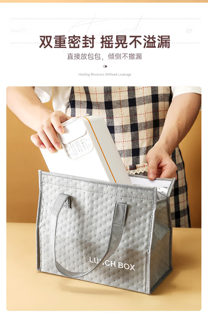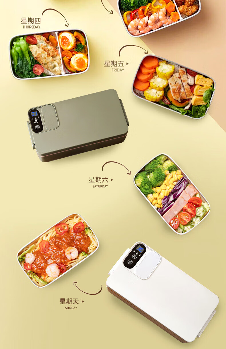 WFFPM德国品牌充电学生大容量电热保温饭盒304内胆家用上班族热饭热菜 白橙色 单层 1000ml 245×90×124mm