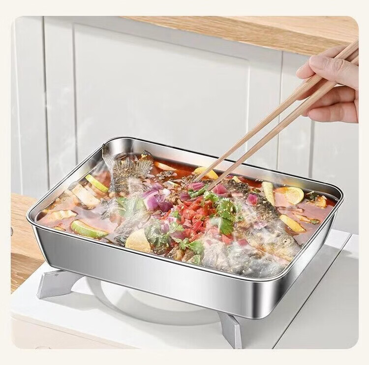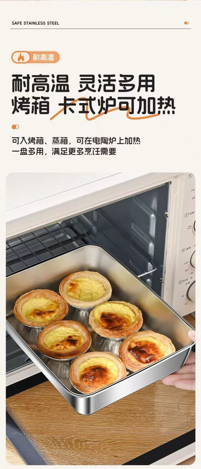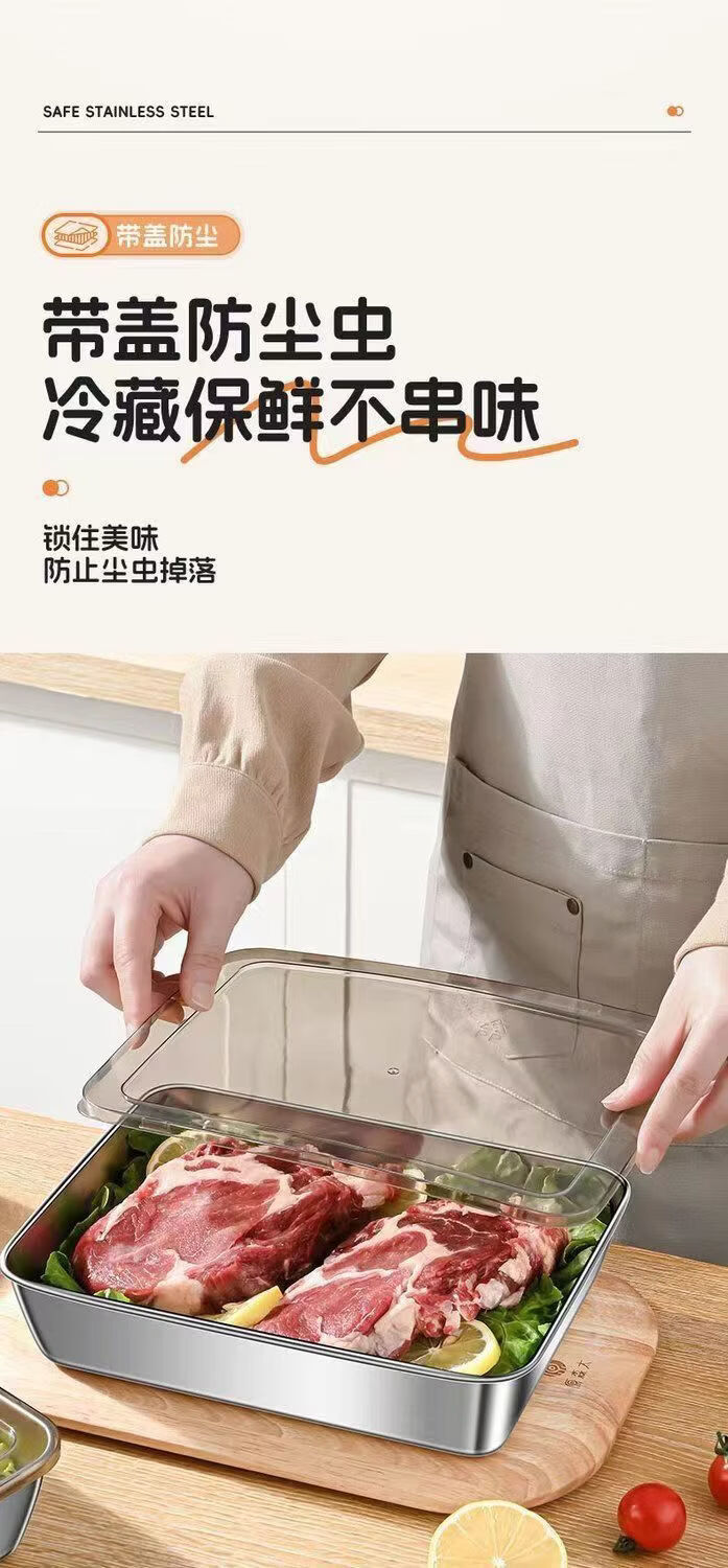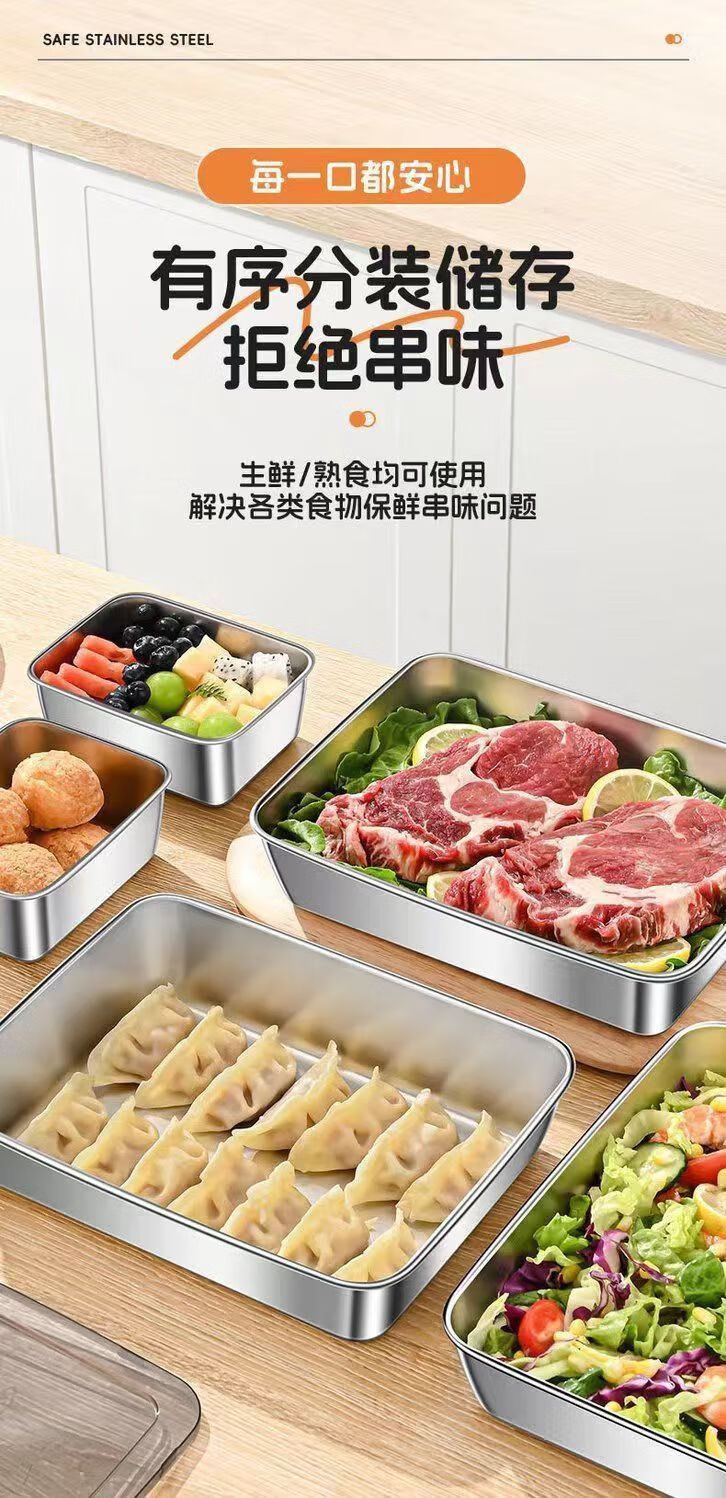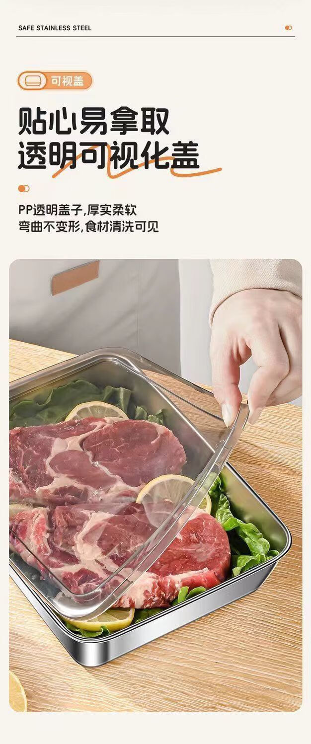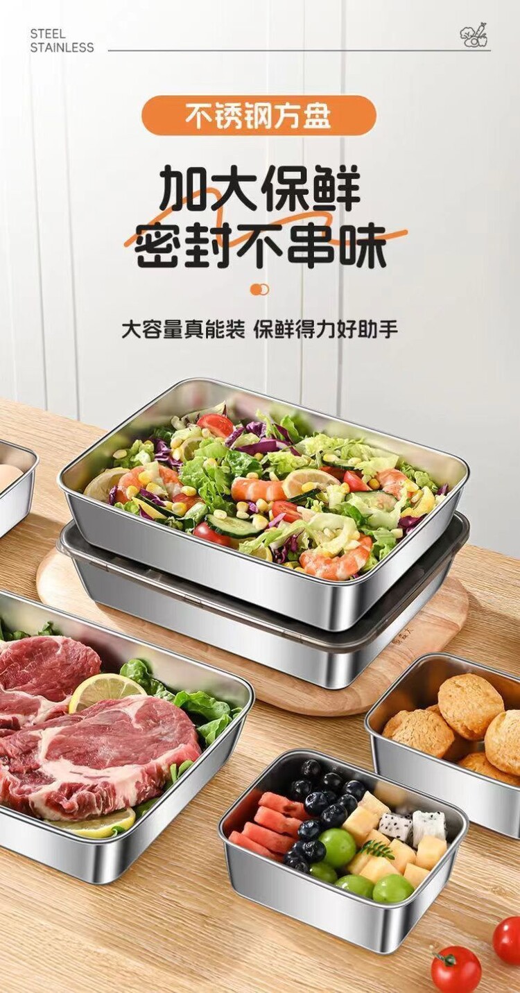简漾可叠放不锈钢备菜盘火锅菜盘托盘料理盘子保鲜盒分格餐具 尺寸25*20*4.9【送可视盖】一套装 清仓福利