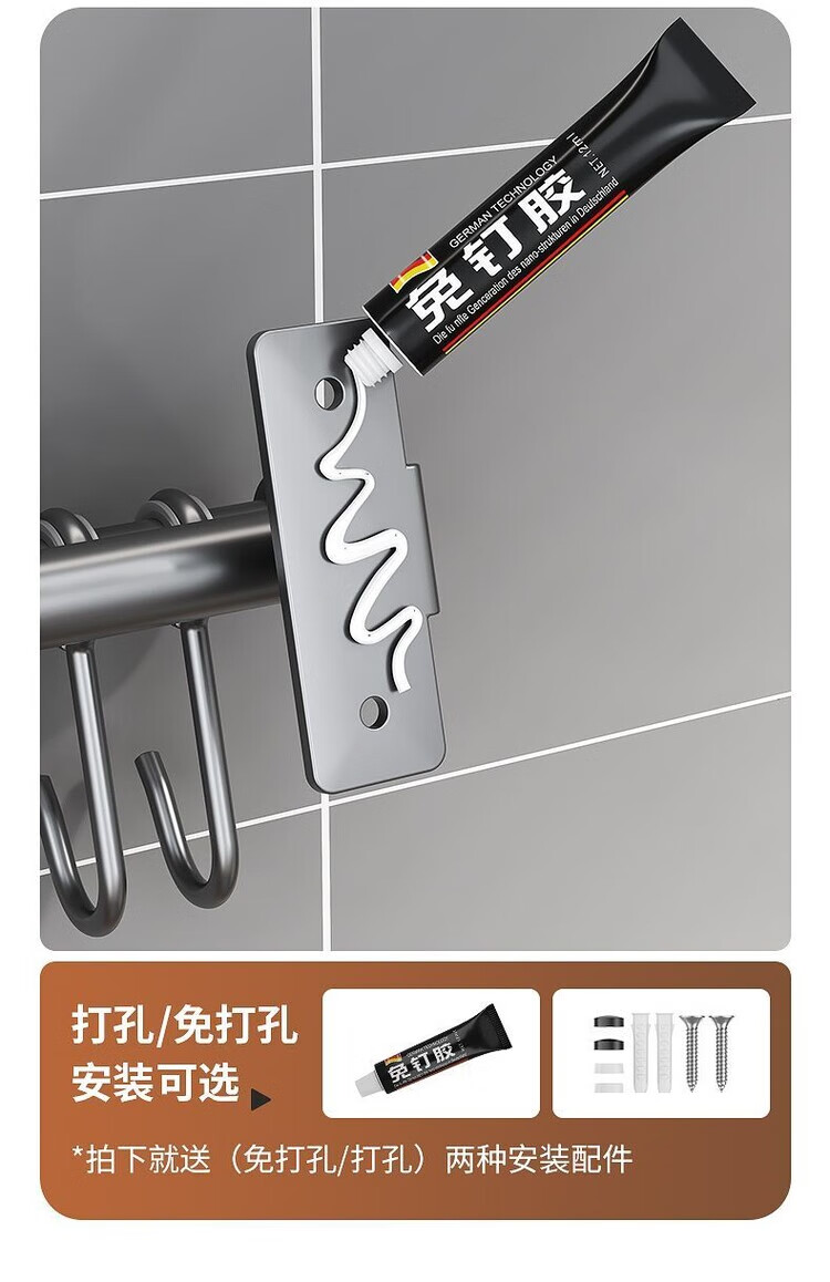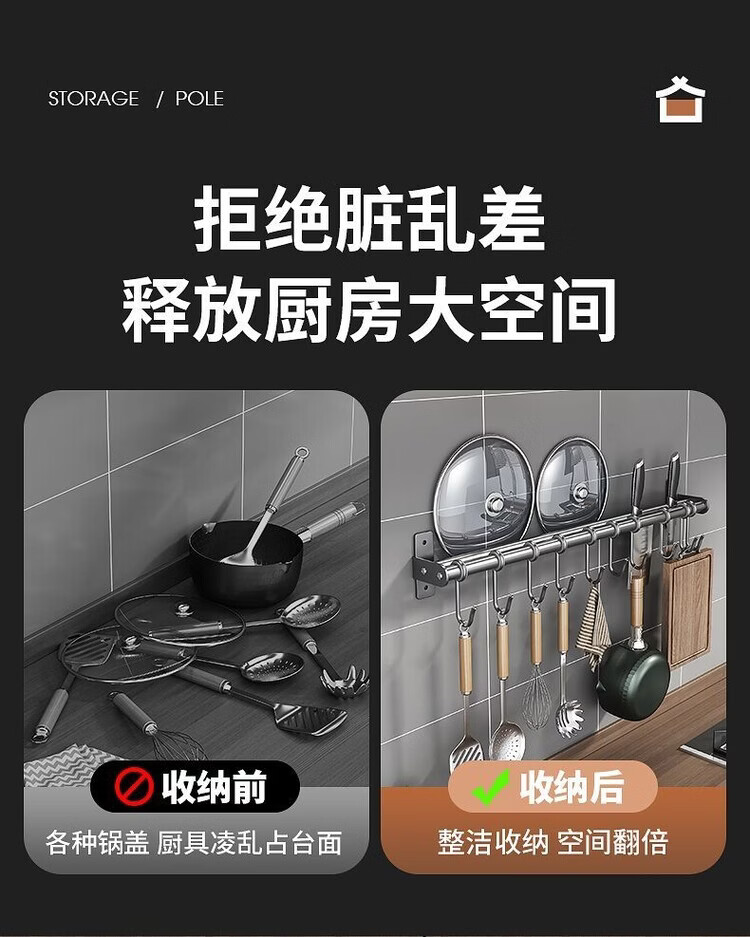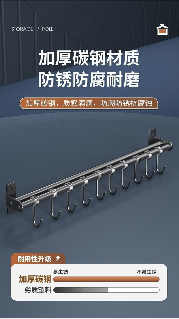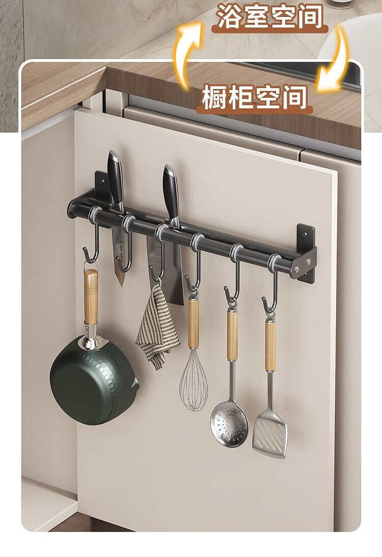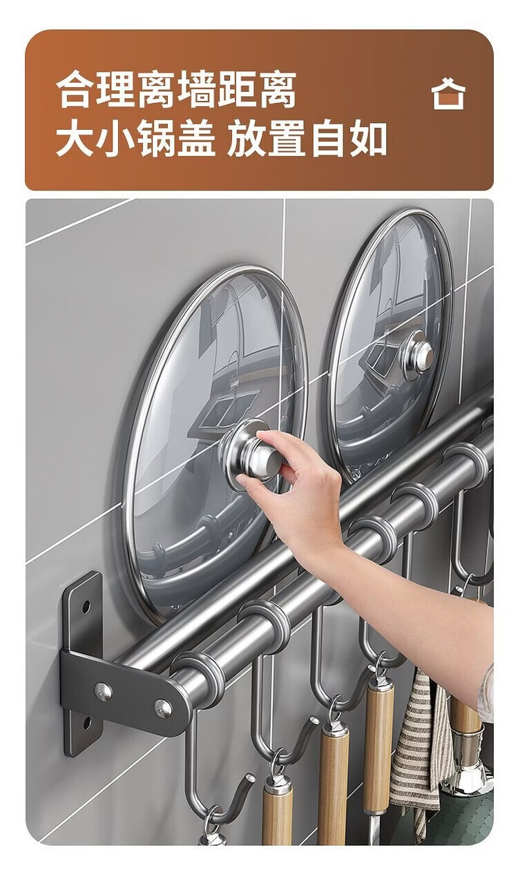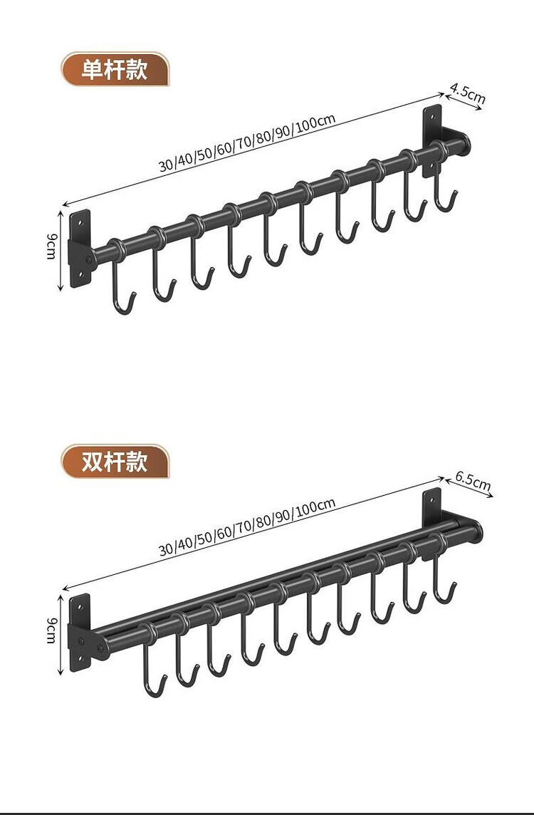 简漾厨房不锈钢多功能壁挂置物架免打孔挂钩挂架挂杆锅盖锅铲收纳刀架 亮光单杆【不可插刀】 30cm带4钩