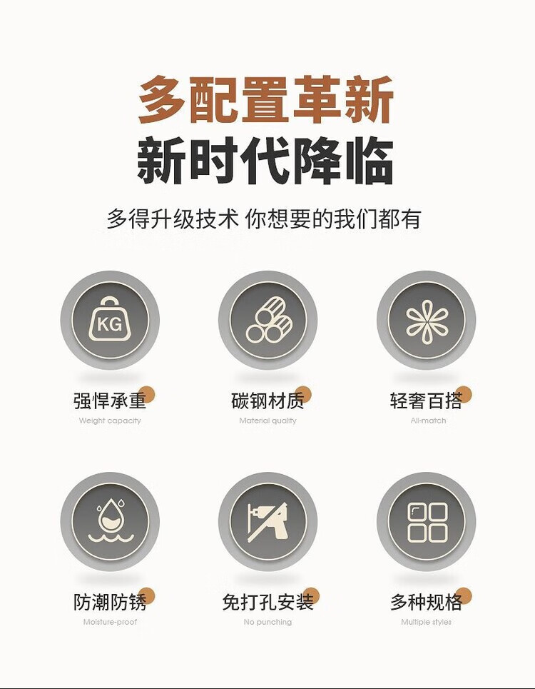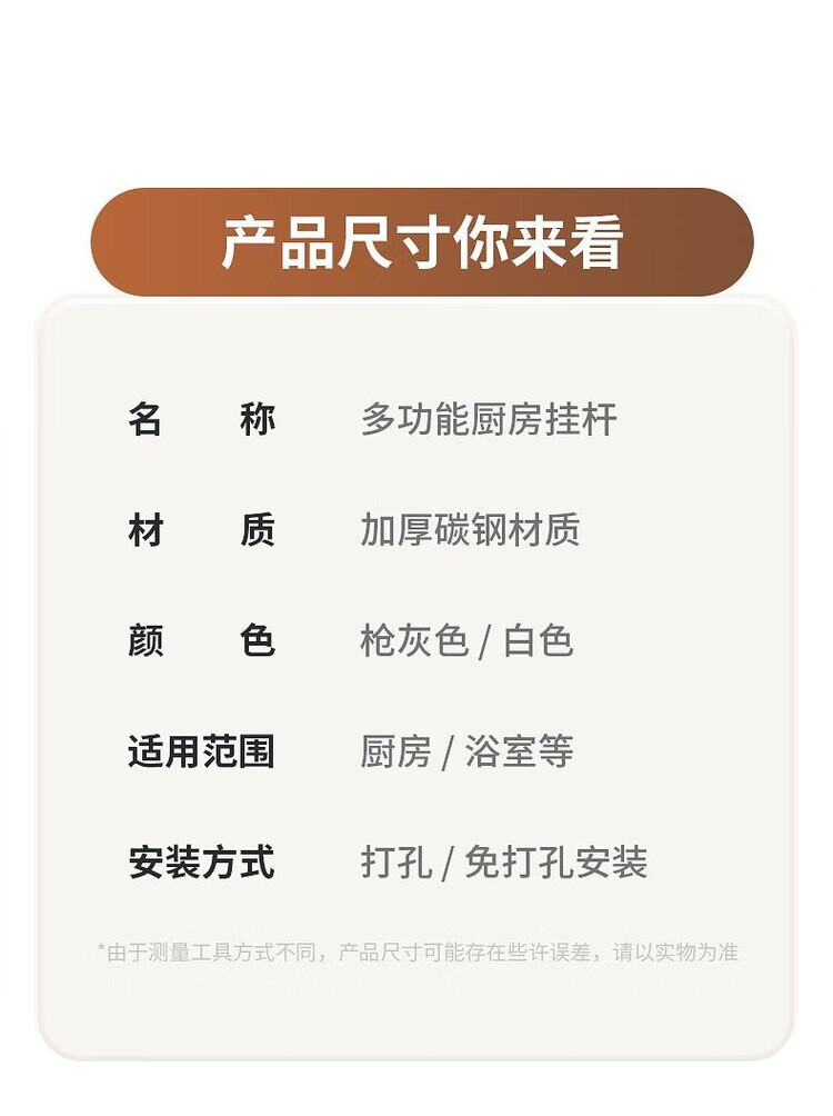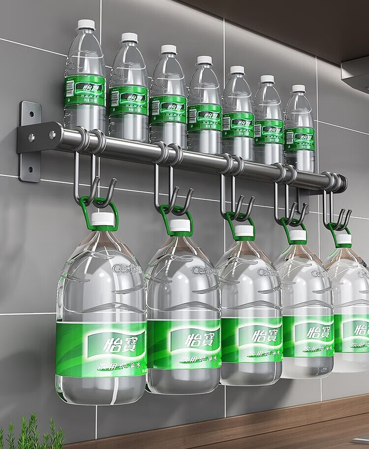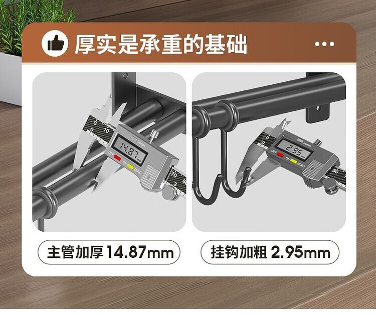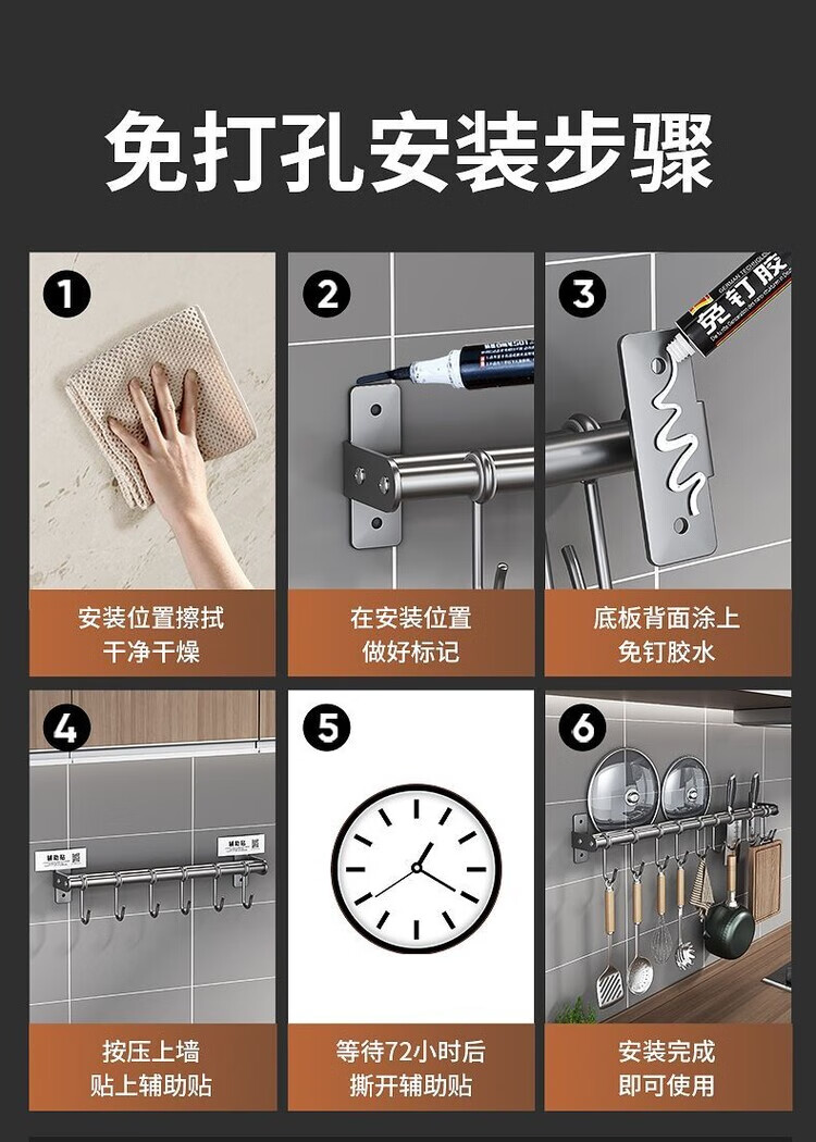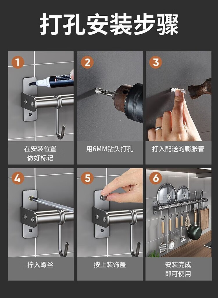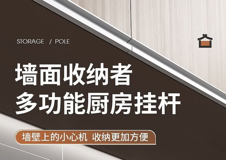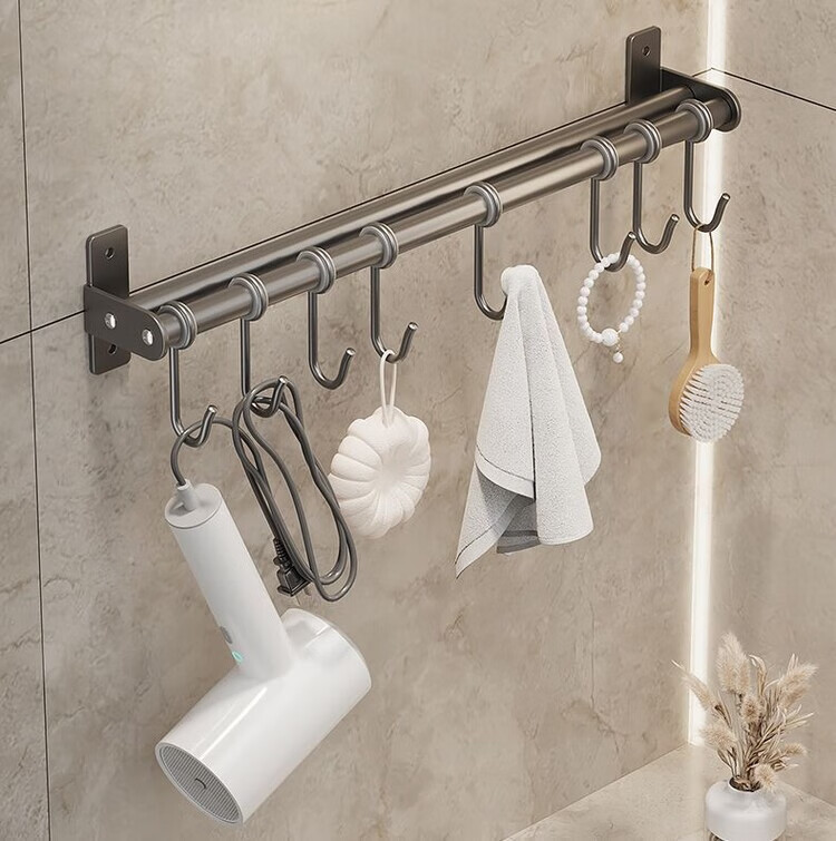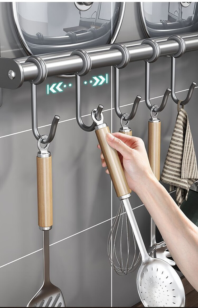 简漾厨房不锈钢多功能壁挂置物架免打孔挂钩挂架挂杆锅盖锅铲收纳刀架 亮光单杆【不可插刀】 30cm带4钩