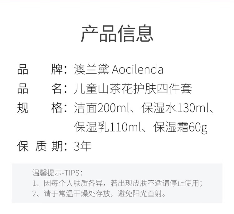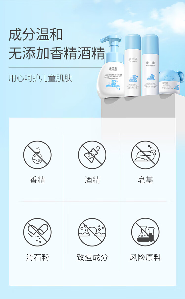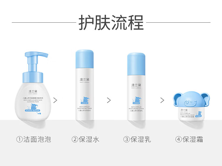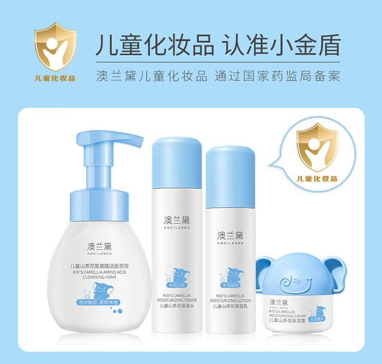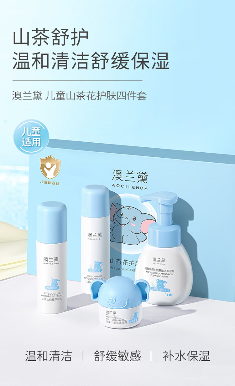 澳兰黛山茶花系列儿童护肤品套装洗面奶保湿水乳面霜男女孩四件套