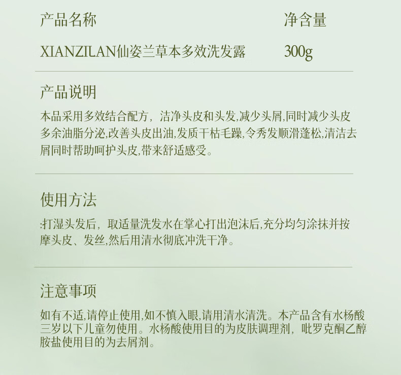 仙姿兰洗发水草本多效冼发露净爽去屑控油蓬松柔顺亮泽正品保障 1瓶装
