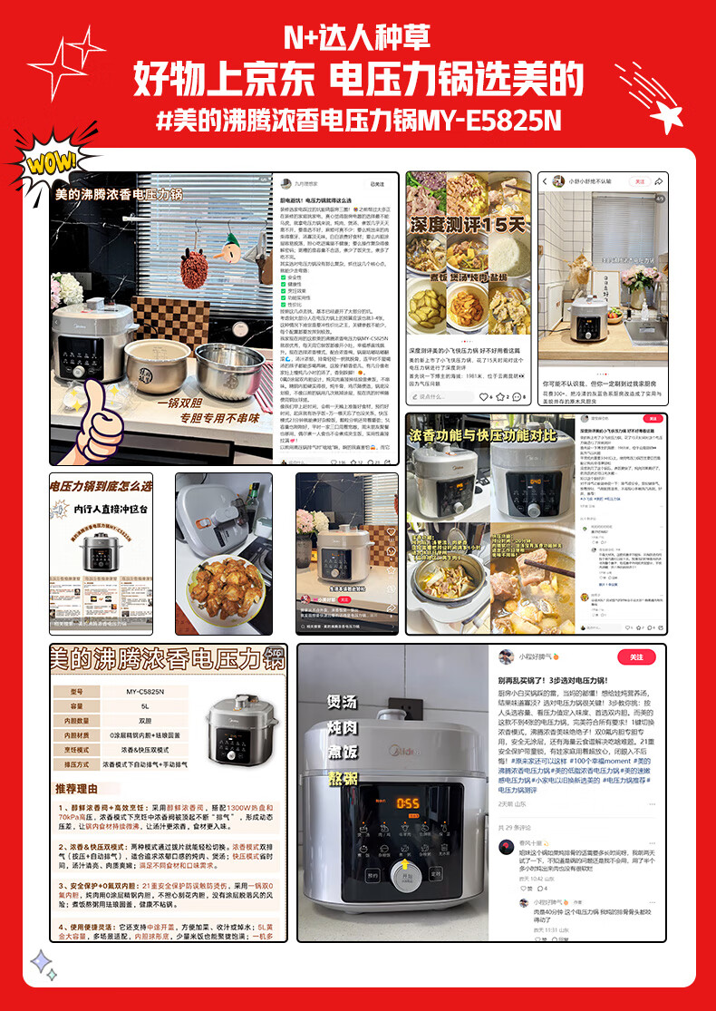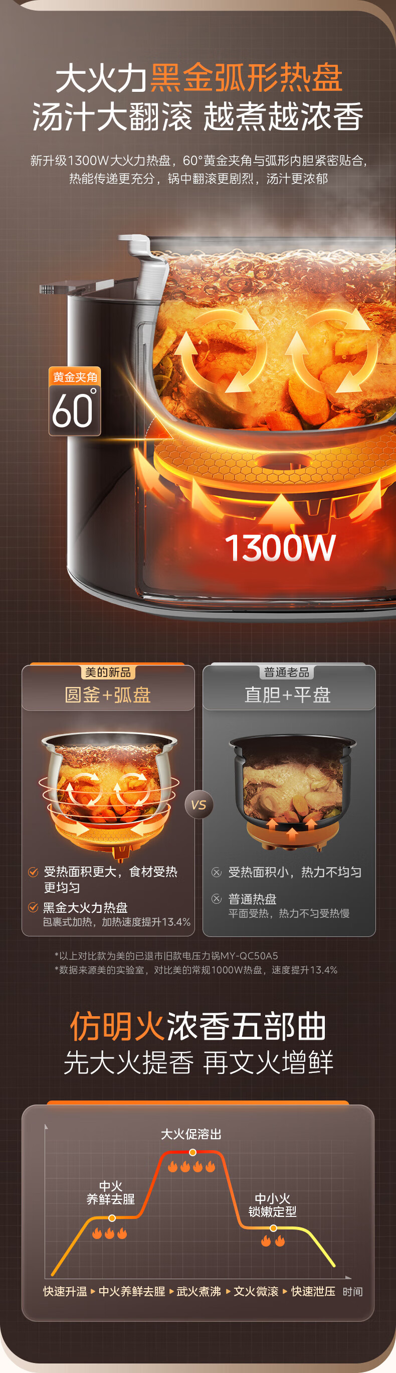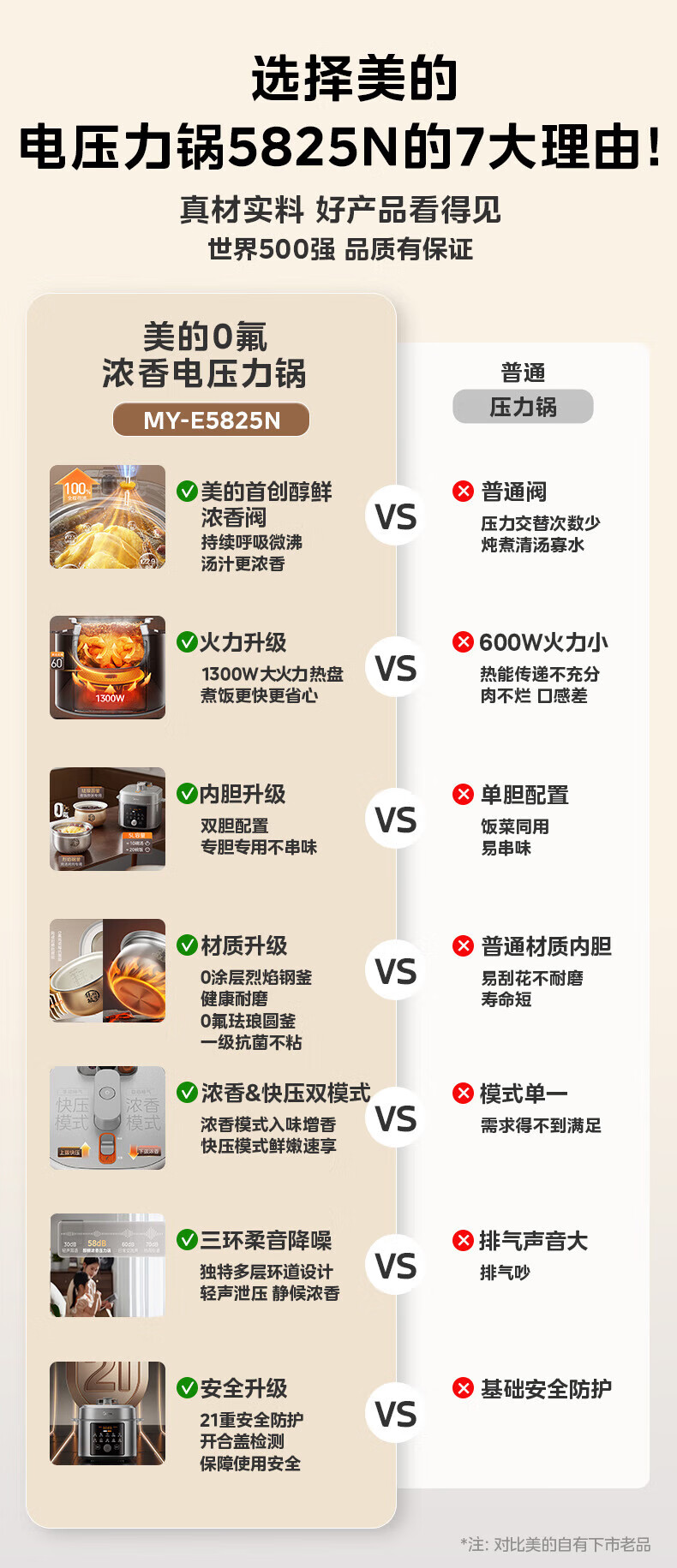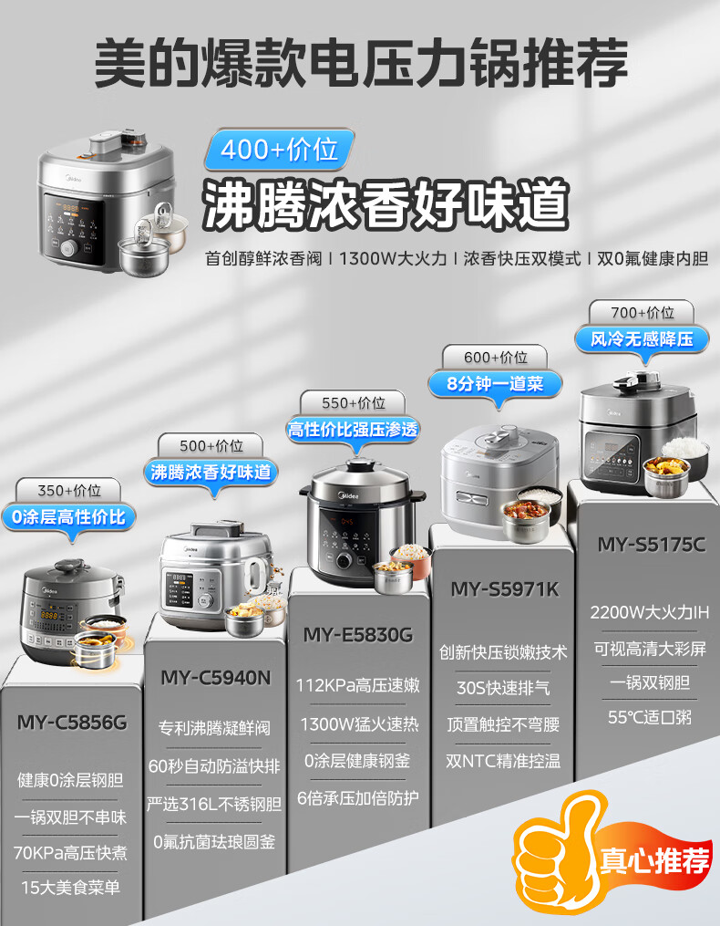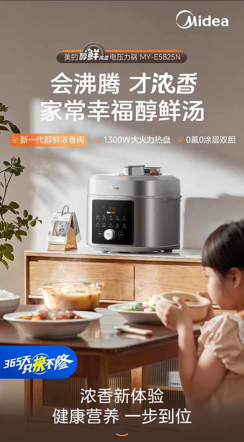 美的(Midea)沸腾浓香双模式小飞侠电压力锅0氟0涂层双胆高压锅5L智能预约家用煲汤4-6人煮饭煲E5825N国家补贴