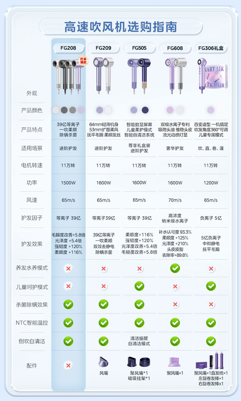 美的(Midea)高速吹风机 39亿等离子护发 家用负离子吹风筒 杀菌除头螨电吹风FG208紫 国家补贴 圣诞节礼物推荐