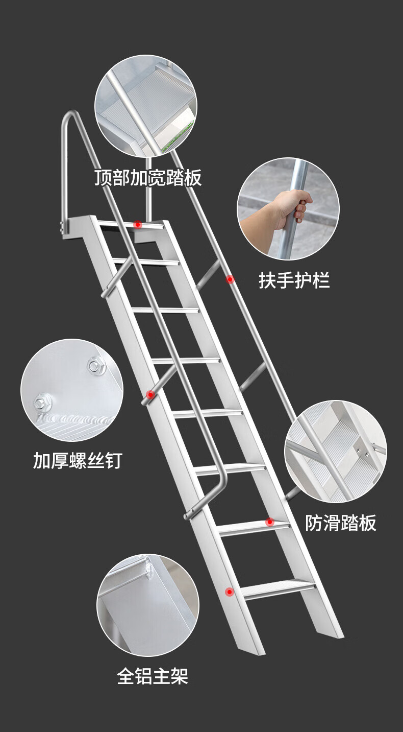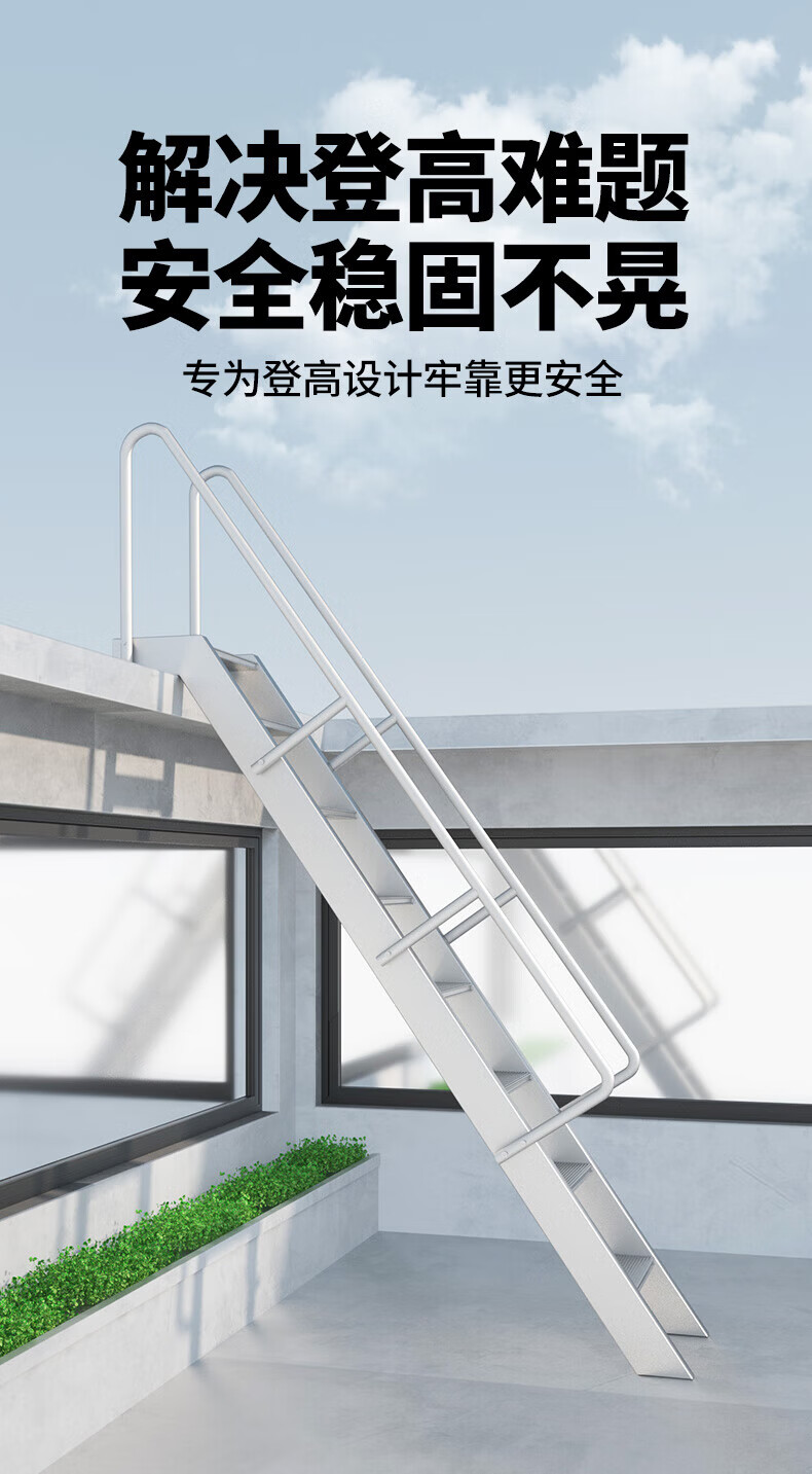 百佳宜(BaiJiaYi)梯子家用梯加厚焊接铝合金阁楼梯工程基坑安全爬梯上屋顶可定制 4步铝合金焊接梯适用0.8-1.05m