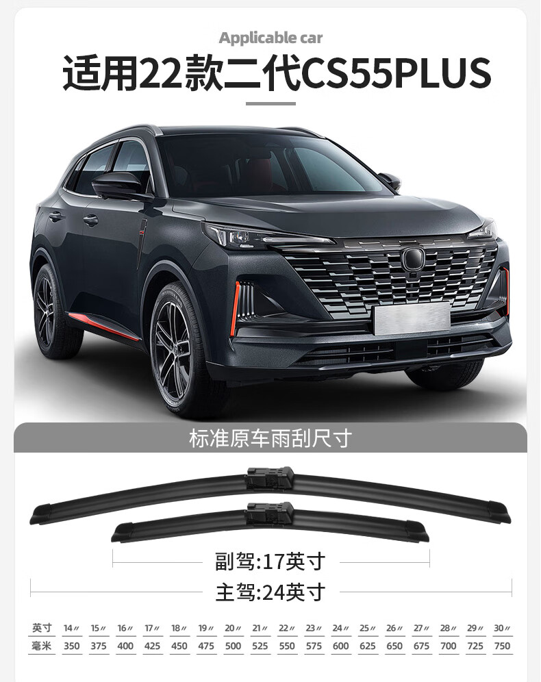 湃速22-25款长安第二代CS55 PLUS雨刮器无骨雨刷片原厂胶条静音 24+17