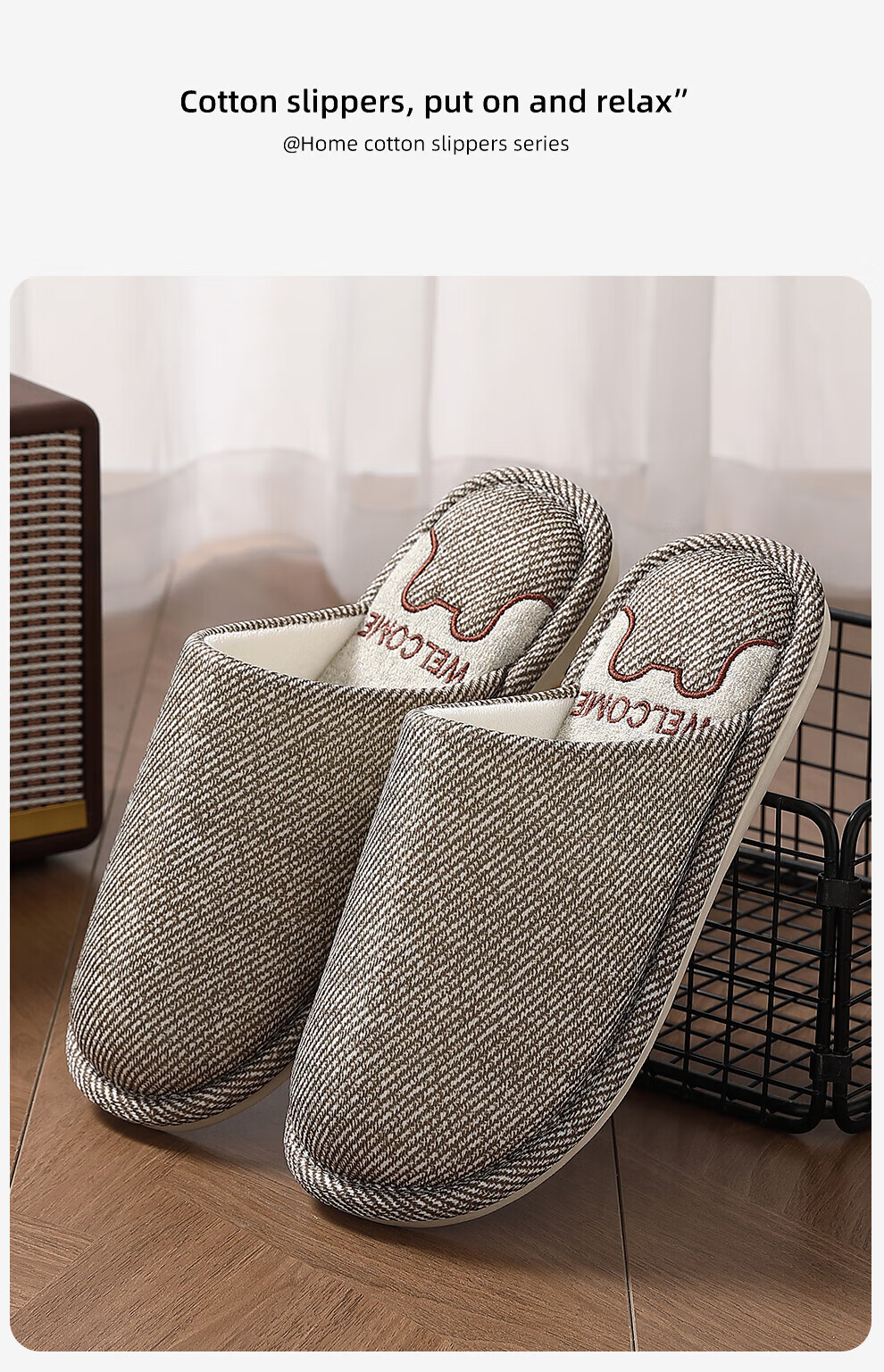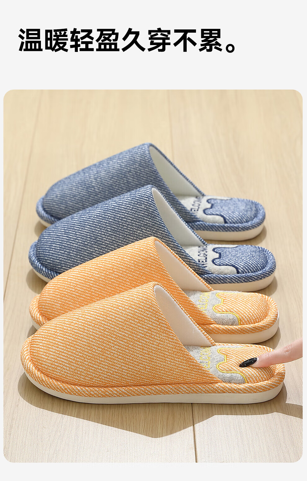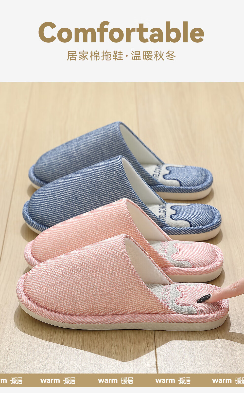 FZT棉拖鞋女士2025新款秋冬保暖厚底居家室内防滑透气棉拖鞋男士 藏青 36-37 适合35-36