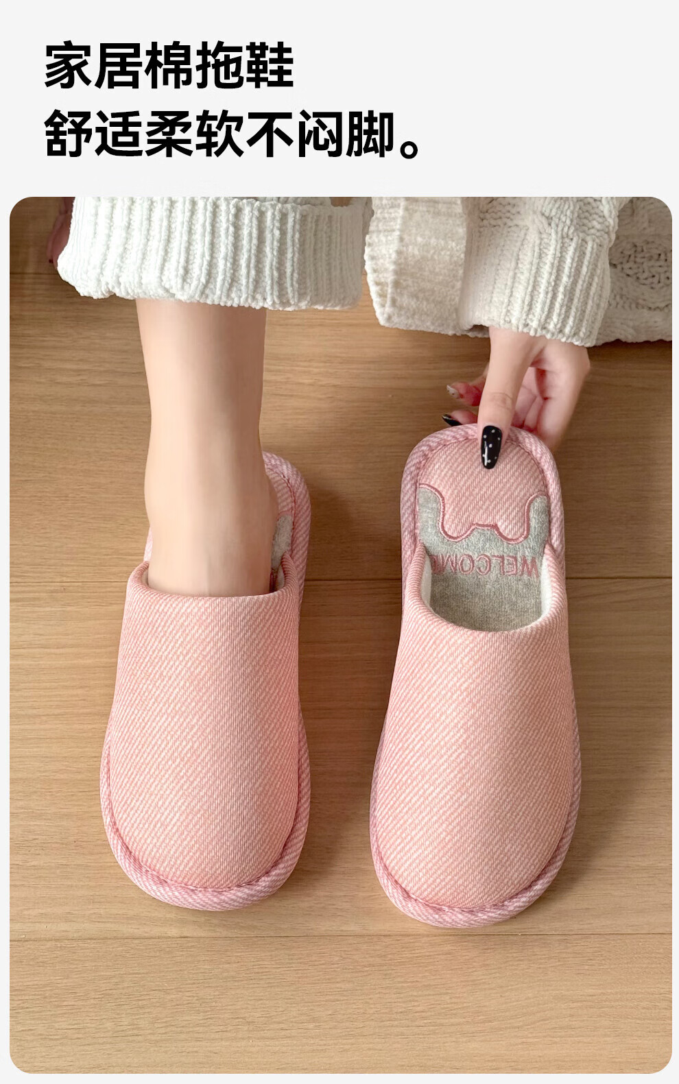 FZT包跟棉拖鞋女2025秋冬新款防滑防臭室内家居简约毛绒绒棉鞋男外穿 粉色 38-39 适合37-38【内长235mm】