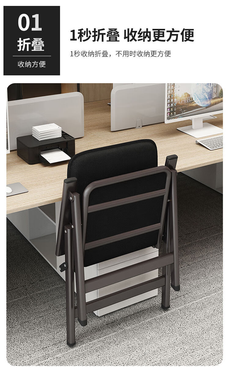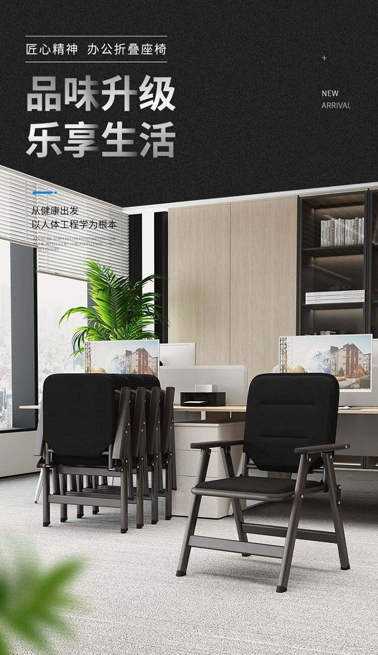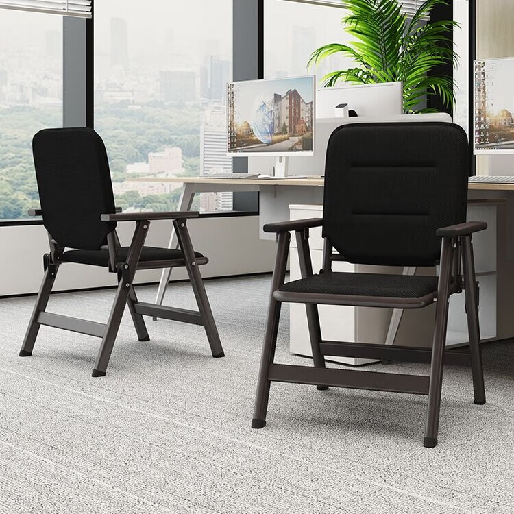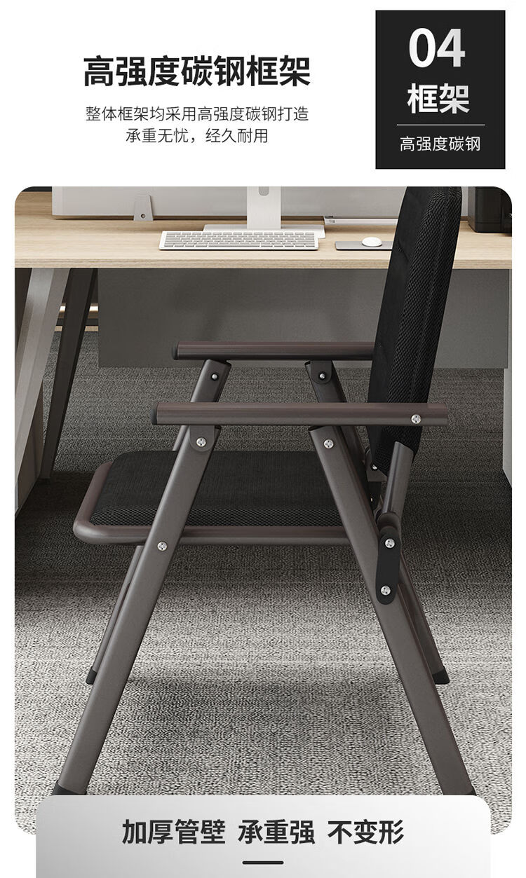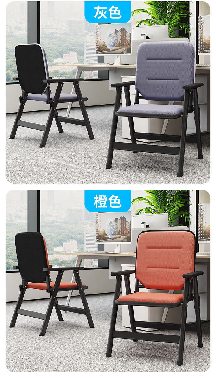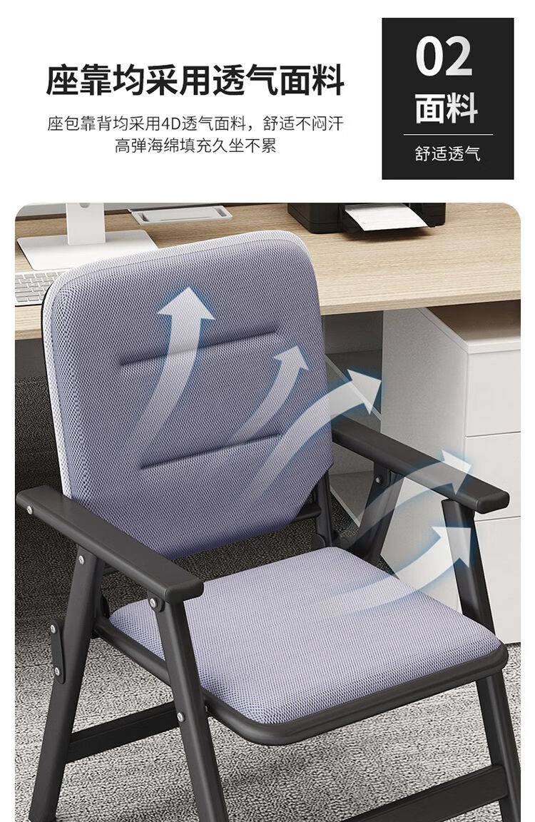欣慕雅折叠椅简易便携靠背凳子电脑办公培训会议椅宿舍学生寝室学习椅子 【加后坐垫 加粗钢管】灰色色