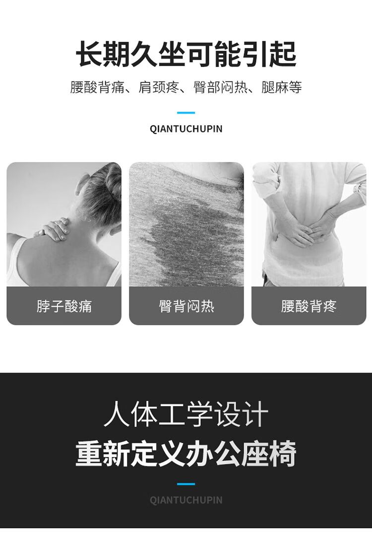 弘星隆办公室座椅午睡休两用可坐可躺椅子人体工学椅靠背椅家用电脑力学 【下单送腰枕】耀晶黑 无搁脚