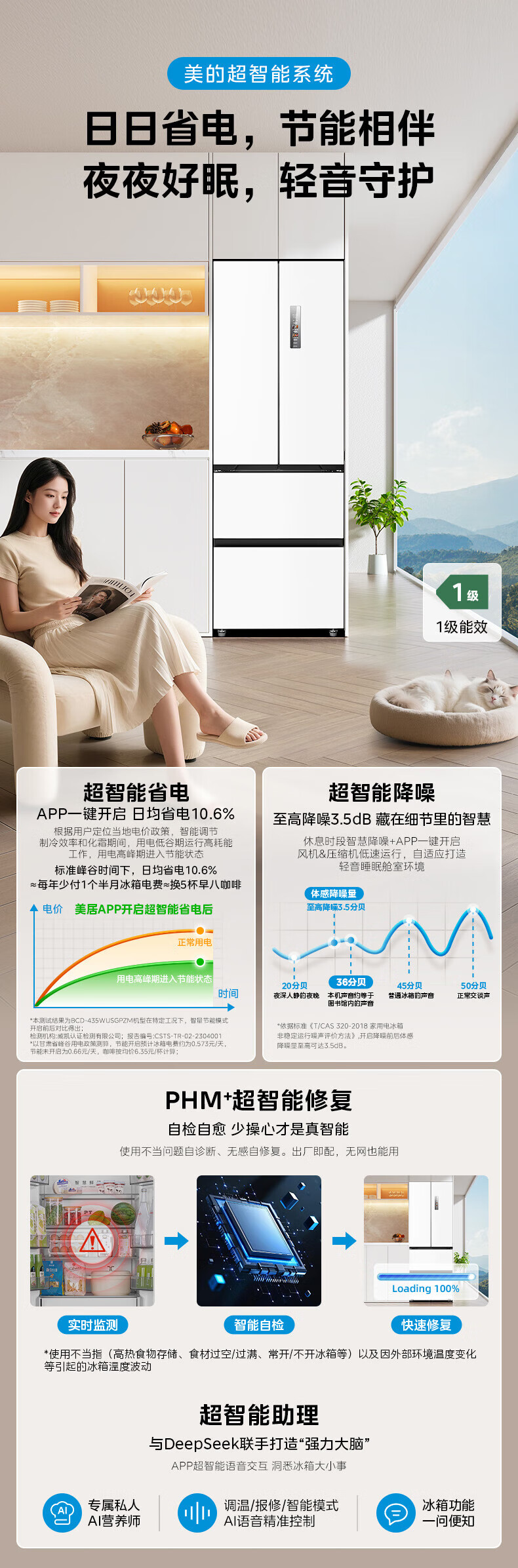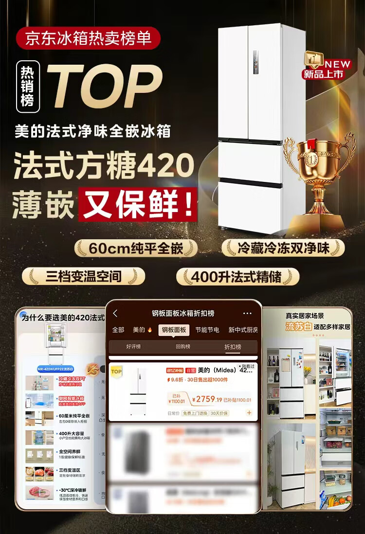 美的(Midea)420法式多门四门超薄纯平全嵌双变频大容量底部散热风冷无霜一级家用冰箱MR-420WUFPZE国家补贴