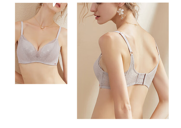 欧迪芬(Ordifen)秋冬年内衣女无钢圈文胸性感透气蕾丝小胸聚拢侧收副乳美背胸罩 风铃灰 70A 32