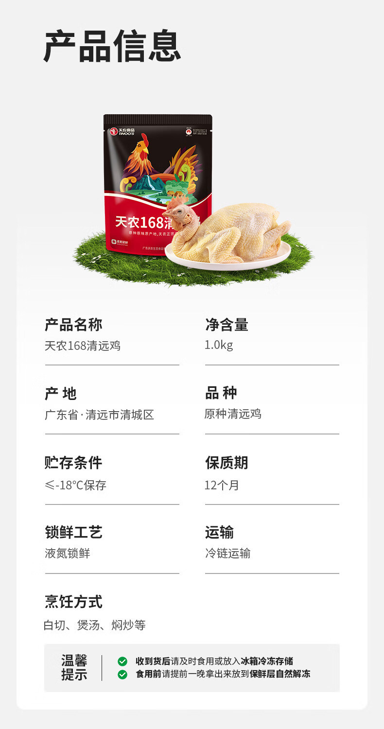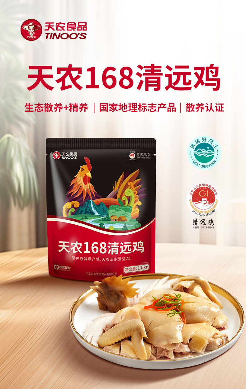 天农 定养168原种清远鸡 2斤 供港整鸡肉生鲜 生态散养土鸡走地鸡 168原种清远鸡2斤*2只